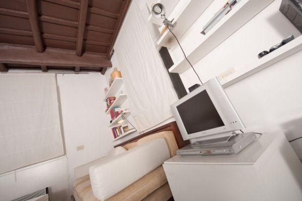 Das Innere der Wohnung, die sich im vierten Stock befindet und bequem mit dem Aufzug zu erreichen ist, ist so gestaltet, dass sie maximalen Komfort und Funktionalität bietet. Das Wohnzimmer, das auch als Schlafzimmer dient, ist mit zwei Doppelschlafsofas, Sesseln, einem Bücherregal und einem Kleiderschrank ausgestattet und verfügt über ein Telefon, eine Klimaanlage und zwei Fenster, die einen bezaubernden Blick auf die Dächer von Rom bieten. Die separate Küche mit Essecke ist mit einem Gasherd, einer Spüle, einem Kühlschrank mit Gefrierfach, einer Mikrowelle, einem Tisch und Stühlen ausgestattet und verfügt über ein Fenster mit atemberaubendem Blick auf die Dächer der Stadt. Das Badezimmer ist mit einer Dusche, einer Waschmaschine, einem elektrischen Warmwasserbereiter und einer Lüftungsanlage ausgestattet.