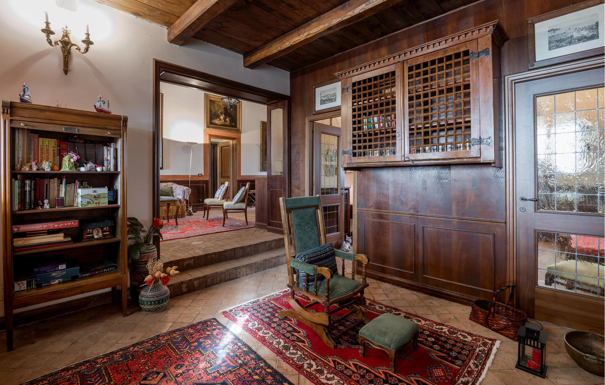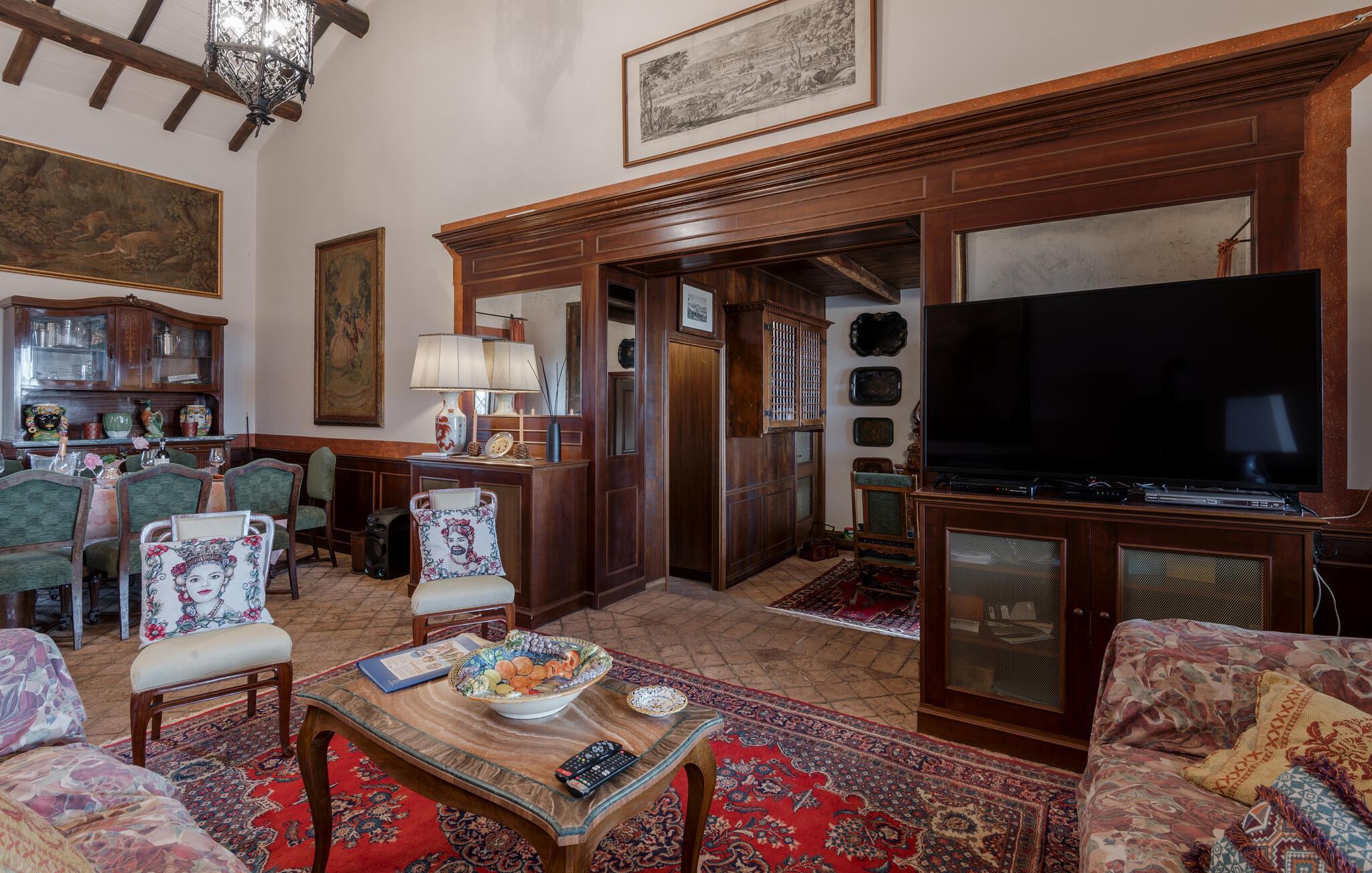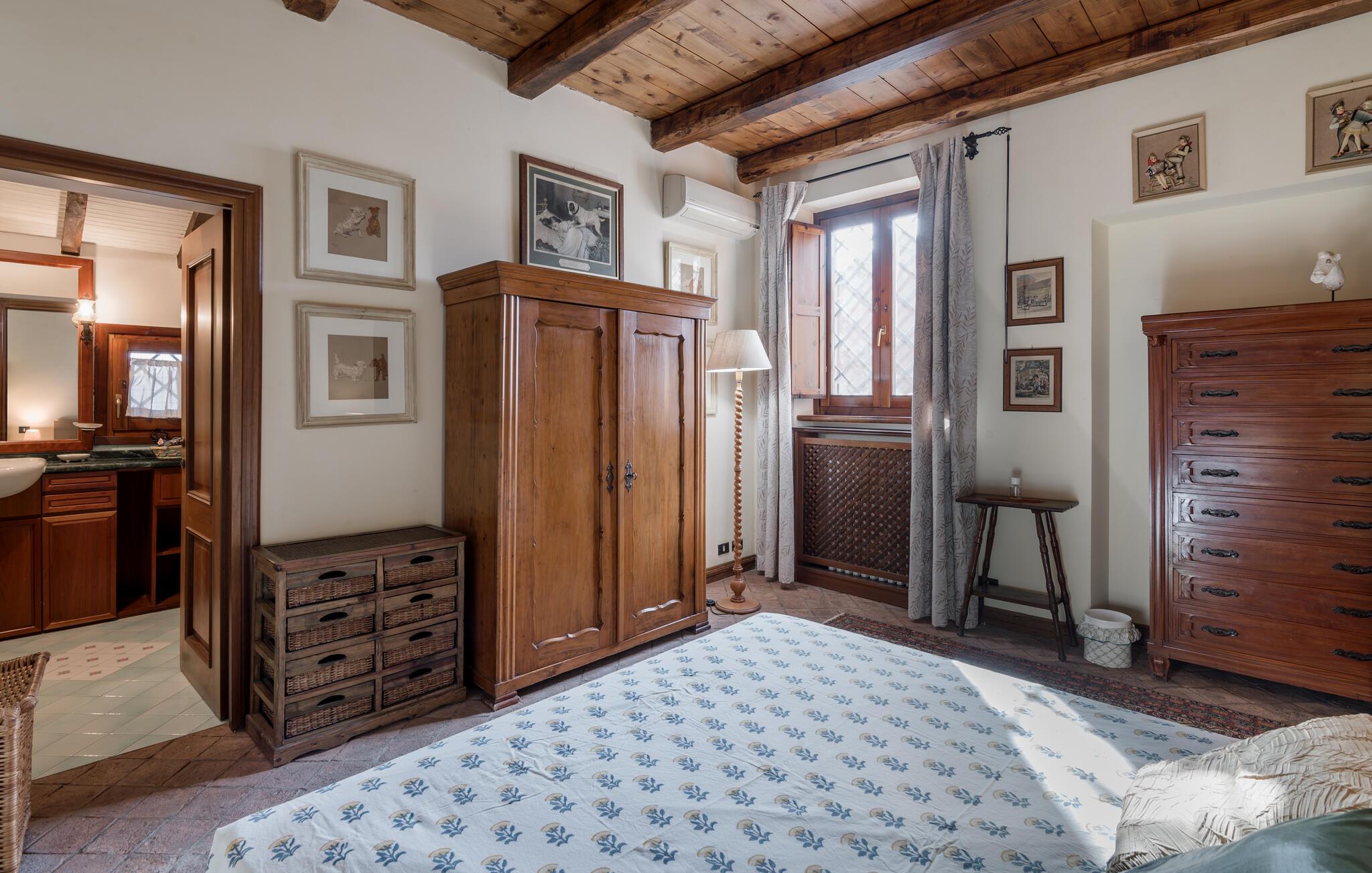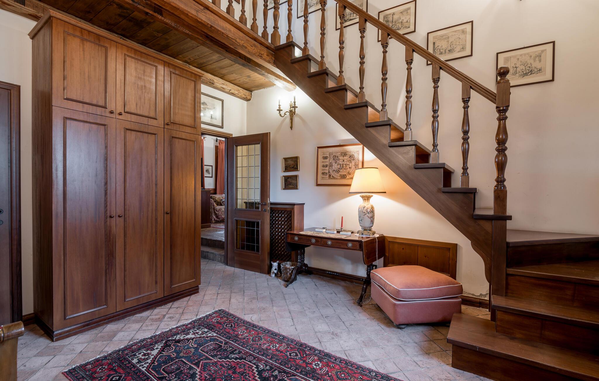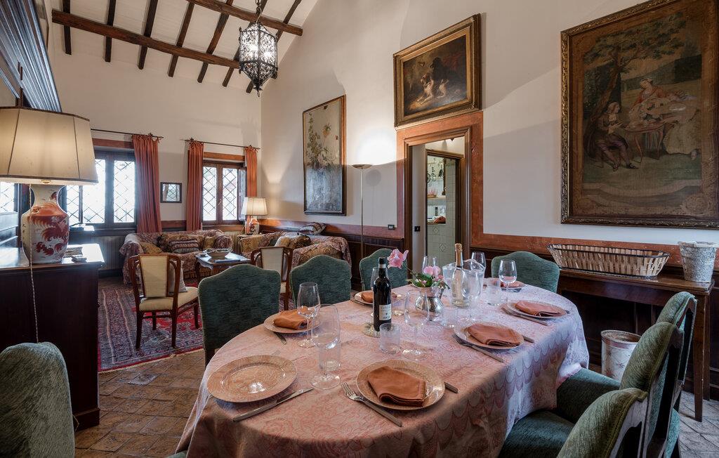 Verbringen Sie den Nachmittag im gemütlichen Wohnzimmer, das mit antiken Möbeln und kunstvollen Dekorationen ausgestattet ist. Die hohen Decken und die historische Einrichtung verleihen dem Raum eine besondere Atmosphäre. Und bereiten Sie ein traditionelles italienisches Mittagessen in der stilvollen Küche des Hauses zu. Nutzen Sie die Möglichkeit, im Freien zu speisen. Das Ferienhaus bietet einen wunderbaren Außenbereich mit einer überdachten Terrasse, ideal für ein gemütliches Abendessen an der frischen Luft.