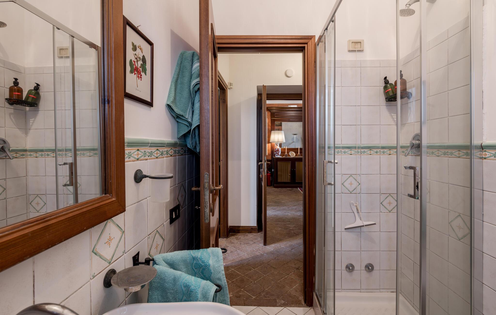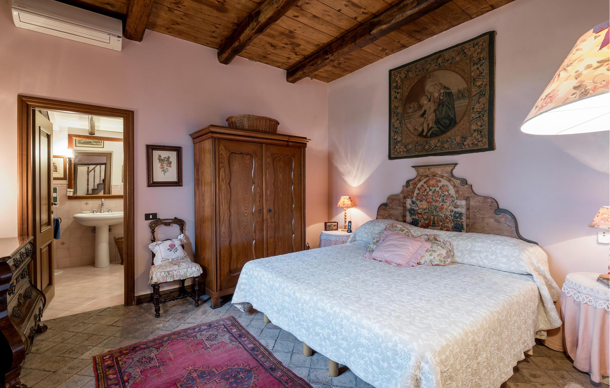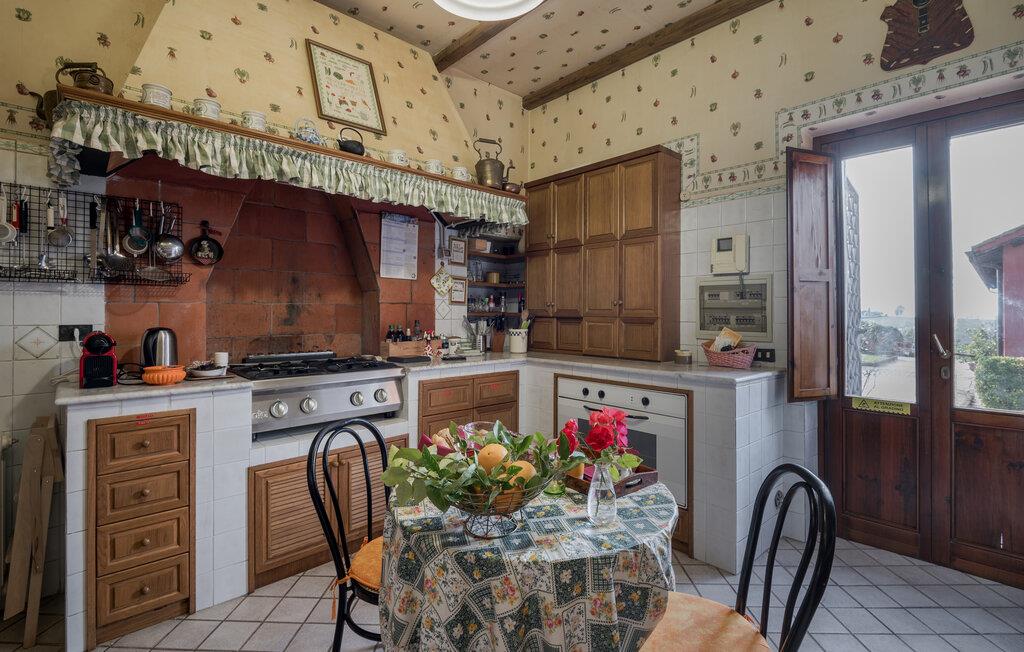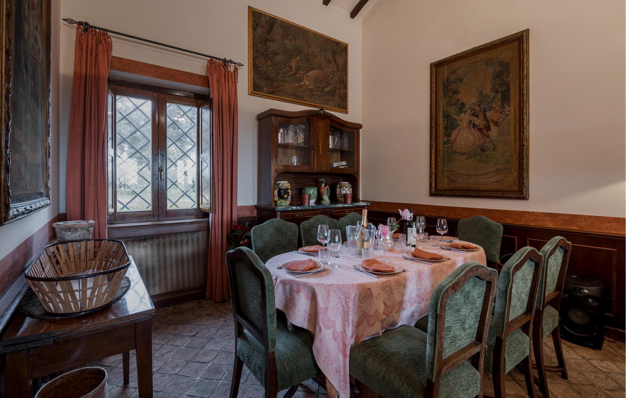 Verbringen Sie den Nachmittag im gemütlichen Wohnzimmer, das mit antiken Möbeln und kunstvollen Dekorationen ausgestattet ist. Die hohen Decken und die historische Einrichtung verleihen dem Raum eine besondere Atmosphäre. Und bereiten Sie ein traditionelles italienisches Mittagessen in der stilvollen Küche des Hauses zu. Nutzen Sie die Möglichkeit, im Freien zu speisen. Das Ferienhaus bietet einen wunderbaren Außenbereich mit einer überdachten Terrasse, ideal für ein gemütliches Abendessen an der frischen Luft.