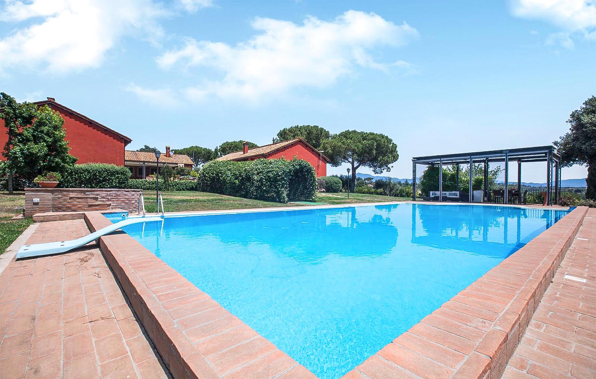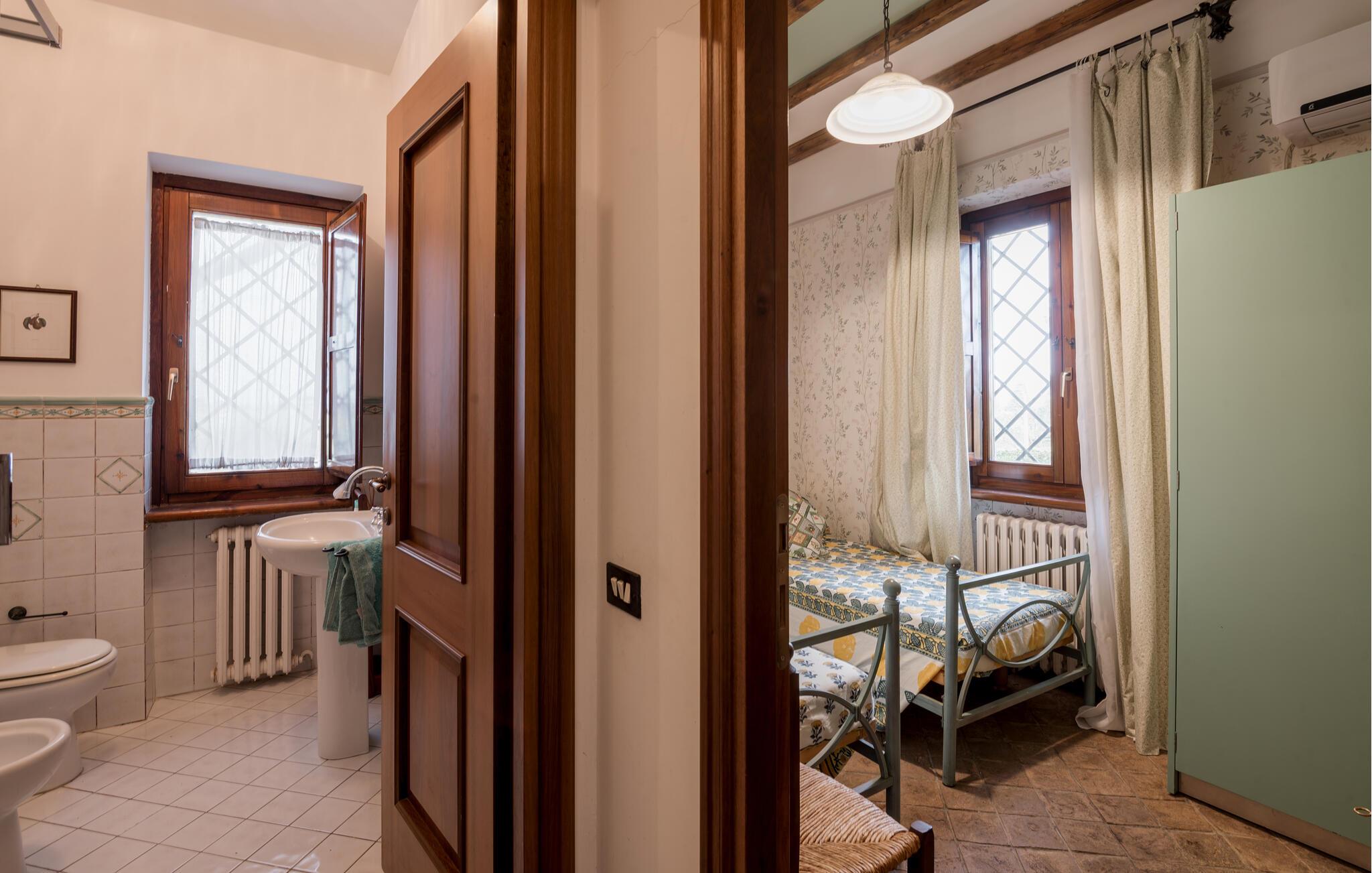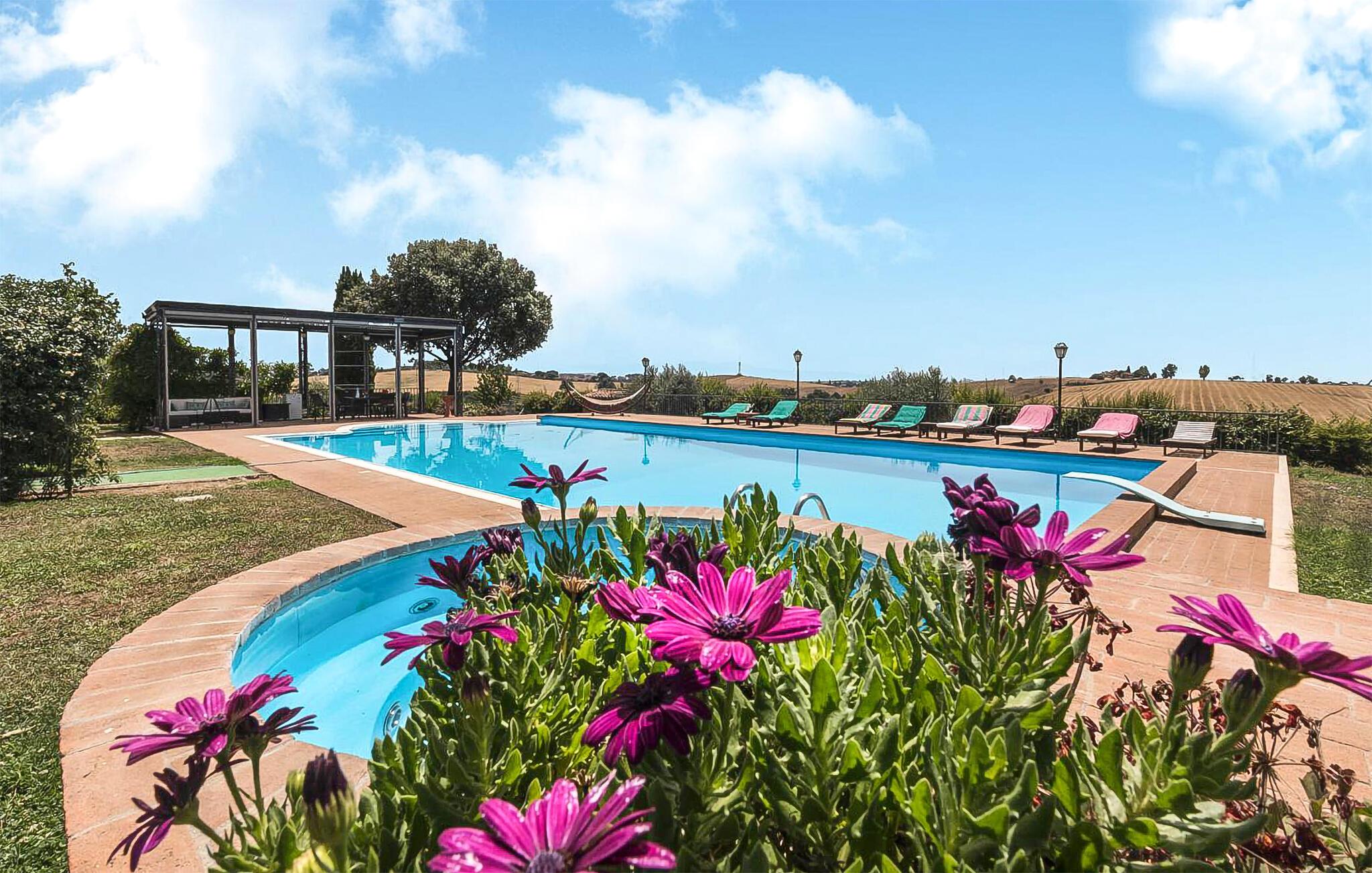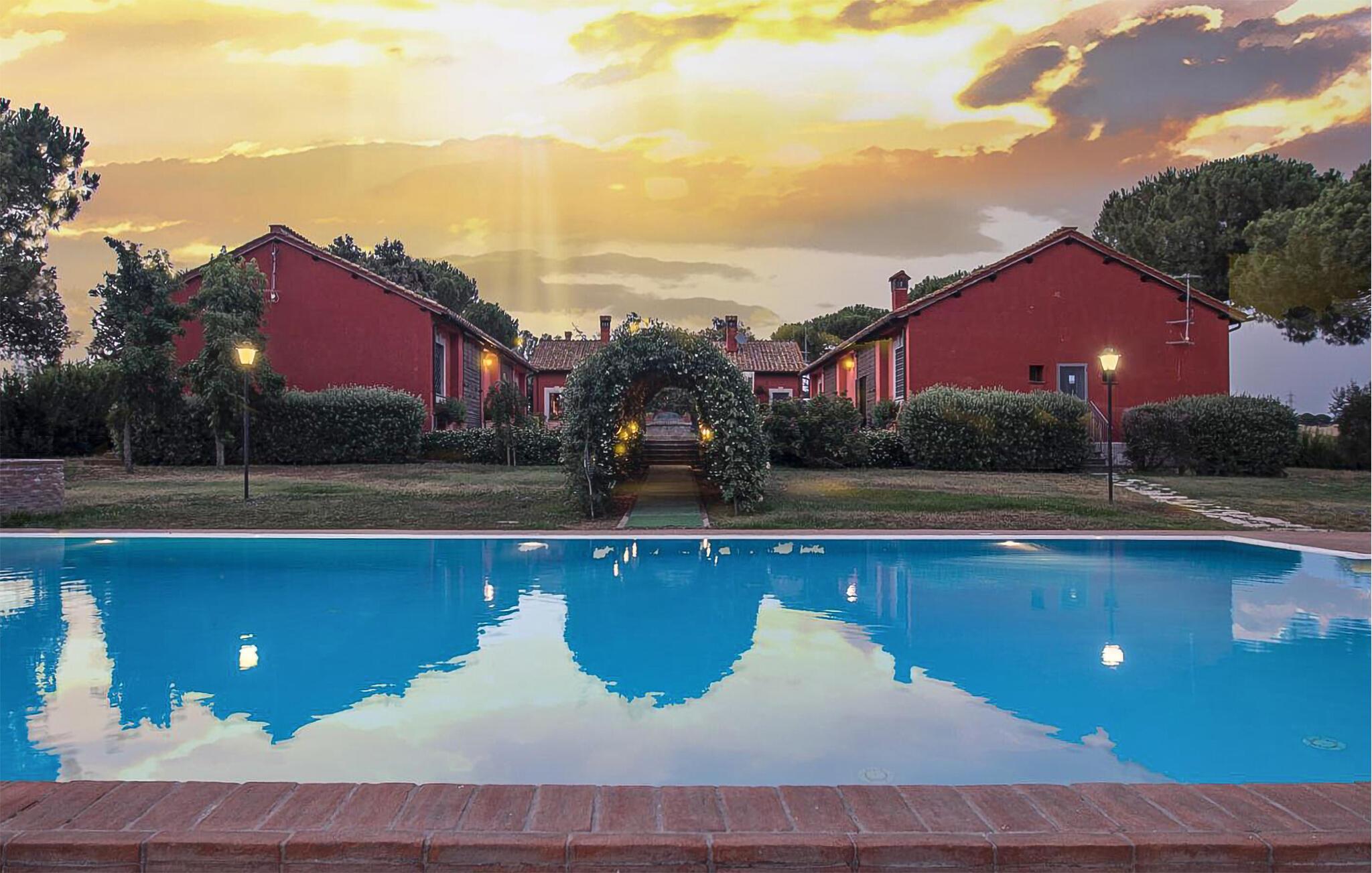 Genießen Sie die malerische Landschaft, die das Naturschutzgebiet Riserva Naturale della Marcigliana, in dem Ihr Ferienhaus liegt, bietet, und entspannen Sie sich in diesem wunderschönen Ferienhaus. Beginnen Sie Ihren Tag mit einem erfrischenden Bad in dem großzügigen Pool, umgeben von Bäumen, Pflanzen und weitläufigen Feldern. Nutzen Sie die bequemen Liegestühle und die Hängematte, um die Sonne zu genießen und die Seele baumeln zu lassen.