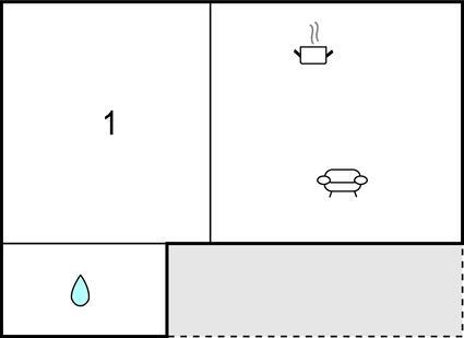 Badezimmer 8m2 (nr. 1) - WC. Warmes und kaltes Wasser. Dusche