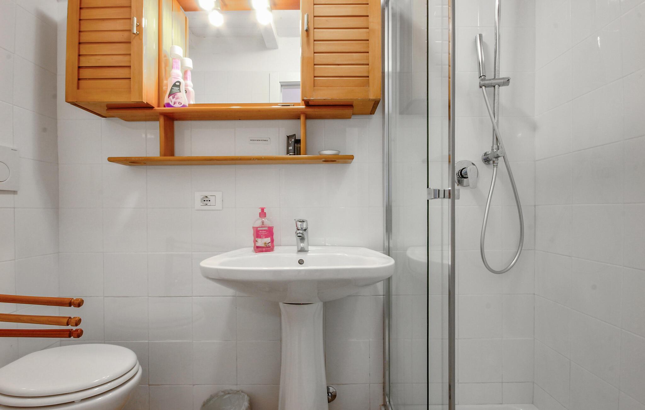 - WC mit warmem und kaltem Wasser, Dusche