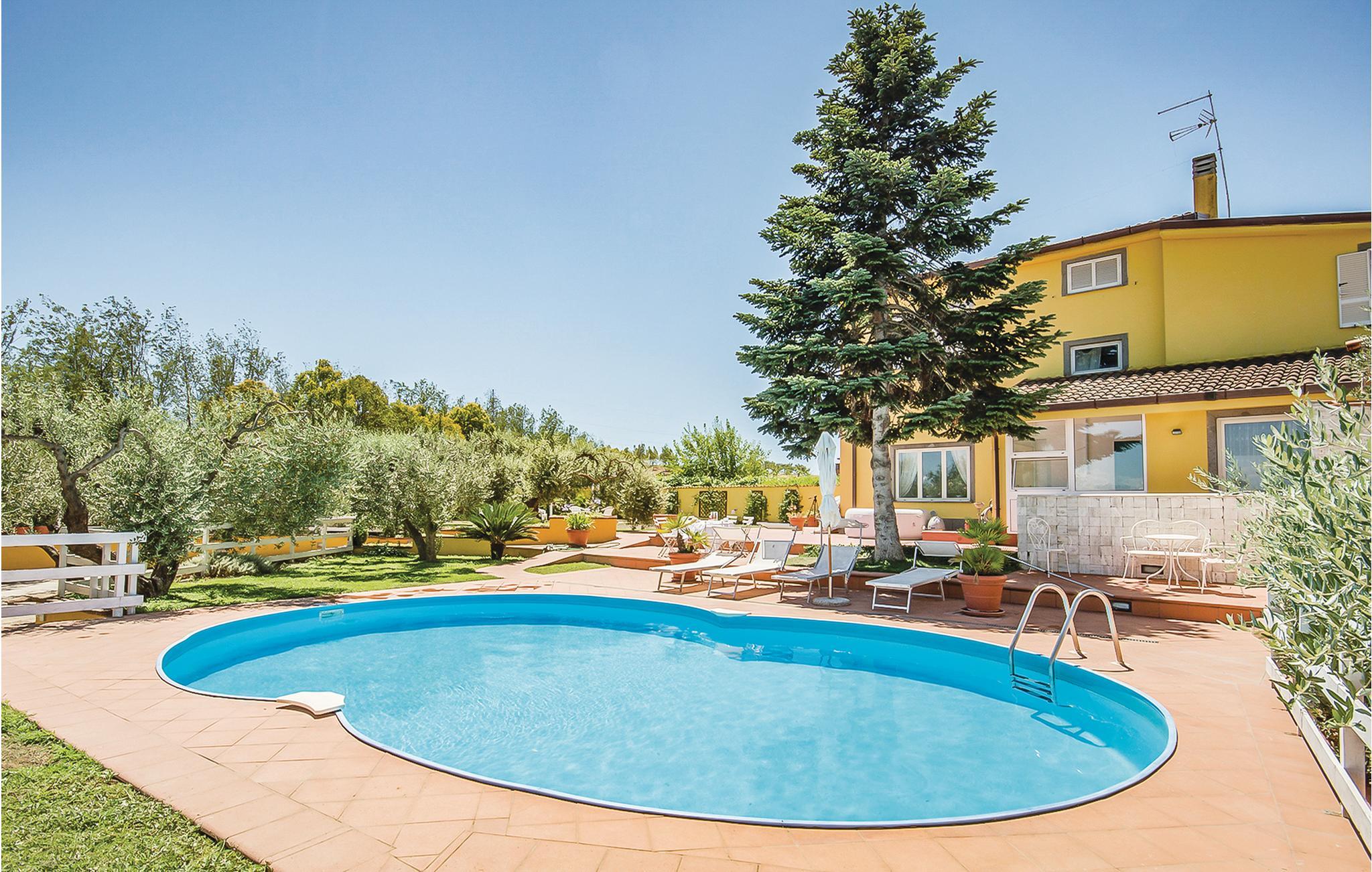 Dieses charmante Einfamilienhaus mit privatem Pool bietet Ihnen einen herrlichen Blick ins Tal und liegt idyllisch im Park von Vejo, nur eine kurze Autofahrt von Rom entfernt. Die geschmackvoll eingerichteten Räume mit komfortablen Schlafzimmern – jedes mit eigenem Bad, zwei davon mit Dusche und eines mit Jacuzzi – sorgen für Wohlgefühl und Privatsphäre. Der großzügige Außenbereich mit Grill lädt Sie zu Mahlzeiten im Freien ein, während der Pool eine erfrischende Abkühlung bietet. Hier erleben Sie Ruhe und Komfort, perfekt für eine Auszeit vom Alltag.