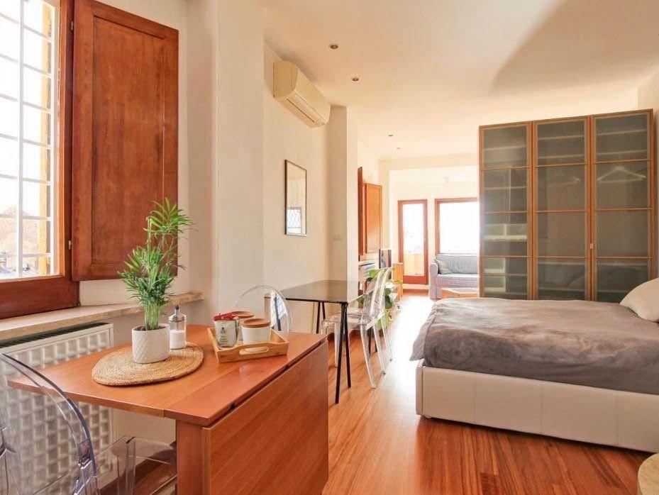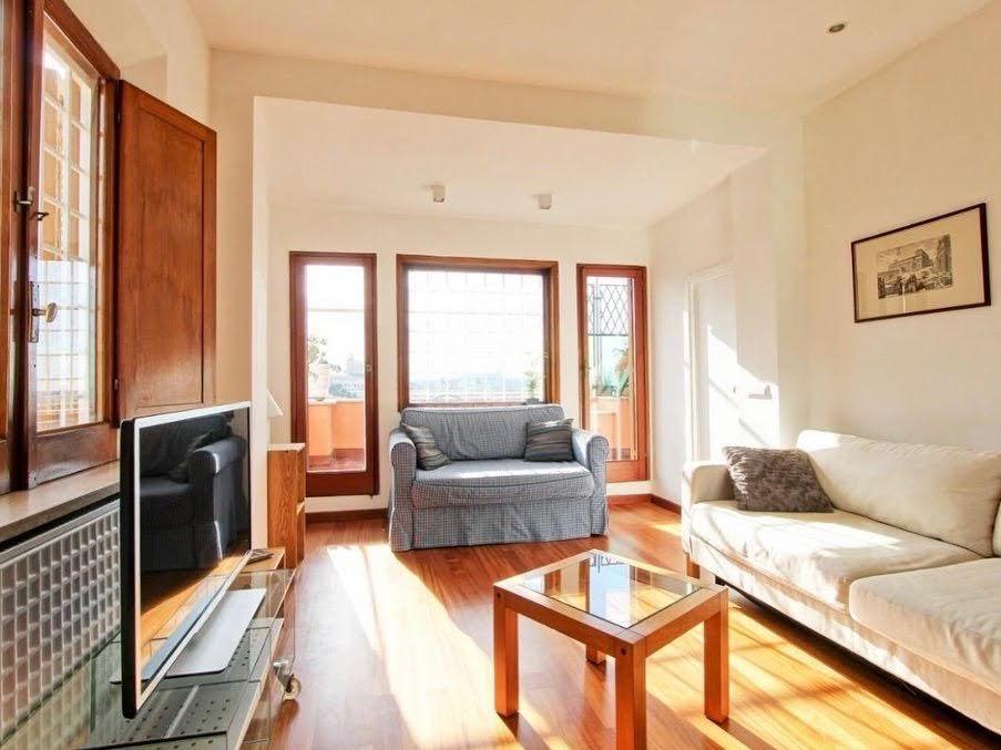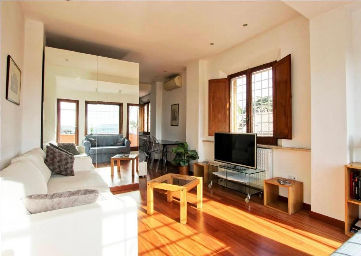 Die Wohnung verfügt über zwei große, übereinander liegende Terrassen, die zum Essen im Freien, zum Sonnenbaden und zum Genießen eines atemberaubenden Ausblicks einladen. Der Panoramablick auf einige der wichtigsten Monumente der Hauptstadt, wie den Quirinale, den Vittoriano, die Kuppel von San Piero und das Pantheon, macht die Wohnung einzigartig.