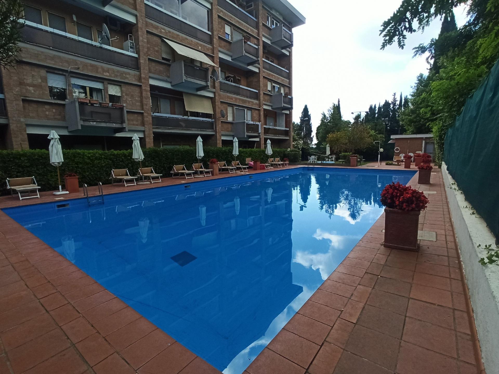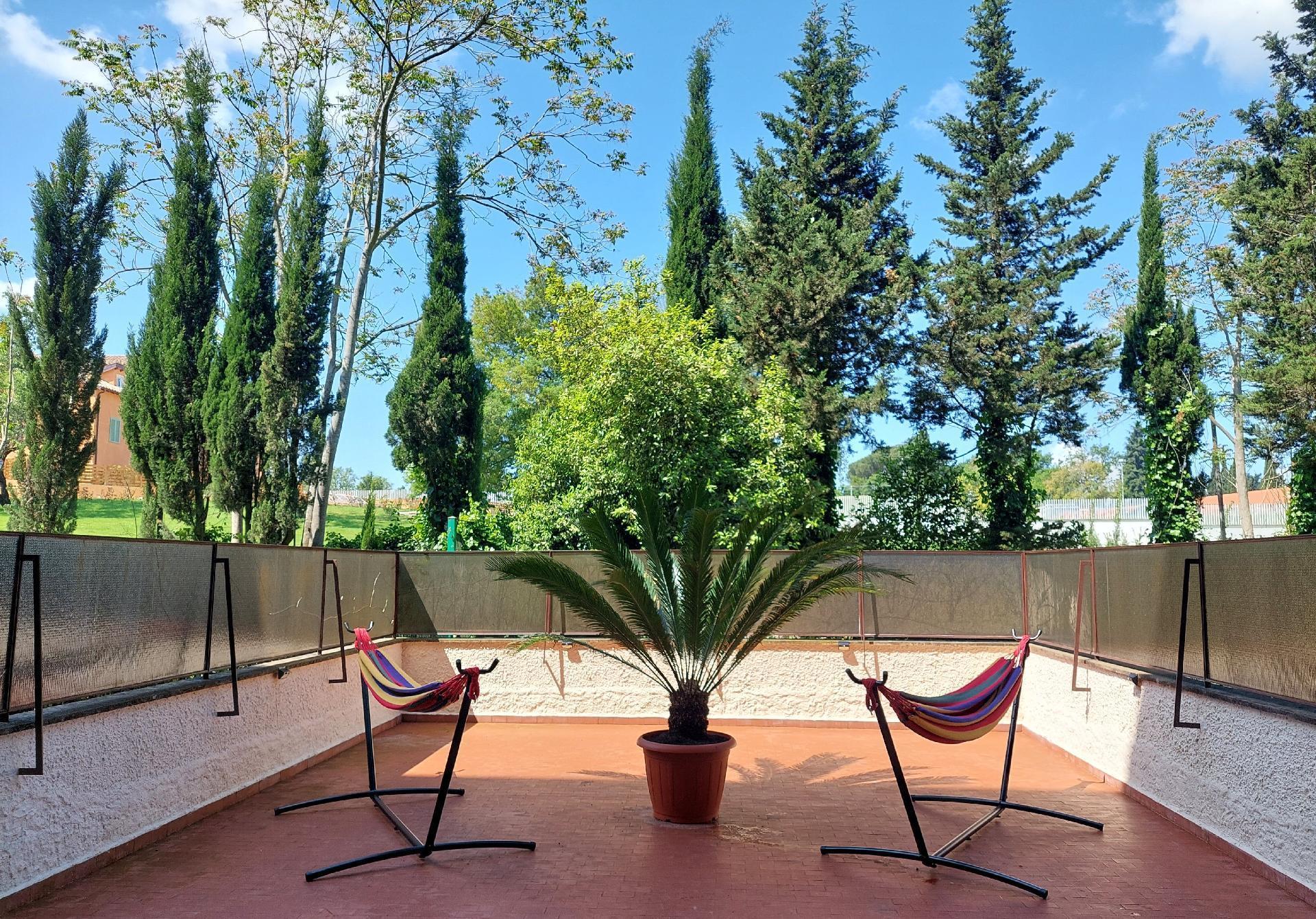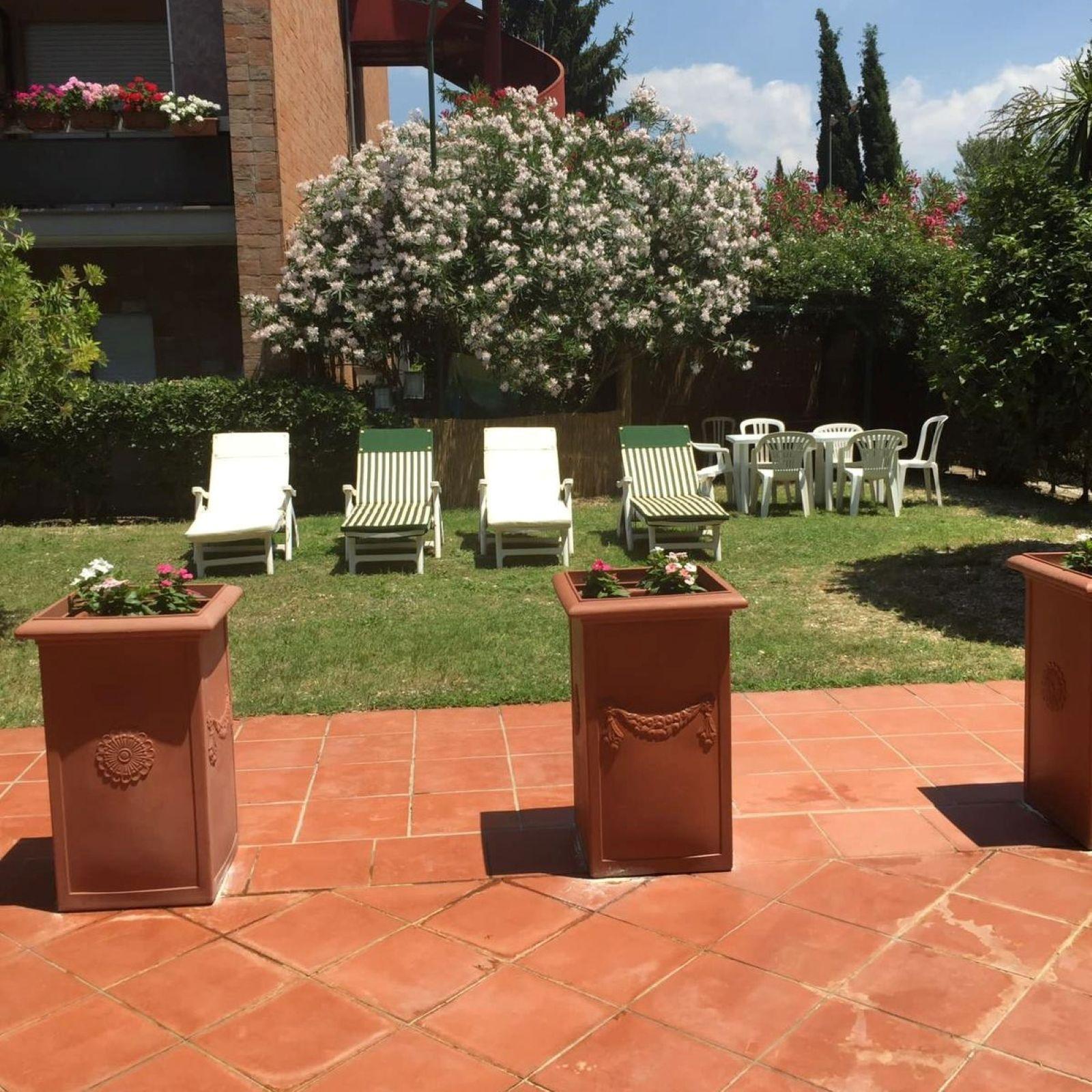 Das Juwel im Außenbereich ist zweifellos die große Terrasse, auf der Sie sich entspannen können, während Sie die Aussicht bewundern oder sich Momenten purer Ruhe unter dem römischen Himmel hingeben. Nicht weniger attraktiv ist der Gemeinschaftspool, der im Sommer von Juni bis September geöffnet ist und eine erfrischende Abwechslung zu den heißen römischen Tagen und eine Gelegenheit zum geselligen Beisammensein in einem schönen Gemeinschaftspark bietet. Kostenlose Parkplätze innerhalb der Residenz sind ein praktisches Plus für Reisende mit dem Auto.