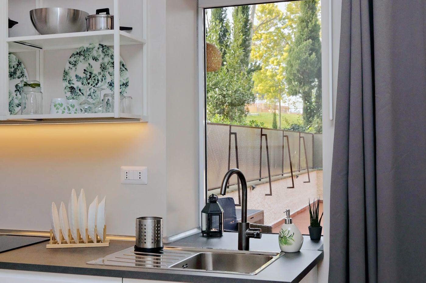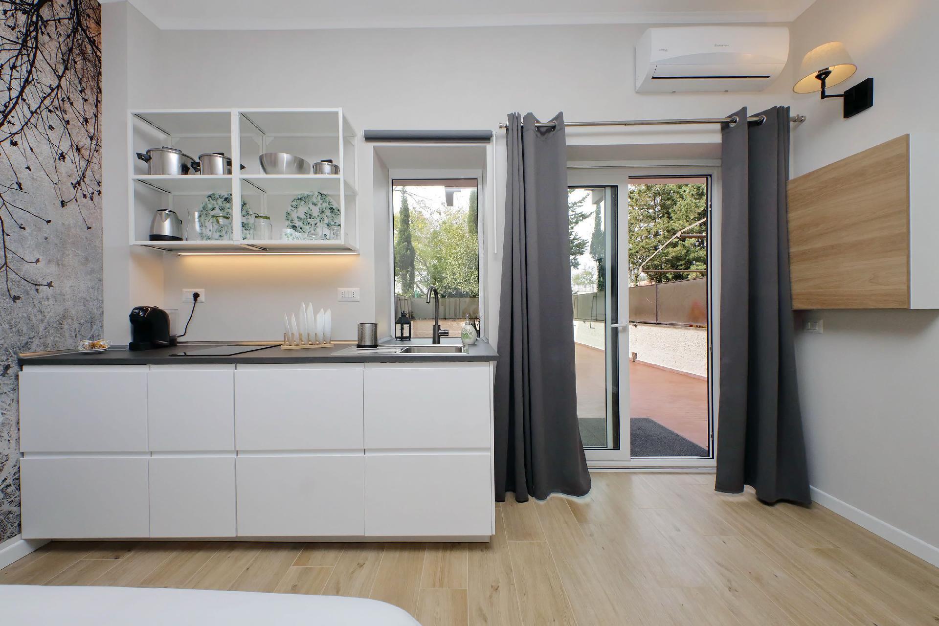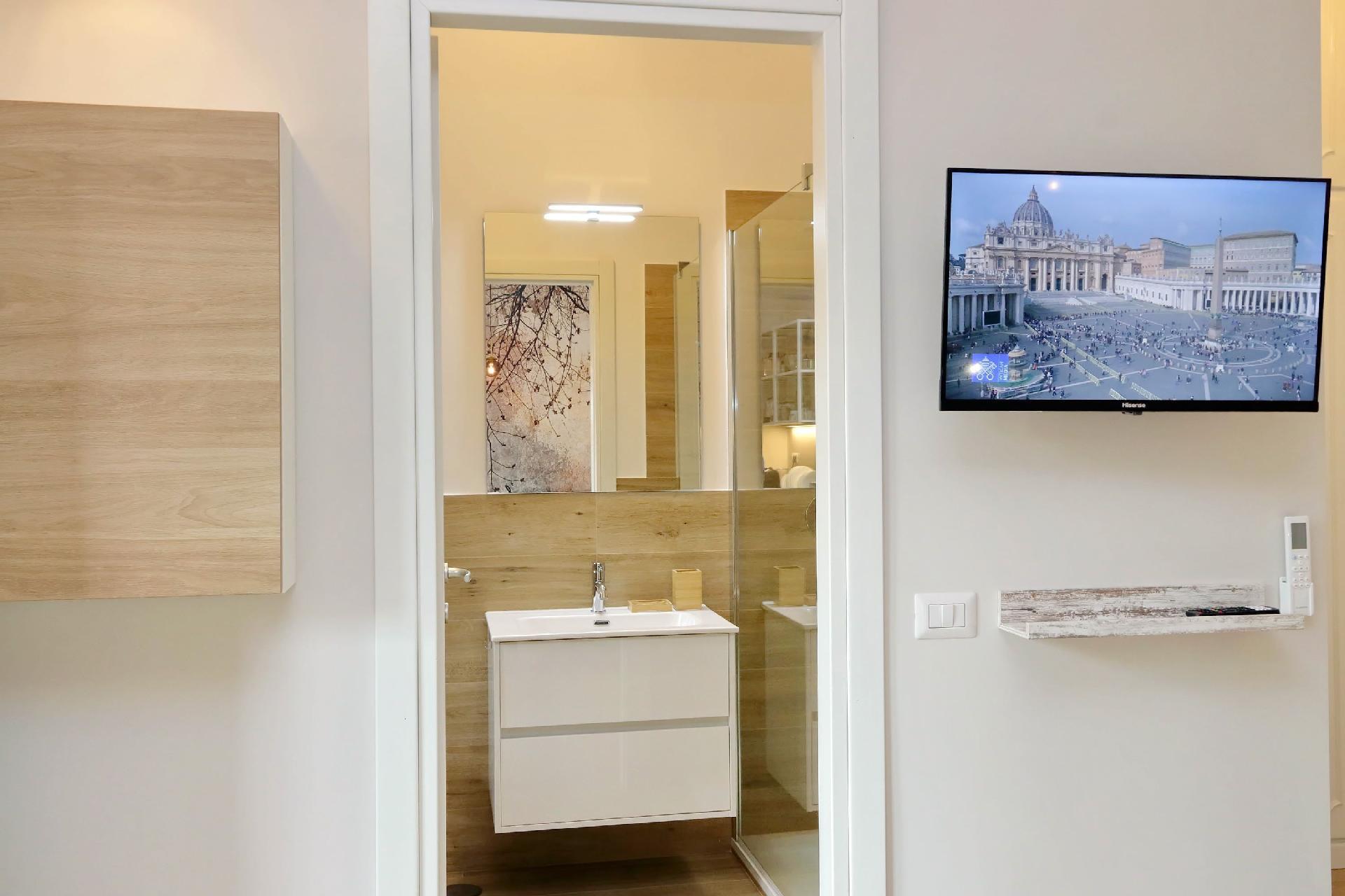 Das Innere der Wohnung ist raffiniert und gemütlich gestaltet, mit einer Vorliebe für edle Details und modernen Komfort. Die Räume sind so gestaltet, dass sie ein Höchstmaß an Ruhe und Entspannung garantieren: Ein geräumiges Schlafzimmer mit Doppelbett bietet den idealen Ort, um sich nach einem Tag auf Entdeckungstour durch Rom zu erholen, ergänzt durch eine voll ausgestattete Küche für die Momente, in denen man lieber in Ruhe speisen möchte, und ein mit allen Annehmlichkeiten ausgestattetes Badezimmer.