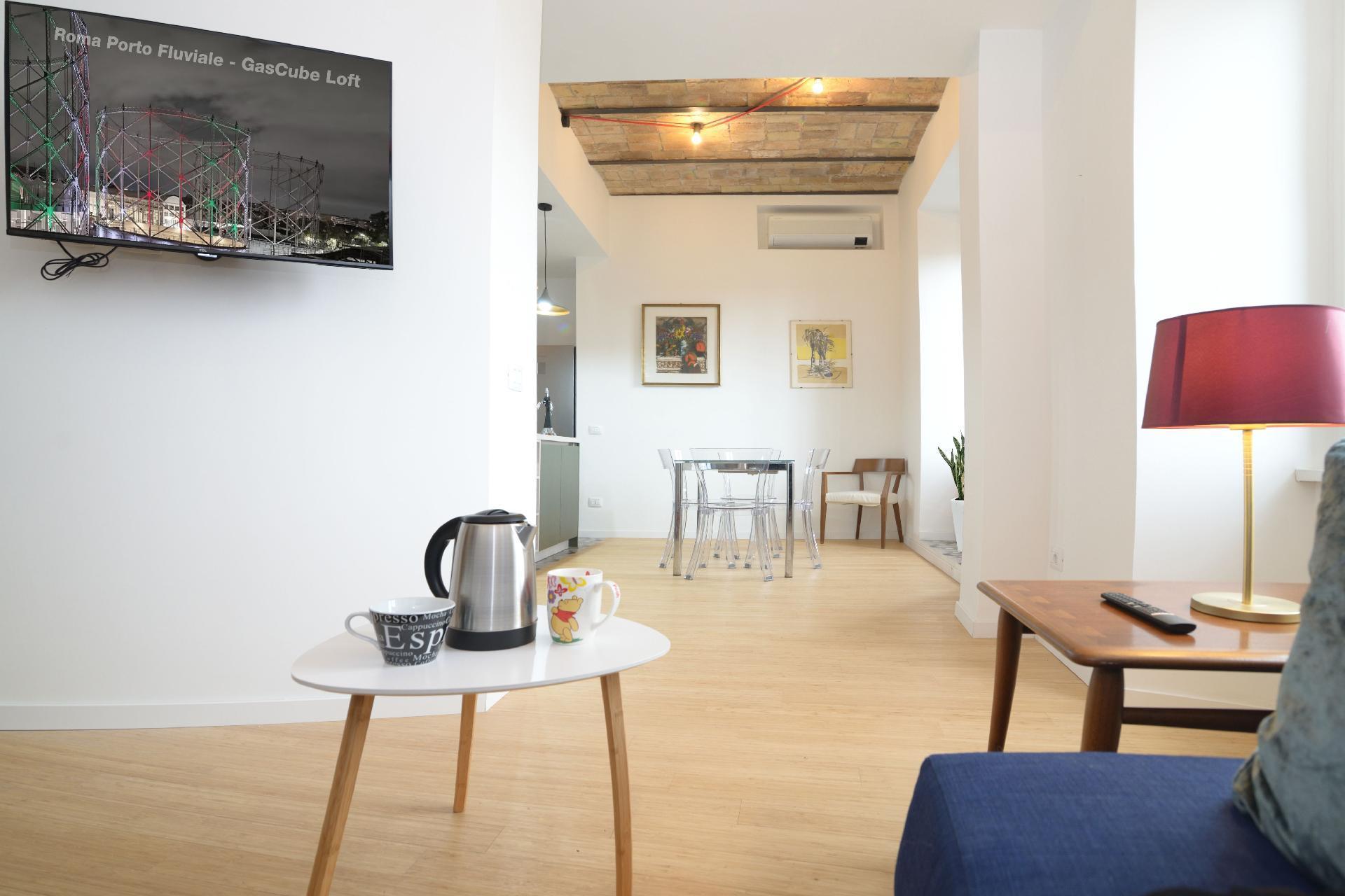 Diese Wohnung befindet sich gegenüber dem berühmtesten Industriegebäude Roms, dem Gazometro, und bietet eine komfortable und gemütliche Unterkunft für 4 Personen, ideal für kleine Familien oder Paare, die einen Ausflug in die majestätische Stadt Rom machen möchten. Mit einem Schlafzimmer und zwei Badezimmern garantiert diese Wohnung Privatsphäre und Komfort für ihre Gäste.