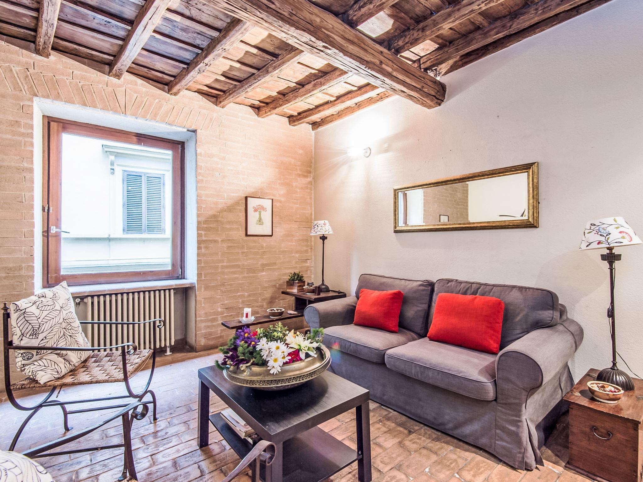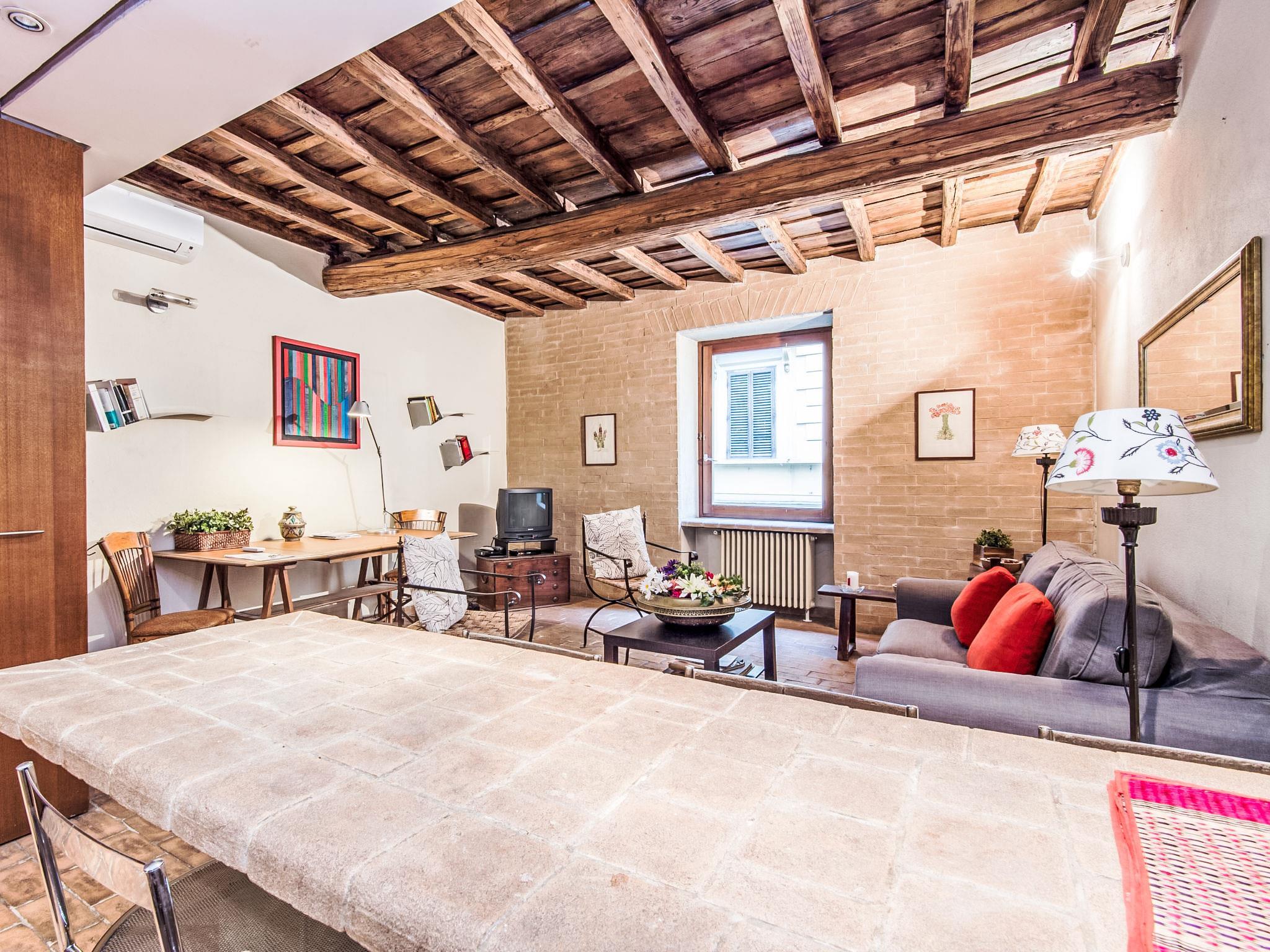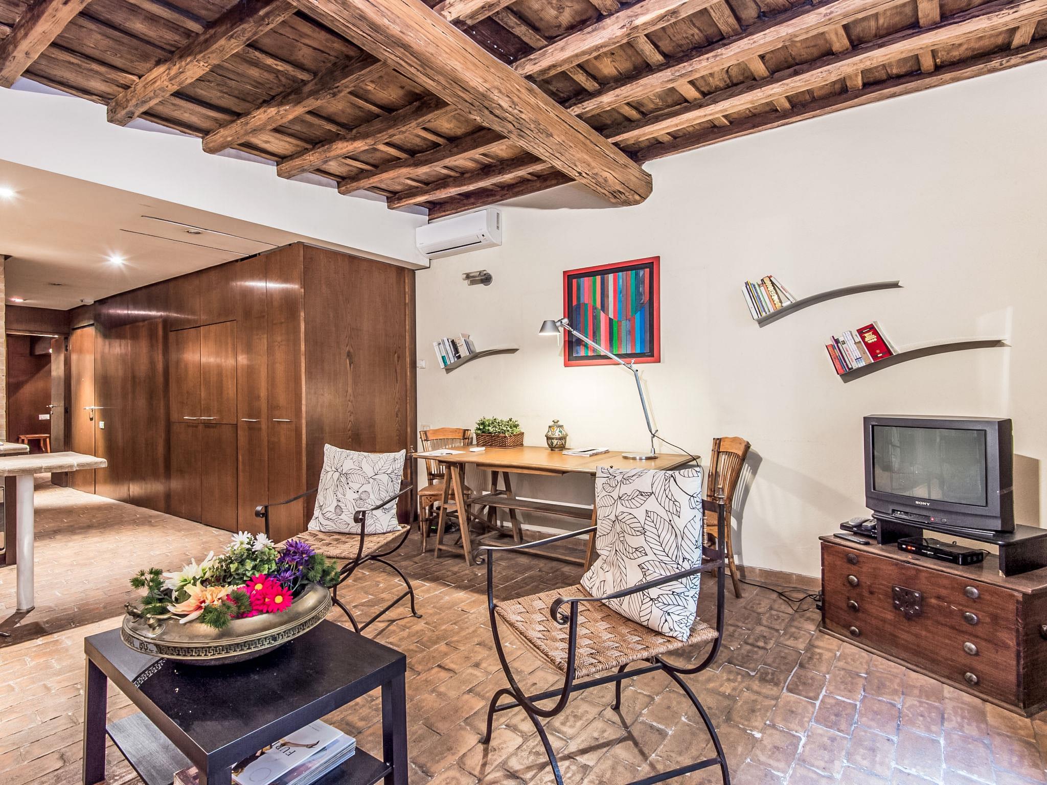Historisches Appartementhaus aus dem 18. Jahrhundert. Im Ortszentrum von Roma, im Bezirk Campo dei Fiori, im Herzen der Stadt. Abholservice vom Flughafen (extra). Einkaufsgeschäft 100 m, Lebensmittelgeschäft 200 m, Supermarkt, Restaurant 50 m, Bar, Straßenbahn "Largo di Torre Argentina" 500 m, Bushaltestelle "Corso Vittorio Emanuele Navona", Bahnstation "Termini" 3 km, U-Bahnstation "Barberini" 2 km. Nahe gelegene Sehenswürdigkeiten: Piazza Navona 150 m, Pantheon 600 m, Colosseo 2 km, Vaticano 1.2 km, Campo de'Fiori 300 m, Fontana di Trevi 1.3 km. Bitte beachten: Auto nicht empfehlenswert, kein Fahrstuhl vorhanden. Die Wohnung befindet sich in einer für den Verkehr begrenzt zugänglichen Zone (ZTL). Check-in nach 22.00 Uhr zusätzlich 30 Euro, nach 24 Uhr zusätzlich 50 Euro, bei der Ankunft zu bezahlen.