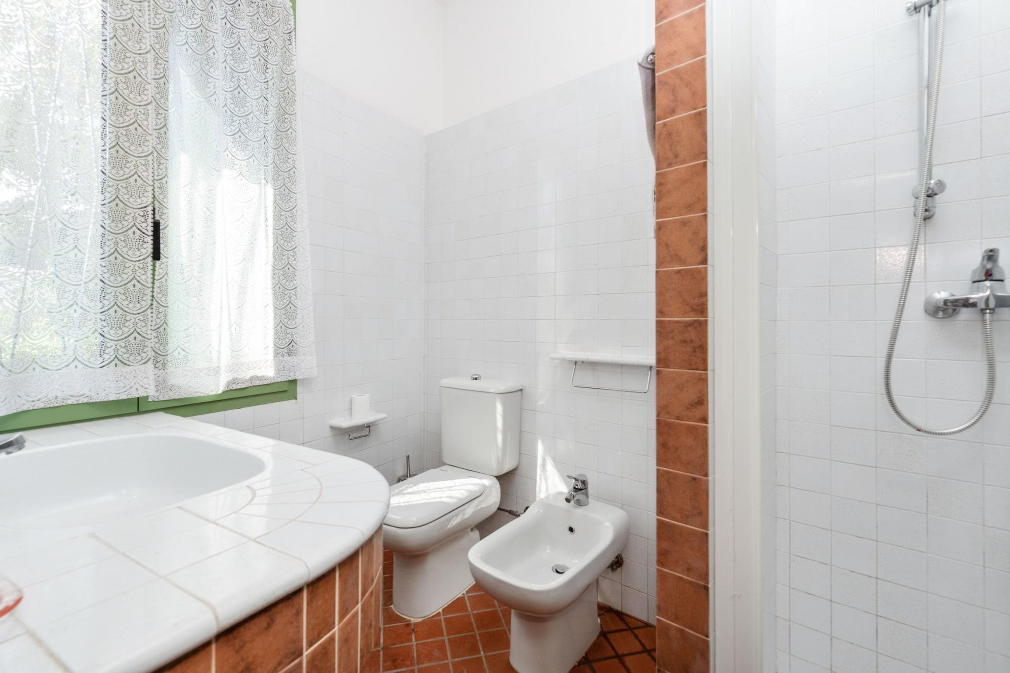 Parterre: (Esszimmer(Esstisch), Wohnküche(TV(Flatscreen), Kaminofen, Kochendwasserhahn, Kochherd(5 Kochplatten, Gas), Kaffeemaschine, Backofen, Mikrowelle, Kühl-/Gefrierkombination, Terrasse(alleinige Nutzung, 30 m2)), Badezimmer(Dusche, Waschbecken, Toilette, Bidet), Abstellraum(8 m2)(Spülmaschine, Waschmaschine), Gartenmöbel) Zwischengeschoss: (Aufenthaltsraum, Aufenthaltsraum, Esszimmer, Saal) In der 1. Etage: (Schlafzimmer(Doppelbett oder 2 Einzelbetten), Schlafzimmer(Etagenbett), Schlafzimmer mit Badezimmer(Doppelbett, Dusche, Waschbecken, Toilette, Bidet), Badezimmer(Badewanne, Waschbecken, Toilette, Bidet), Waschraum(Trockner, Bügelbrett, Bügeleisen), Saal) Klimaanlage, Garten(teilweise umzäunt, 5000 m2), Gartenmöbel, Parkplatz, Parkplatz, Fahrräder verfügbar