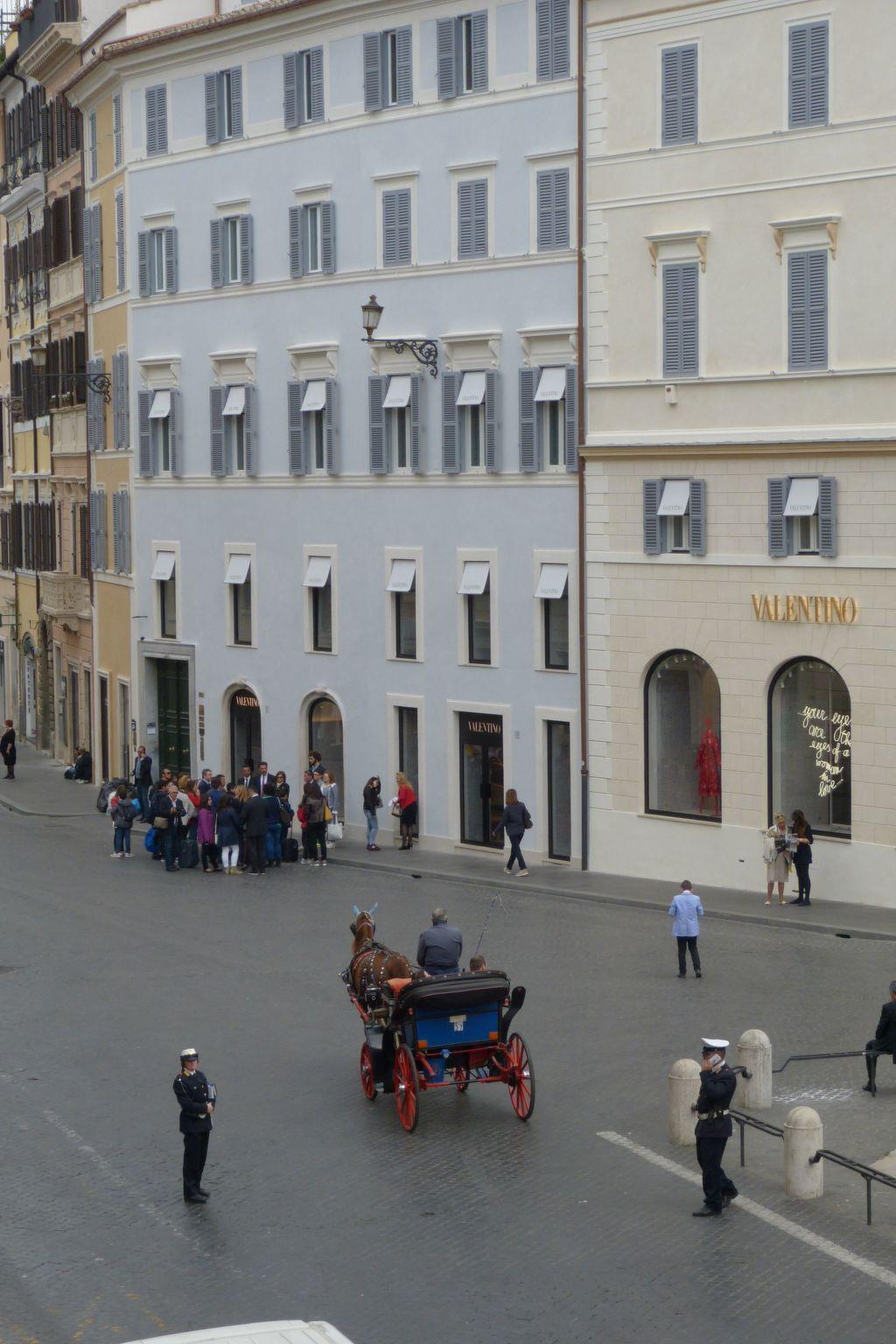 .Die 72-qm-Wohnung befindet sich im 6. Stock direkt unter der 200 qm-Dachterrasse, in einem der bedeutendsten und elegantesten Gebäude der Stadt mit Boutiquen und Büros des berühmten italienischen Modehauses Valentino auf unteren Etagen. Liftmöglichkeit ist ueber einen anderen Treppenaufgang des Gebäudekomplexes möglich, dann eine Etagentreppe hinauf und hinunter zu gehen.Beim Gepäcktransport wird geholfen. Die Räume haben große Fenster mit Doppelglas und über vier Meter hohe Wände, ruhige Lage mit Morgensonne. Die Ausstattung ist modern und zweckmäßig. Alle Räume haben Parkettboden. Ein Schlafzimmer ist mit einem Doppelbett ausgestattet. Im zweiten Schlafzimmer befindet sich eine Luxuskombination der italienischen Bettenfirma Flou mit zwei Einzelbetten mit komfortablen orthopädischen Matratzen und ausziehbarer Funktion. Ein Kinderbett wird auf Wunsch aufgestellt. Auch ein Aufenthaltsraum mit Schlafsofabett ist vorhanden. Die Bäder sind elegant, eines hat eine Whirlpool-Dusche. Der Küchenbereich besitzt einen Kühlschrank, eine Kaffeemaschine, eine Geschirrspülmaschine, Mikrowelle und einen Toaster. Der Essbereich ist separat. Ein Safe ist in einen Wandschrank eingebaut. Gut beheizt im Winter, gut gekühlt im Sommer, mit umweltfreundlichen Klimatruhen. Sat.-TV mit vielen deutschen, italienischen und englischen Sendern, Gratis WLAN, Waschmaschine, brandneue Geschirrspülmaschine mit speziellem Hygieneprogramm. Einige US-Steckdosen sind vorhanden.