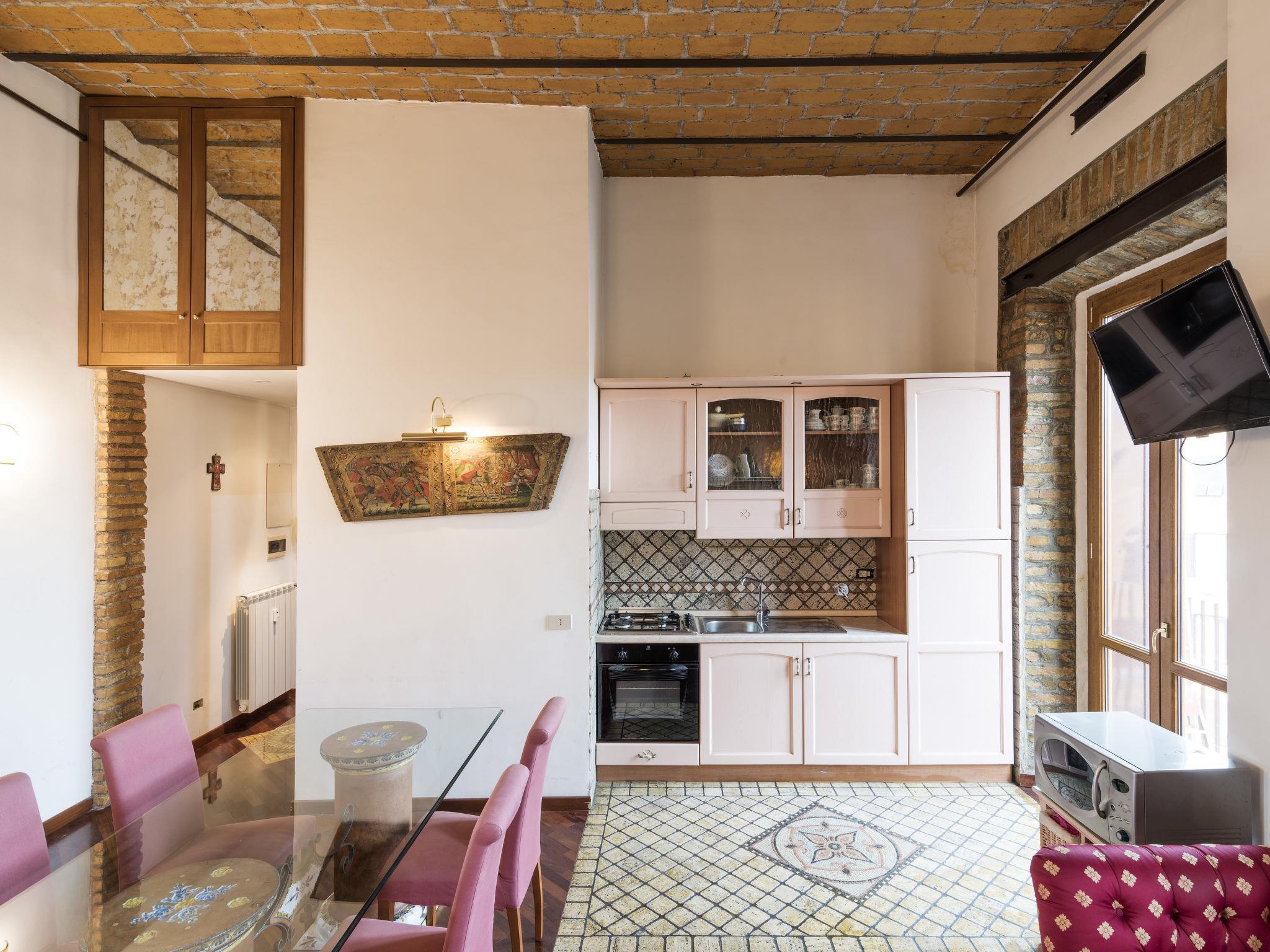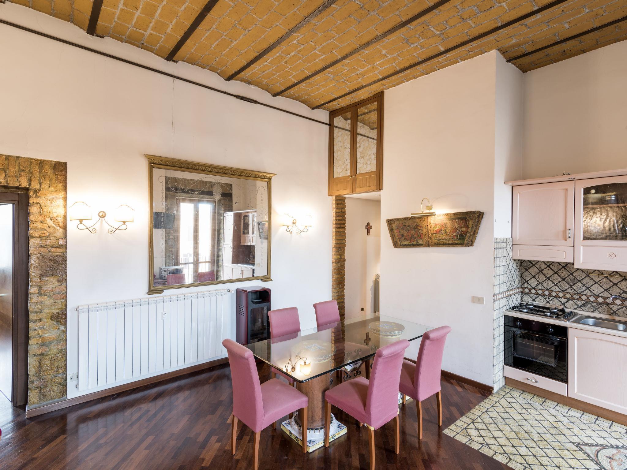 Sehr altes Appartementhaus. Im Ort, 2 km vom Zentrum von Roma, zentrale, sonnige Lage, im Grünen. Im Hause: Empfang. Öffentliche Parkplätze 5 m auf der Strasse. Parkplatz/Garage nur für kleine - mittlere Fahrzeuge geeignet. Lebensmittelgeschäft, Supermarkt, Restaurant, Bar 300 m, Straßenbahn "Santa Croce in Gerusalemme" 300 m, Bushaltestelle "Santa Croce in Gerusalemme" 300 m, Bahnstation "Termini" 1.7 km, Sandstrand "Ostia" 30 km. Nahe gelegene Sehenswürdigkeiten: San Giovanni 1.3 km, Colosseo 4 km. Bekannte Seen in der Umgebung sind gut erreichbar: albano 20 m. Bitte beachten: Be- und Entladen am Ferienhaus möglich. Hauptstrasse. Flugplatz 14 km vom Haus.