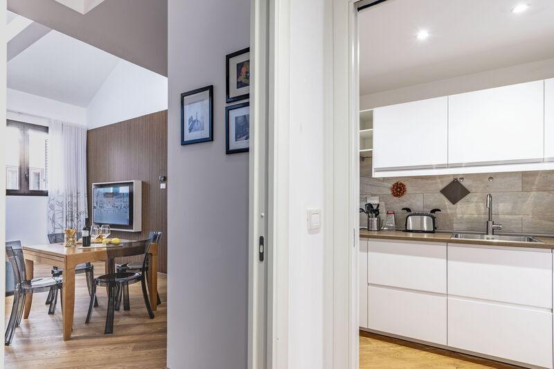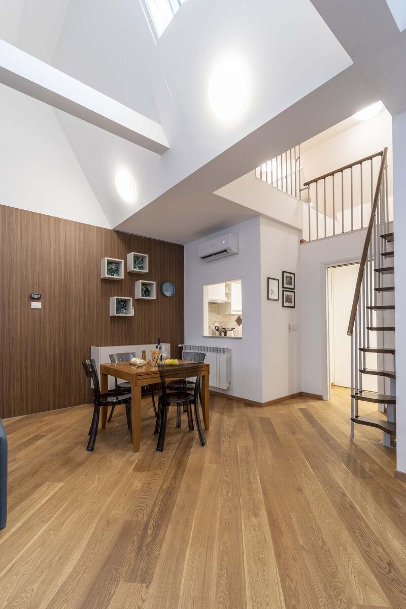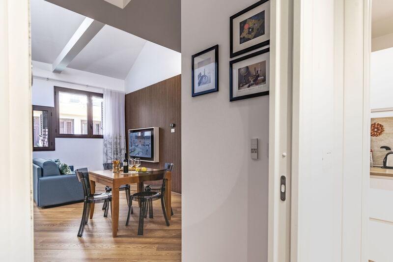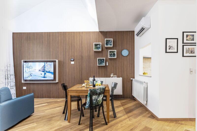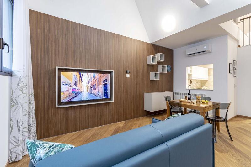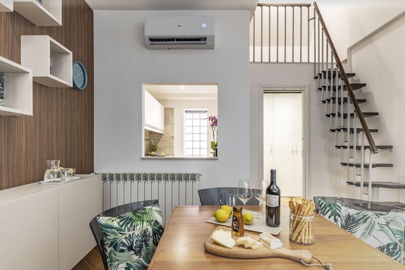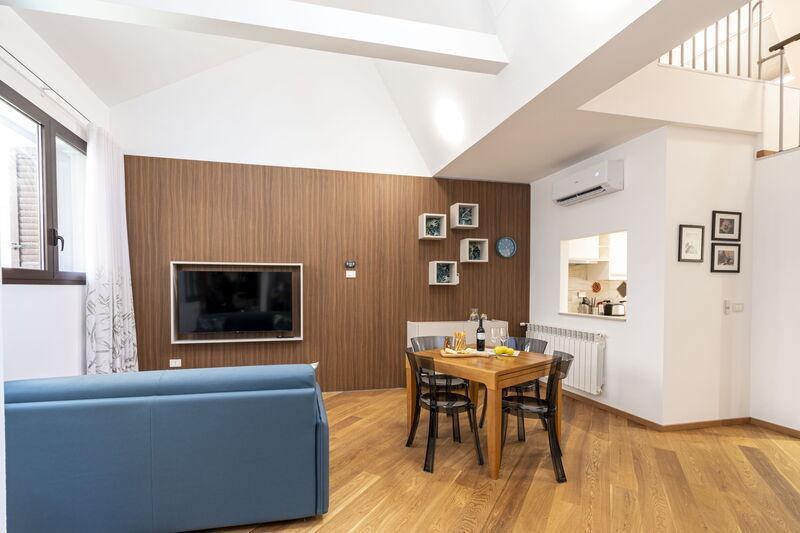 Entdecken Sie die Suite Trastevere, eine elegante Oase des Komforts im lebendigen Herzen Roms. Dieses einzigartige Apartment bietet Platz für bis zu 4 Gäste, mit einem stilvollen, in die Wohnwand integrierten Doppelbett und einem bequemen Schlafsofa. Die Innenräume sind modern und einladend gestaltet, mit Holzdetails und zeitgenössischen Akzenten, die eine warme und entspannte Atmosphäre schaffen. Das wahre Highlight ist der private Patio, ein intimer Außenbereich mit einem charmanten Sitzplatz, ideal, um ein Glas Wein oder ein Frühstück im Freien in ruhiger Umgebung zu genießen.Perfekt für alle, die die ewige Stadt erkunden möchten: Die Suite Trastevere liegt nur wenige Schritte von den authentischsten Gassen des Viertels sowie den bekannten Restaurants, Bars und Boutiquen entfernt. Lassen Sie sich von der perfekten Mischung aus Stil, Komfort und strategischer Lage verzaubern – Ihr Zuhause in Rom erwartet Sie!Ein gemütlicher Patio mit Sitzgelegenheiten und einem kleinen Tisch bietet eine ruhige Ecke zum Entspannen oder Genießen eines Aperitifs im Freien.Rom, die Ewige Stadt, ist ein Ort, an dem Vergangenheit und Gegenwart in einzigartiger Harmonie aufeinandertreffen. Jede Ecke der Stadt erzählt eine Geschichte aus ihrer jahrtausendealten Geschichte. Beim Bummeln durch die Straßen können Sie außergewöhnliche Wahrzeichen wie das Kolosseum, das Symbol des Römischen Reiches, und das Forum Romanum bewundern, einst das politische und soziale Zentrum des antiken Roms. Doch Rom ist nicht nur antike Geschichte: Die Vatikanischen Museen mit ihrer unglaublichen Kunstsammlung und Michelangelos Sixtinische Kapelle zeugen von Jahrhunderten der Kreativität und des Glaubens. Das Pantheon, mit seiner perfekt konstruierten Kuppel, ist ein architektonisches Wunder, das jeden Besucher beeindruckt.Werfen Sie eine Münze in den Trevi-Brunnen, um Ihre Rückkehr zu sichern, und bestaunen Sie die Spanische Treppe, die einen atemberaubenden Blick auf die Piazza di Spagna bietet. Erkunden Sie das bohemienhafte Viertel Trastevere mit seinen Kopfsteinpflasterstraßen, traditionellen Trattorien und authentischem römischen Flair. Machen Sie einen Spaziergang entlang des Tiber oder besuchen Sie einen der historischen Märkte der Stadt, wie den Campo de’ Fiori, um das römische Alltagsleben zu erleben.Rom ist auch eine Stadt, die sich Zeit nimmt: Entspannen Sie in den Gärten der Villa Borghese oder genießen Sie einen Sonnenuntergang vom Gianicolo, der einen Panoramablick über die Stadt bietet. Die römische Küche ist ein weiteres unvergessliches Erlebnis: Von Carbonara bis zu Carciofi alla Giudia ist jedes Gericht eine Reise durch die Aromen der Tradition.Zu jeder Jahreszeit bietet Rom einzigartige Erlebnisse: eine perfekte Mischung aus Kunst, Kultur, Schönheit und Lebendigkeit. Es ist eine Stadt, die man langsam genießen sollte, um sich von den Details, den Lichtern des Sonnenuntergangs und der herzlichen Gastfreundschaft ihrer Bewohner überraschen zu lassen.