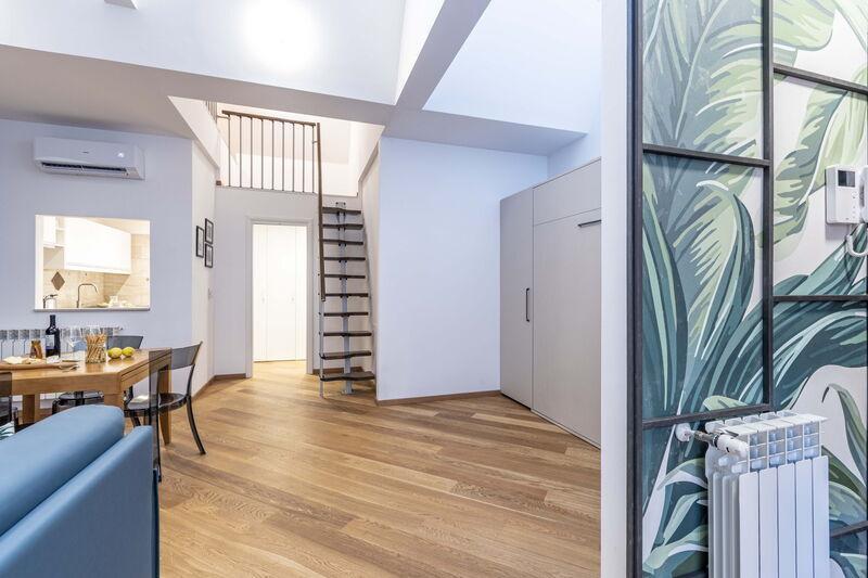 Willkommen in der Suite Trastevere, einem modernen und gemütlichen Rückzugsort im Herzen von Rom. Perfekt für bis zu 4 Personen bietet die Wohnung ein bequemes Schlafsofa und ein stilvolles Klappbett, das in das Wohnzimmer integriert ist – eine intelligente und funktionale Lösung. Die Räume sind hell und bis ins Detail sorgfältig gestaltet, um Entspannung und Komfort zu gewährleisten.Draußen erwartet Sie eine charmante private Terrasse mit Tisch und Stühlen, ideal, um ein Frühstück oder einen Aperitif im Freien zu genießen. Im malerischen Viertel Trastevere gelegen, sind Sie umgeben von charmanten Gassen, traditionellen Restaurants und der authentischen Atmosphäre des lebendigsten Roms.Open Space:Wohnbereich mit Schlafsofa1 DoppelbettVoll ausgestattete Küche1 komplettes BadezimmerBEGRÜSSUNGS-KIT INKLUSIVEBETTWÄSCHE:3 Handtücher pro Person (1 Badetuch, 1 Gesichtshandtuch, 1 Bidet-Handtuch)2 Bettlaken pro Bett2 KissenbezügeBADEZIMMER:1 Duschmatte pro Badezimmer1 Handseife (Einwegspender) pro Badezimmer1 Duschgel/ Shampoo (Einwegspender) pro Badezimmer2 verpackte Toilettenpapierrollen pro BadezimmerKÜCHE:1 Einweg-Küchenset mit Spültuch, Schwamm, Spülmittel, Geschirrspültabs und Müllbeuteln1 Flasche Wasser1 Küchenrollenhalter1 KüchentuchREINIGUNG:Die Reinigung erfolgt zu Beginn und am Ende des Aufenthalts.INTERNET:Kostenloses WLAN verfügbar.KLIMAANLAGE UND HEIZUNG:Das Haus ist mit Klimaanlage und Heizung ausgestattet.KINDER:Kinder sind willkommen, und alle Räume sind kinderfreundlich.BARRIEREFREIHEIT:dritte Stock mit Aufzug.LÄRM:Das Haus befindet sich in einem ruhigen Viertel.TIERE:Haustiere auf Anfrage erlaubt.