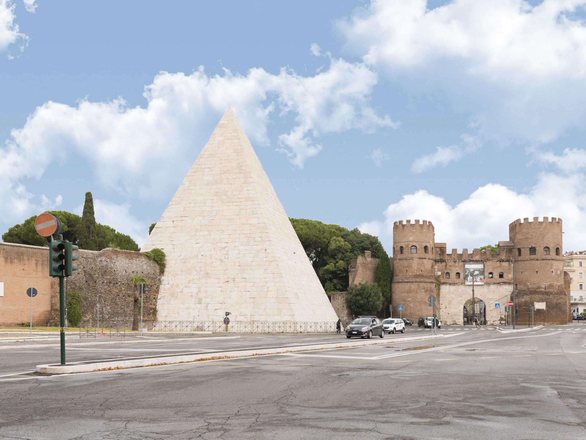 Appartementhaus. Im Ortszentrum von Roma, zentrale, belebte Lage. Öffentliche Parkplätze 10 m. Supermarkt, Einkaufszentrum 300 m, Bushaltestelle 150 m, Bahnstation "Roma Ostiense" 400 m, U-Bahnstation "Piramide" 300 m, Sandstrand "Fregene/Maccarese" 20 km, Park "Rimembranza" 400 m, See Br 20 km. Nahe gelegene Sehenswürdigkeiten: Piramide 300 m, Cimitero Acattolico 300 m, Circo Massimo 2 km, Colosseo - Fori Romani 4 km, Metro/Bus Stop 300 m, Eataly 1.5 km. Bitte beachten: Autobahn 15 km vom Haus. Flugplatz 15 km vom Haus.
