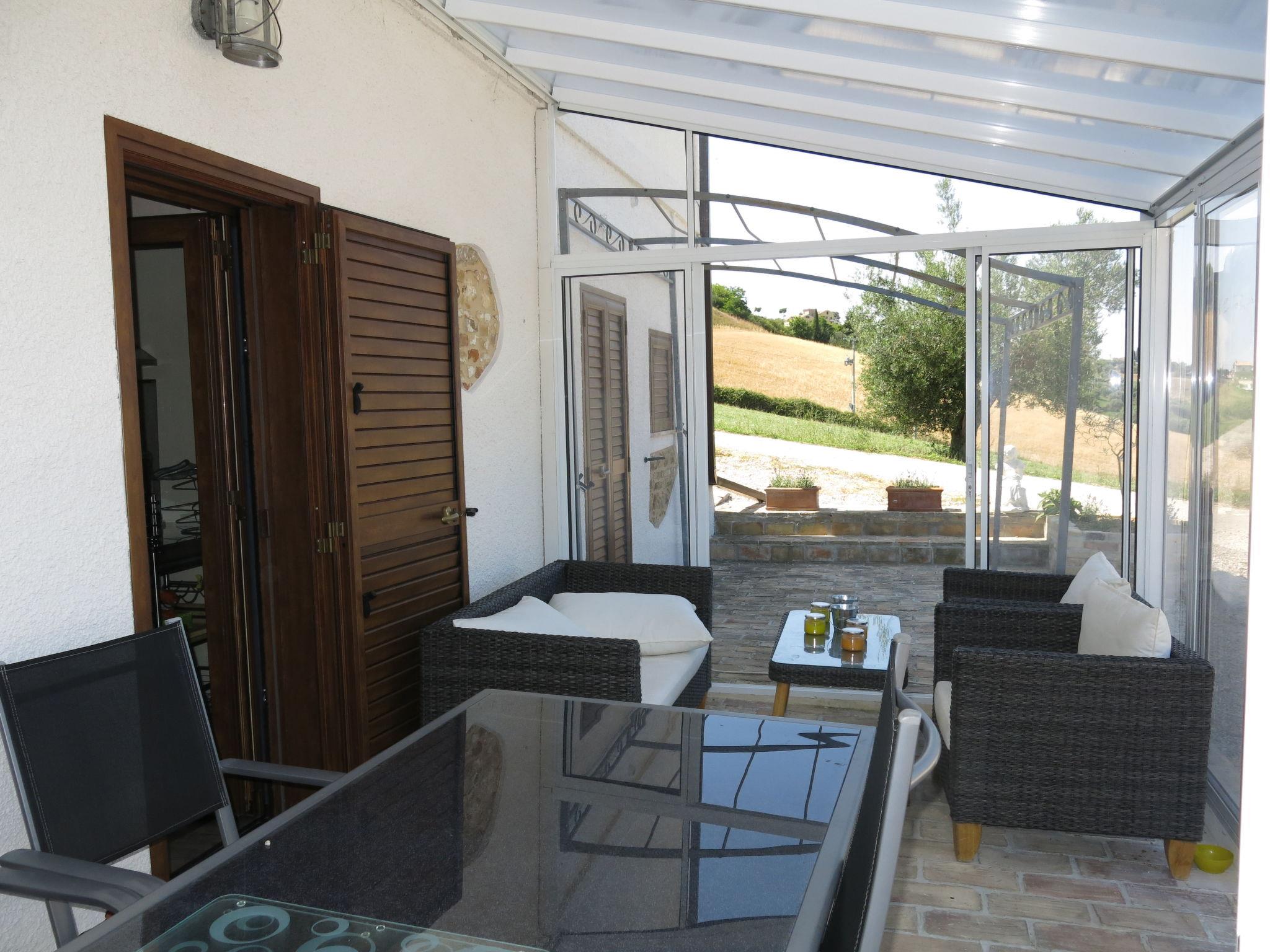 Sehr schöner, rustikaler, komfortabler Landsitz "Serrani", renoviert im Jahre 2018, umgeben von Wiesen und Feldern. 2 Häuser in der Residenz. 4 Wohnungen in der Residenz. 8 km vom Zentrum von Roseto degli Abruzzi, 13 km vom Zentrum von Giulianova, 17 km vom Zentrum von Pineto, alleinstehende, sonnige Lage am Hang, 6 km vom Meer, im Grünen. Zur Mitbenutzung: naturbelassenes Grundstück 5 ha, schöner terrassierter Garten, 5'000 m2 (nicht eingezäunt) mit Pflanzen und Bäumen, Obstgarten, Liegewiese, Aufstellpool (10 x 5 m, 130 cm tief, saisonale Verfügbarkeit: 01.Jun. - 28.Sep.). Sitzplatz, Laube, Pergola, Gartenmöbel, Grill. In der Anlage: Sprudelbad (extra). Waschmaschine (zur Mitbenutzung). 100 m lange holprige Zufahrt bis zum Haus. Treppenweg bis zum Haus. Parkplatz auf dem Grundstück. Einkaufsgeschäft 1 km, Supermarkt 8 km, Bushaltestelle 500 m, Bahnstation "Roseto degli Abruzzi" 8 km, Sandstrand 6 km. Ab Hof Verkauf von bäuerlichen Produkten. Bitte beachten: Weitere Unterkünfte sind buchbar.