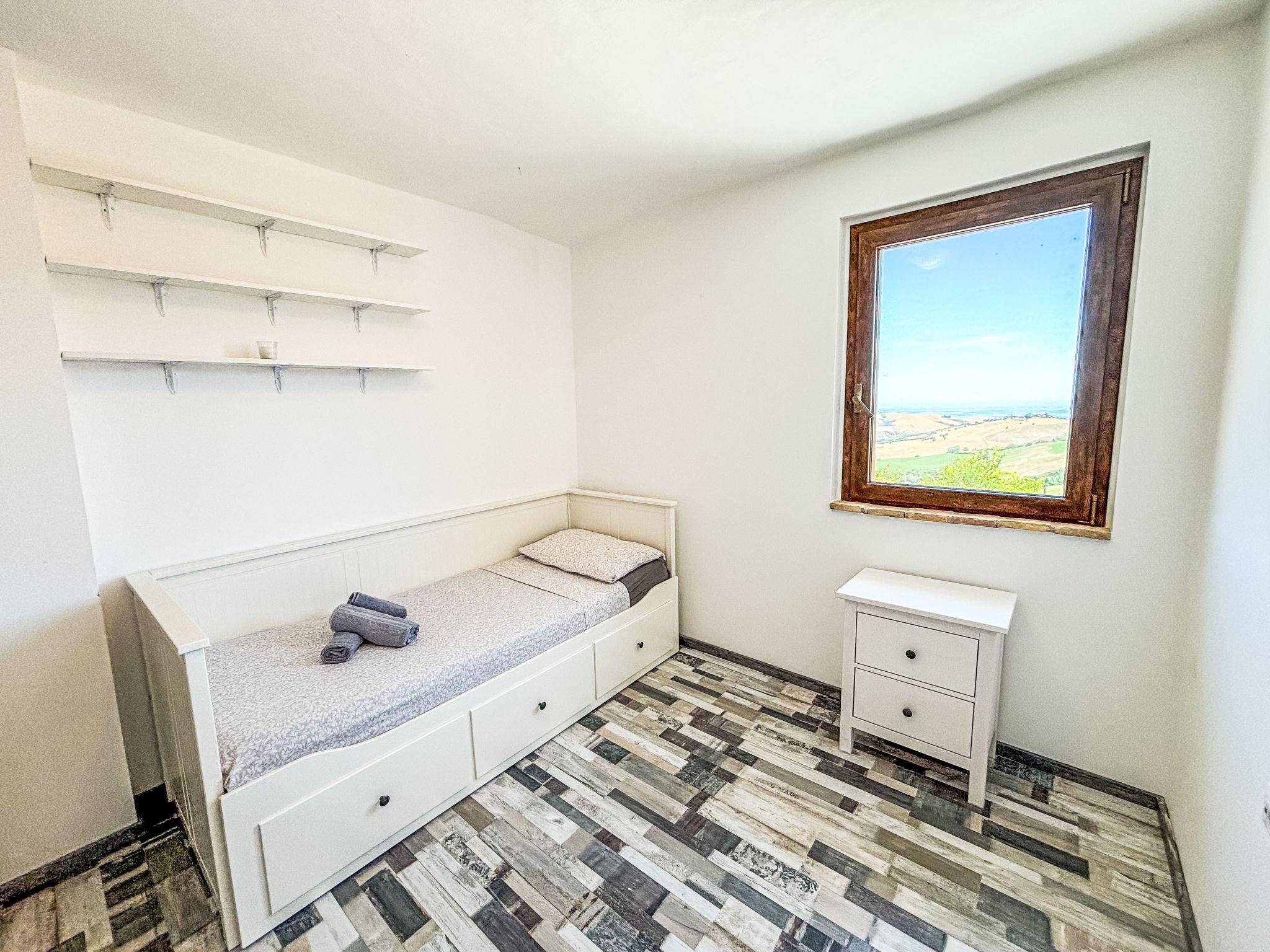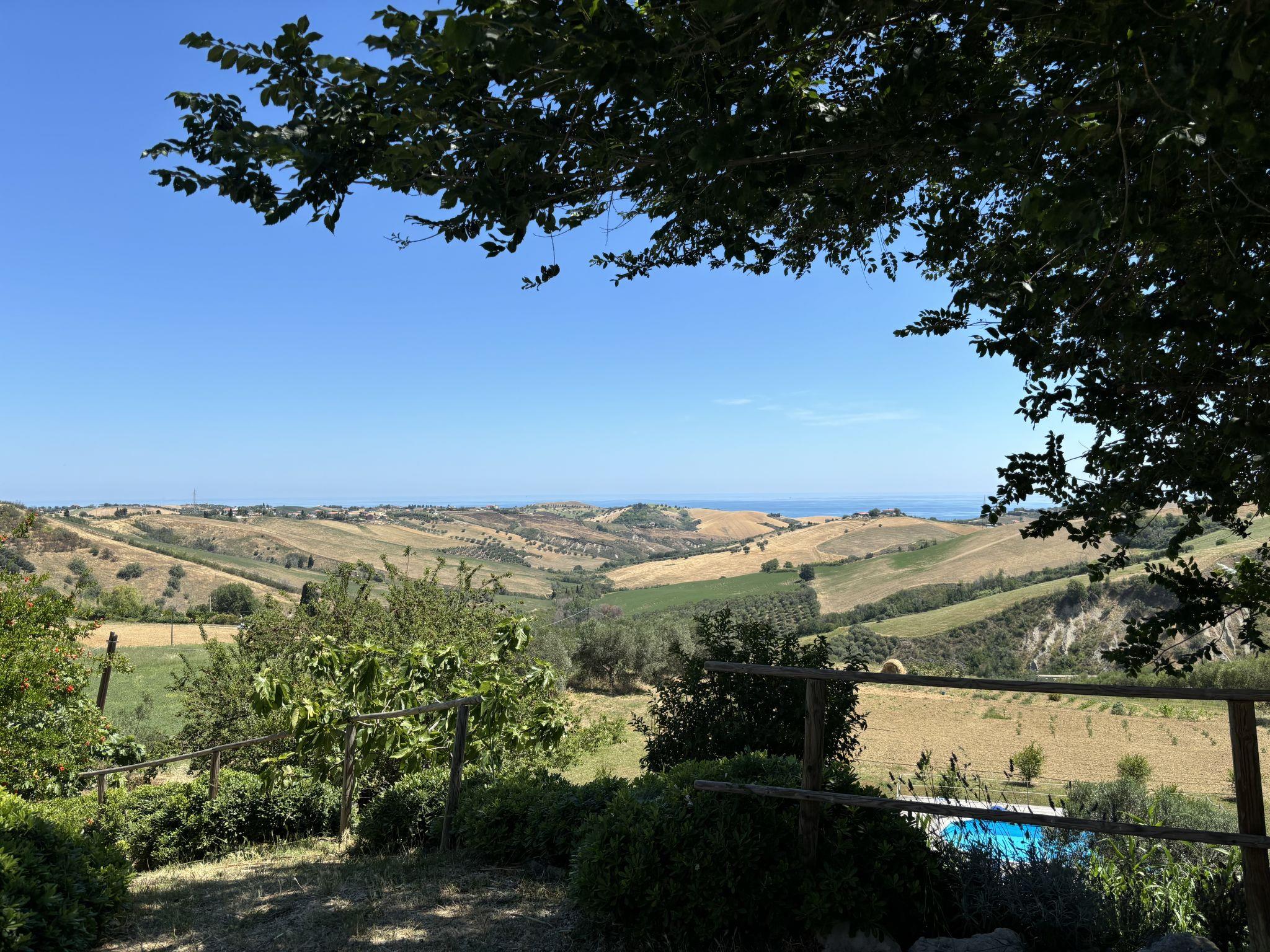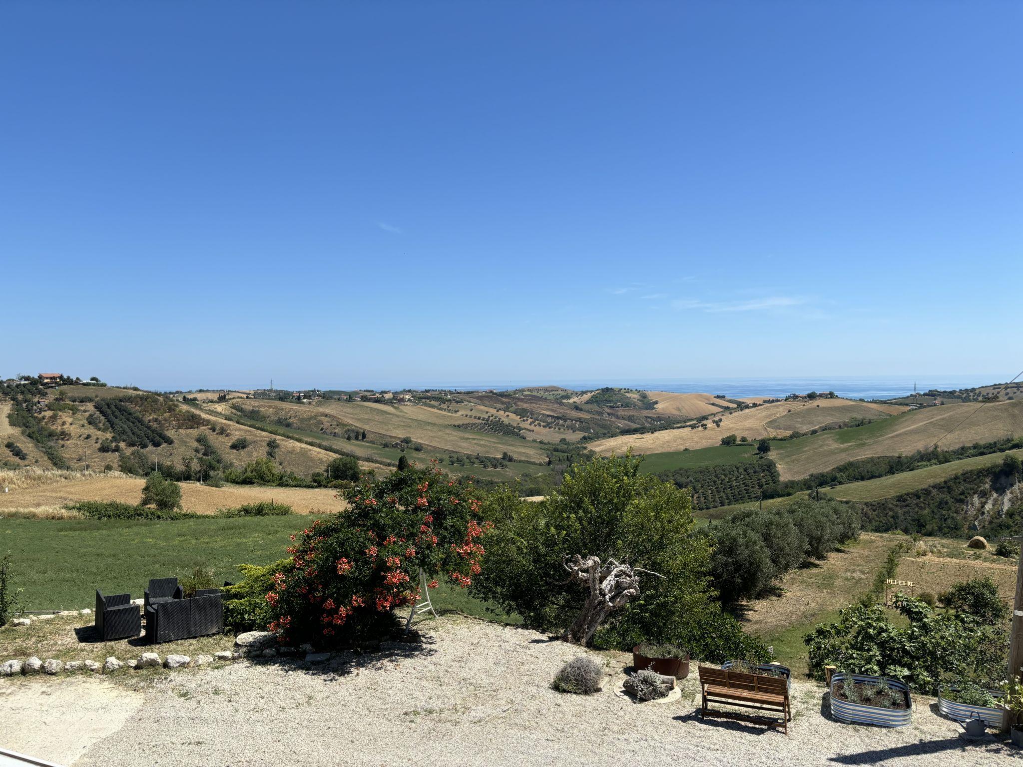 Sehr schöner, rustikaler, komfortabler Landsitz "Serrani", renoviert im Jahre 2018, umgeben von Wiesen und Feldern. 2 Häuser in der Residenz. 4 Wohnungen in der Residenz. 8 km vom Zentrum von Roseto degli Abruzzi, 13 km vom Zentrum von Giulianova, 17 km vom Zentrum von Pineto, alleinstehende, sonnige Lage am Hang, 6 km vom Meer, im Grünen. Zur Mitbenutzung: naturbelassenes Grundstück 5 ha, schöner terrassierter Garten, 5'000 m2 (nicht eingezäunt) mit Pflanzen und Bäumen, Obstgarten, Liegewiese, Aufstellpool (10 x 5 m, 130 cm tief, saisonale Verfügbarkeit: 01.Jun. - 28.Sep.). Sitzplatz, Laube, Pergola, Gartenmöbel, Grill. In der Anlage: Sprudelbad (extra). Waschmaschine (zur Mitbenutzung). 100 m lange holprige Zufahrt bis zum Haus. Treppenweg bis zum Haus. Parkplatz auf dem Grundstück. Einkaufsgeschäft 1 km, Supermarkt 8 km, Bushaltestelle 500 m, Bahnstation "Roseto degli Abruzzi" 8 km, Sandstrand 6 km. Ab Hof Verkauf von bäuerlichen Produkten. Bitte beachten: Weitere Unterkünfte sind buchbar.