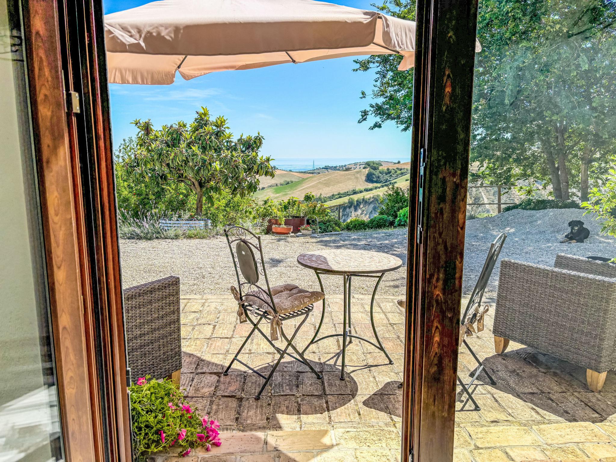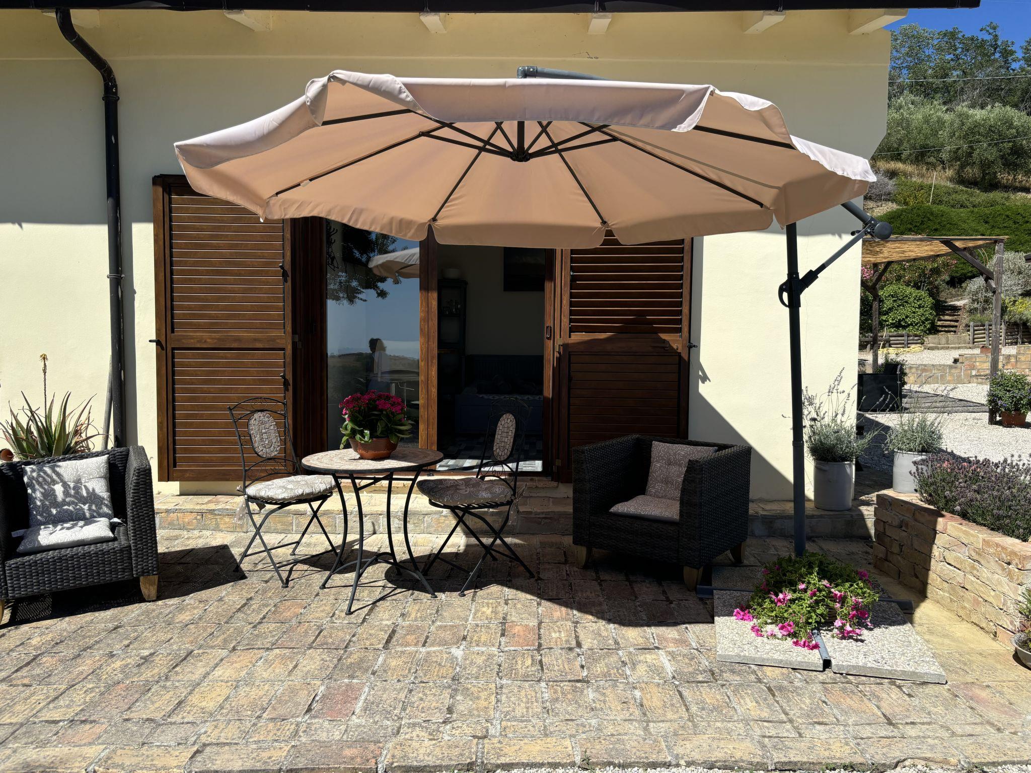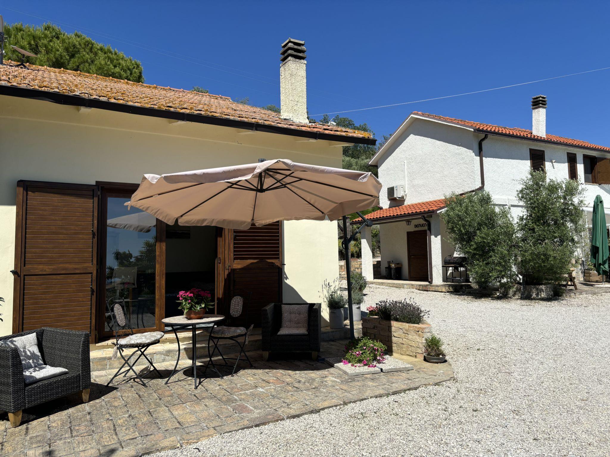 Sehr schöner, rustikaler, komfortabler Landsitz "Serrani", renoviert im Jahre 2018, umgeben von Wiesen und Feldern. 2 Häuser in der Residenz. 4 Wohnungen in der Residenz. 8 km vom Zentrum von Roseto degli Abruzzi, 13 km vom Zentrum von Giulianova, 17 km vom Zentrum von Pineto, alleinstehende, sonnige Lage am Hang, 6 km vom Meer, im Grünen. Zur Mitbenutzung: naturbelassenes Grundstück 5 ha, schöner terrassierter Garten, 5'000 m2 (nicht eingezäunt) mit Pflanzen und Bäumen, Obstgarten, Liegewiese, Aufstellpool (10 x 5 m, 130 cm tief, saisonale Verfügbarkeit: 01.Jun. - 28.Sep.). Sitzplatz, Laube, Pergola, Gartenmöbel, Grill. In der Anlage: Sprudelbad (extra). Waschmaschine (zur Mitbenutzung). 100 m lange holprige Zufahrt bis zum Haus. Treppenweg bis zum Haus. Parkplatz auf dem Grundstück. Einkaufsgeschäft 1 km, Supermarkt 8 km, Bushaltestelle 500 m, Bahnstation "Roseto degli Abruzzi" 8 km, Sandstrand 6 km. Ab Hof Verkauf von bäuerlichen Produkten. Bitte beachten: Weitere Unterkünfte sind buchbar.