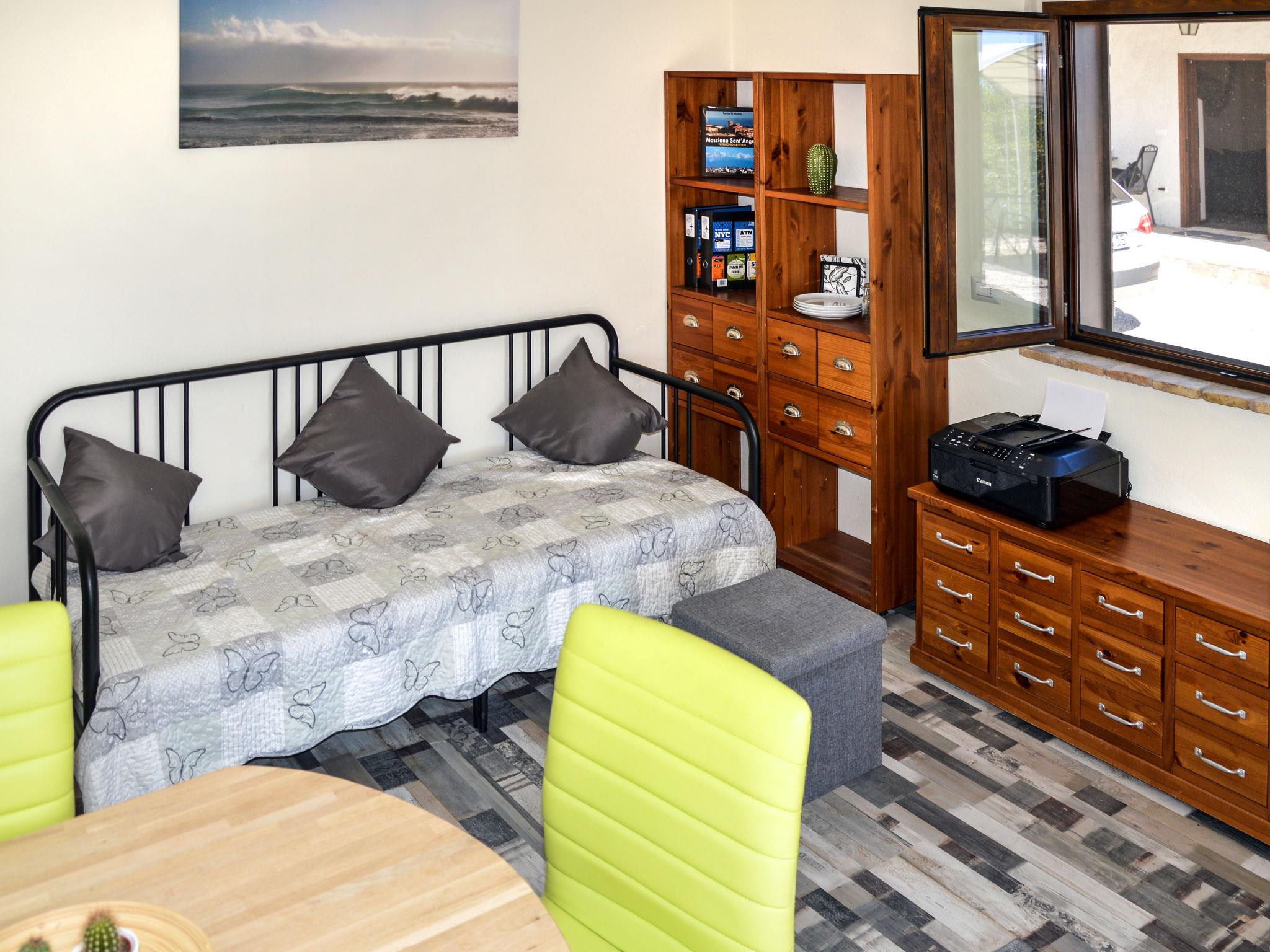 "Vivace (RSO154)", 1-Zimmer-Wohnung 24 m2, im Erdgeschoss. Objekt geeignet für 2 Erwachsene. Hell, modern und stilvoll eingerichtet: Wohn-/Schlafzimmer mit 1 Doppeldiwanbett, offenem Kamin, Esstisch und Sat-TV. Ausgang zur Terrasse. Kochnische (2 Induktionskochplatten, Toaster, Wasserkocher, elektrische Kaffeemaschine). Dusche/WC. E-Heizung, Klimaanlage. Gartensitzplatz. Terrassenmöbel. Herrliche Panoramasicht auf die Landschaft und das Meer. Zur Verfügung: Fliegengitter. Internet (WLAN, gratis). Bitte beachten: Nichtraucher-Unterkunft. Maximal 1 Haustier/Hund erlaubt. Eigener Eingang. IT067037B5QVBYIHQI