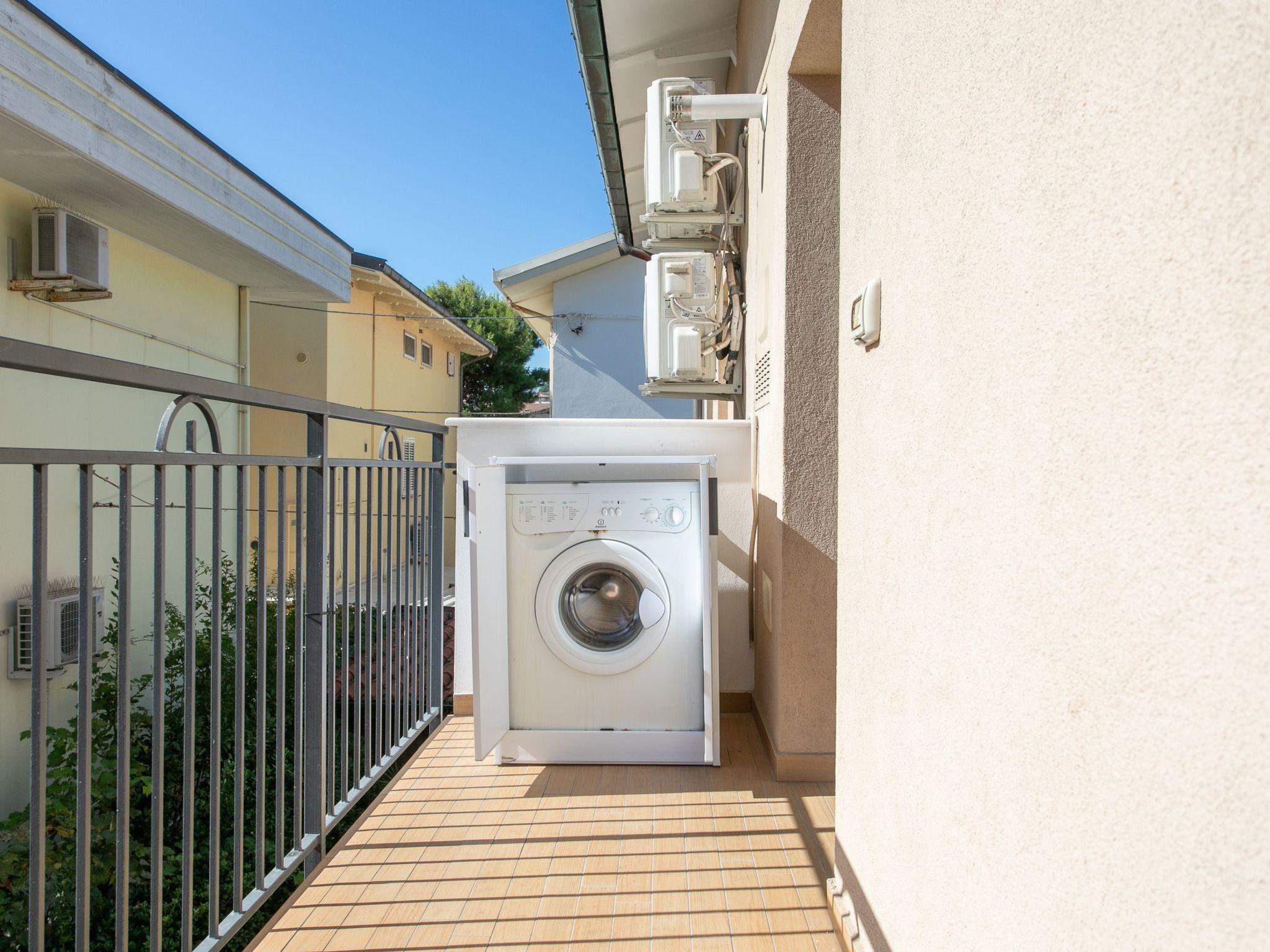 Die Wohnung verfügt über einen möblierten Balkon, auf dem Sie Ihr Frühstück in der Sonne genießen oder sich mit einem guten Buch entspannen können. Der private Garten ist eine Oase der Ruhe, ideal um sich nach einem Tag am Strand zu entspannen oder um die Kinder sicher spielen zu lassen. Es gibt auch eine praktische Außendusche, ideal zum Abkühlen nach der Rückkehr vom Strand.