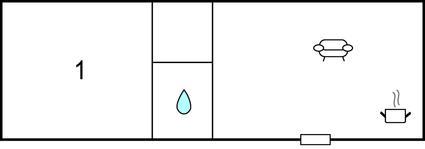 Badezimmer (nr. 1) - WC. Warmes und kaltes Wasser. Dusche