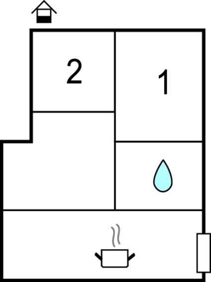 Badezimmer (nr. 1) - WC. Warmes und kaltes Wasser. Dusche