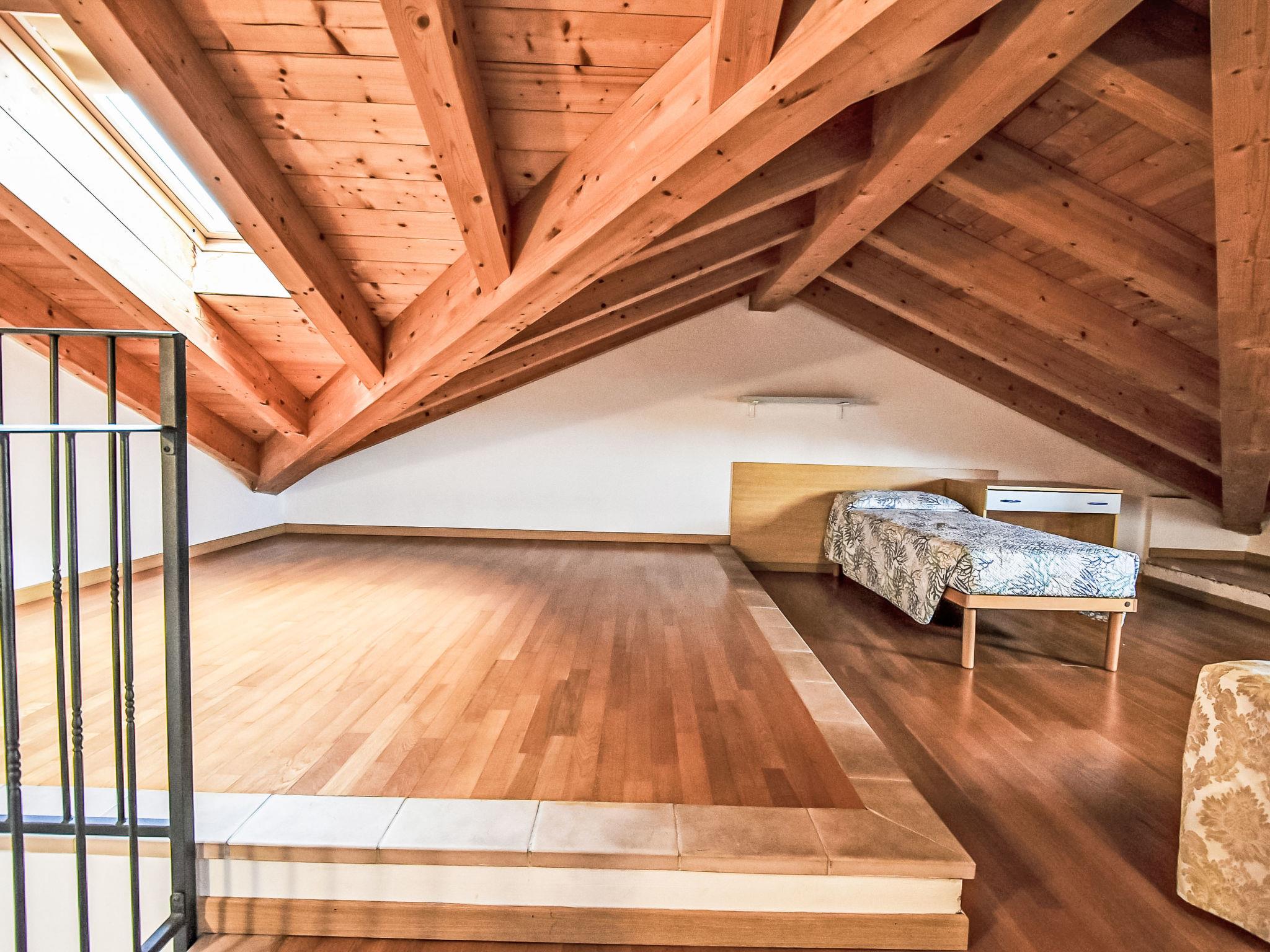 4-Zimmer-Wohnung 90 m2 auf 3 Stockwerken, im erhöhten Erdgeschoss. Teilweise abgeschrägt, zweckmässig und komfortabel eingerichtet: grosses Wohn-/Esszimmer mit Esstisch und TV. Kleine Küche (Mini-Backofen, 4 Flammen, Tiefkühler). Dusche/Bidet/WC. Obergeschoss: 1 Zimmer mit 2 Betten. 1 Doppelzimmer. Dusche/Bidet/WC. 2. Obergeschoss: 1 abgeschrägtes grosses Zimmer mit 1 Bett und 1 Doppelbett. Klimaanlage. Keine Heizmöglichkeit. Zur Verfügung: Kinderhochstuhl, Babybett (extra). Internet (WLAN, gratis). Parkplatz. Bitte beachten: geeignet für Familien. Maximal 1 Haustier/Hund erlaubt. Eigener Eingang. IT029040B42NDDRPRP