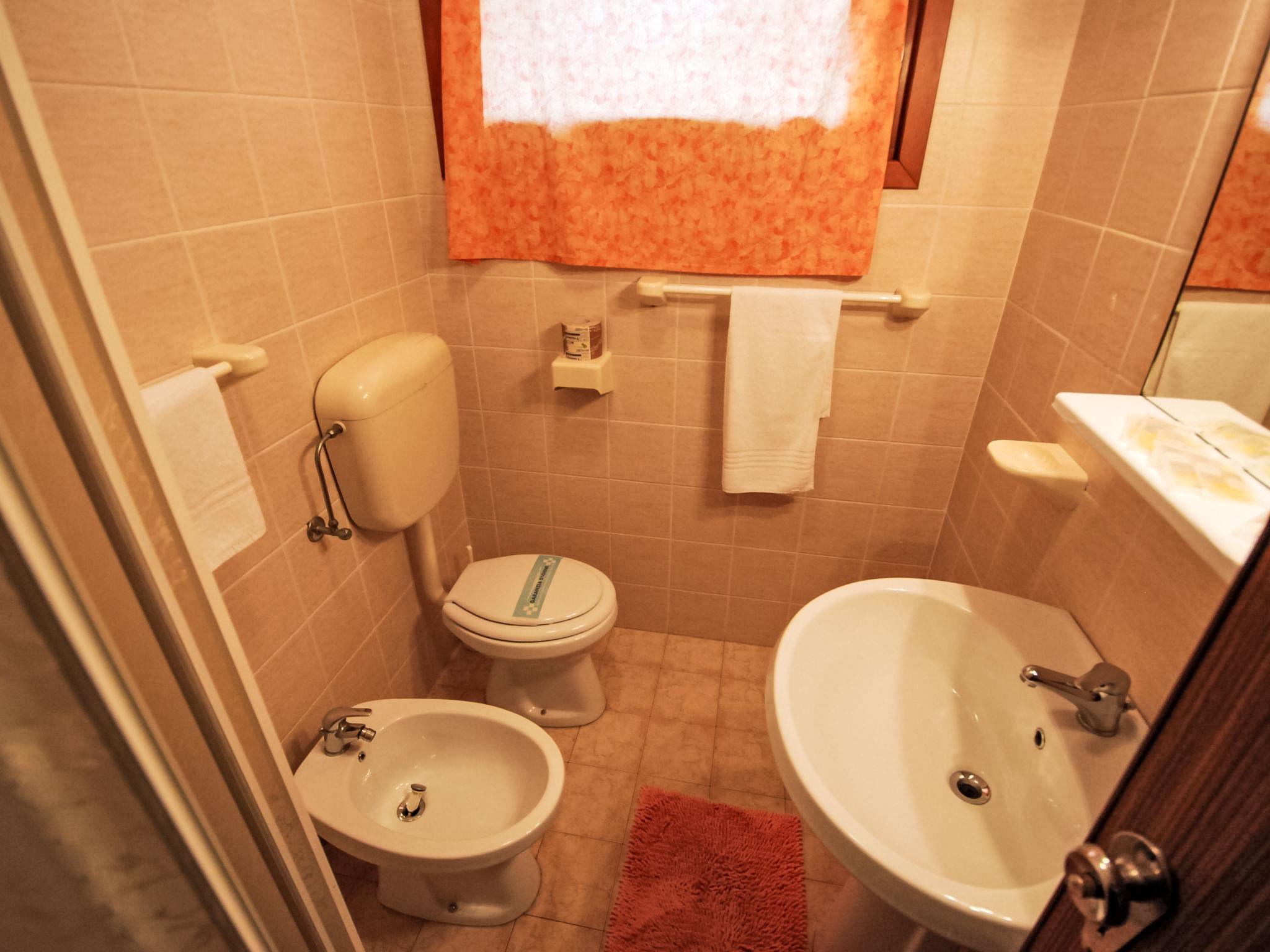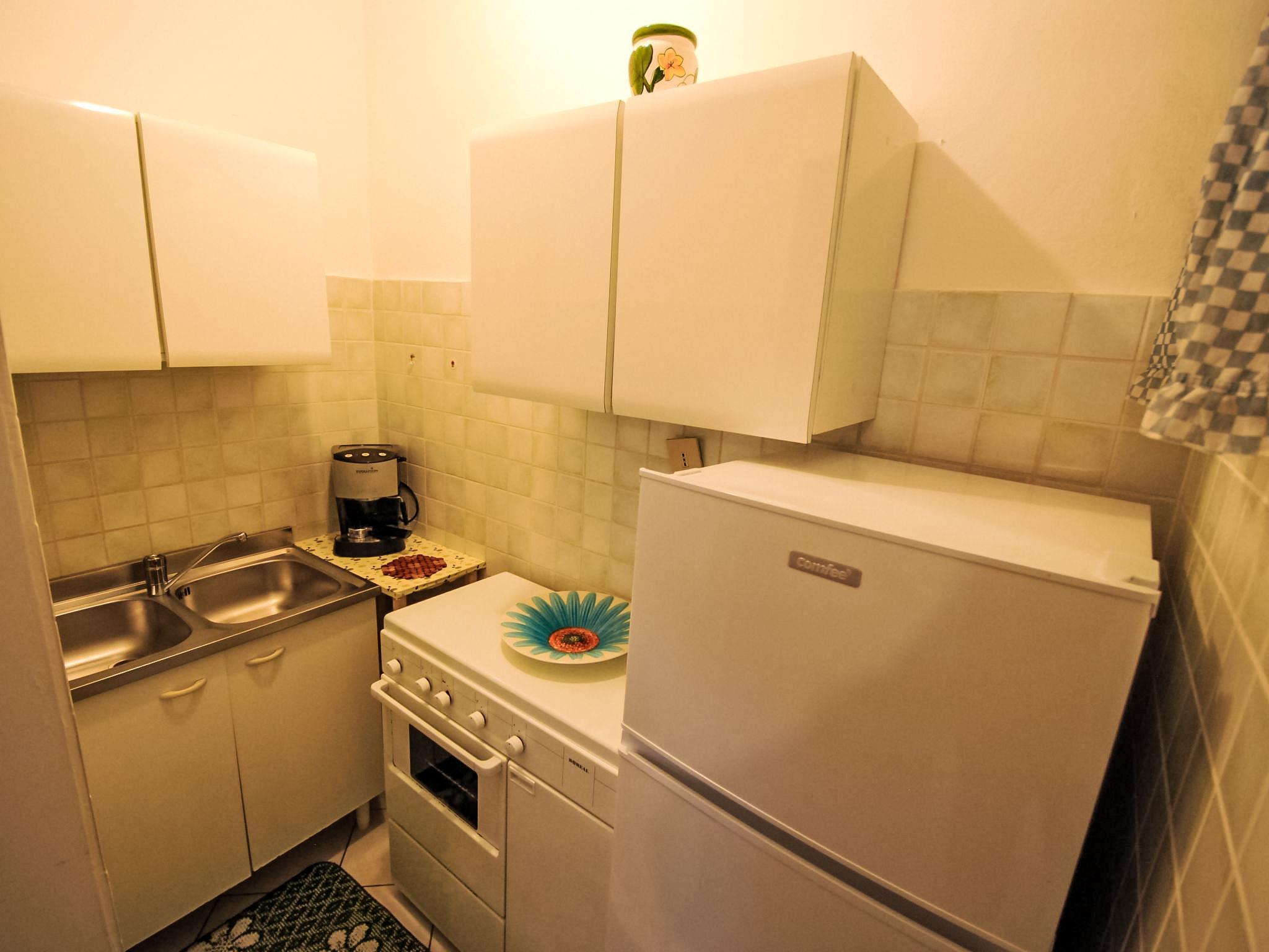 3-Zimmer-Wohnung 40 m2. Hell, einfach und zweckmässig eingerichtet: Wohn-/Esszimmer mit 1 Doppeldiwanbett, Esstisch und TV. 1 Zimmer mit 2 Betten. 1 Zimmer mit 1 Doppelbett. Kochnische (4 Kochplatten, Backofen, Tiefkühler). Dusche/Bidet/WC. Klimaanlage. Keine Heizmöglichkeit. Zur Verfügung: Kinderhochstuhl, Babybett (extra). Internet (WLAN, gratis). Bitte beachten: Nichtraucher-Unterkunft. Maximal 1 Haustier/Hund erlaubt. IT029040B4R0N5KZBJ