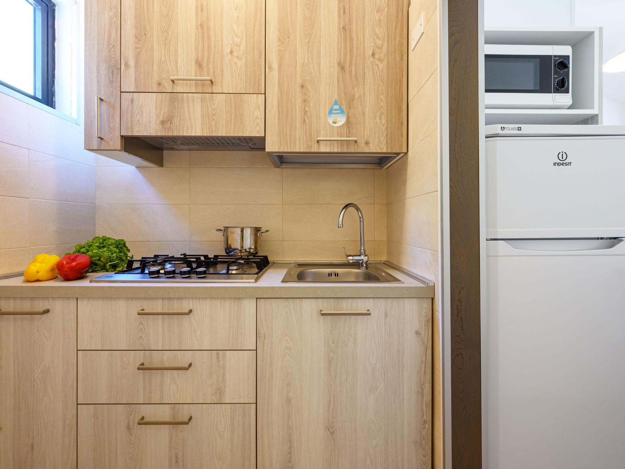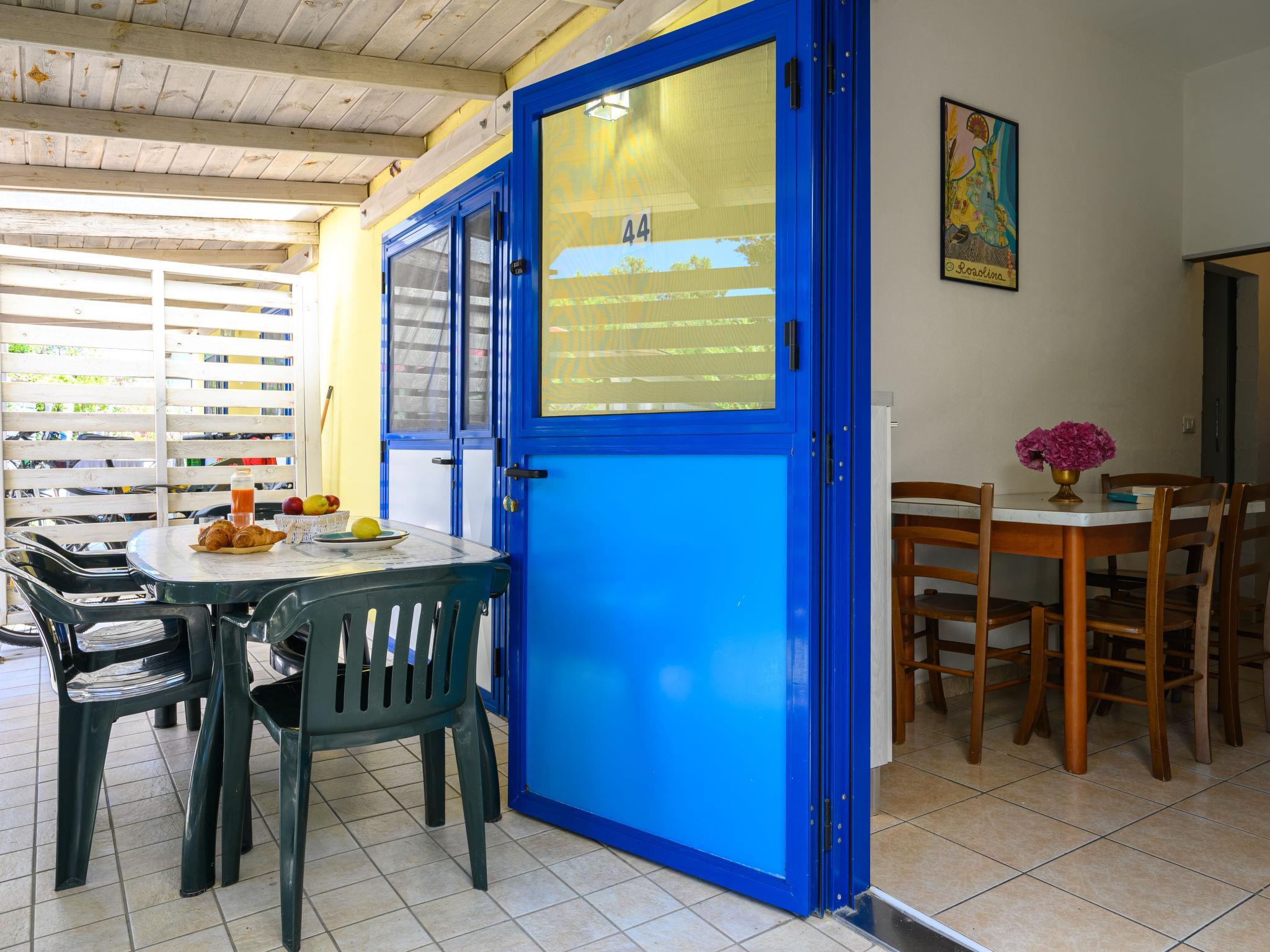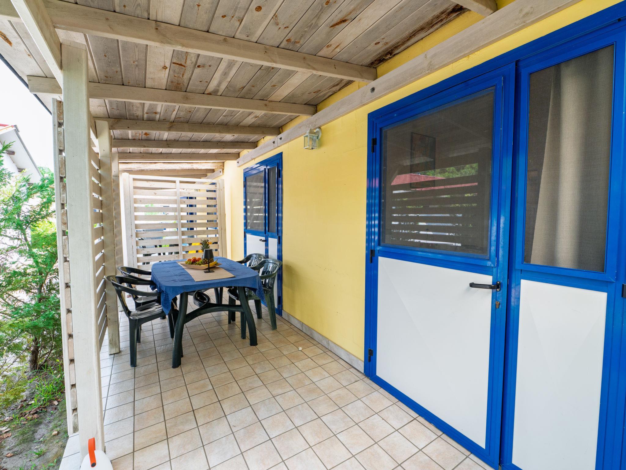 "Bungalow Plus", 3-Zimmer-Bungalow. Modern eingerichtet: Wohn-/Esszimmer mit Esstisch, Küchenblock und Sat-TV. Ausgang zur Terrasse. 1 Doppelzimmer. 1 Zimmer mit 1 x 2 Etagenbetten. Offene Küche (Gasherd, 4 Flammen, Mikrowelle, Tiefkühler). Dusche/Bidet/WC. Klimaanlage, Warmluftheizung. Terrasse überdacht. Terrassenmöbel. Zur Verfügung: Babybett (extra). Internet (WLAN, gratis). Parkplatz (1 Auto). Maximal 1 Haustier/Hund erlaubt. IT029040B25Y8X5F8K