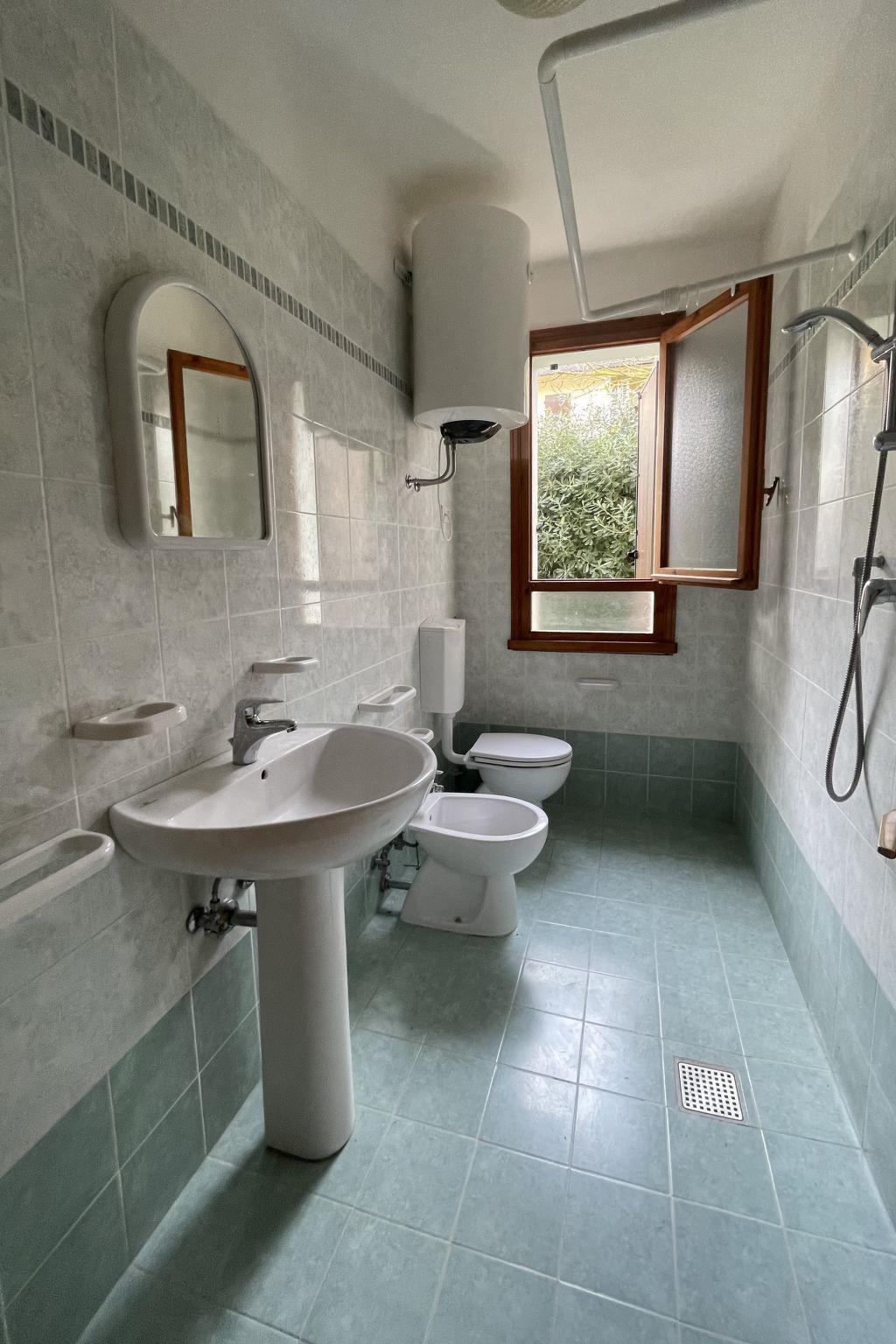 2-Zimmer-Wohnung 34 m2. Zweckmässig eingerichtet: Wohn-/Schlafzimmer mit 1 Diwanbett, Esstisch und TV. 1 Zimmer mit 1 x 2 Etagenbetten, 1 Doppelbett. Kochnische (4 Flammen, Tiefkühler). Dusche/Bidet/WC. Klimaanlage, Warmluftheizung (extra). Balkon oder Terrasse teilweise überdacht. Balkonmöbel. Zur Verfügung: Babybett (extra). Internet (WLAN, extra). Parkplatz (1 Auto) beim Haus. Maximal 1 Haustier/Hund erlaubt. IT029040C27QYDENST