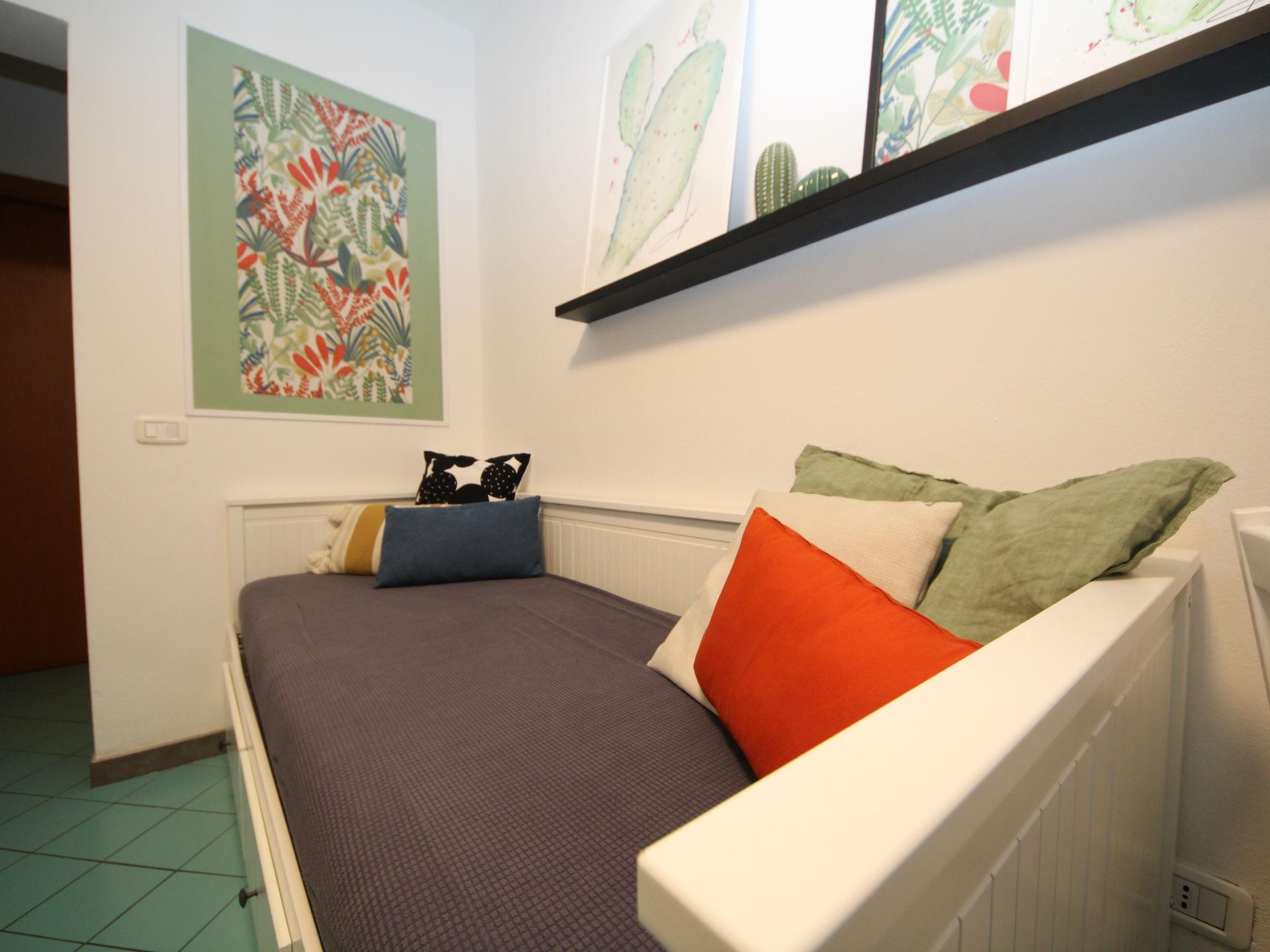 2-Zimmer-Wohnung 35 m2. Hell, renoviert im Jahre 2023, modern eingerichtet: Wohn-/Schlafzimmer mit 1 Doppeldiwanbett, Esstisch und TV. 1 Doppelzimmer. Kochnische (Geschirrspüler, 4 Flammen, Mikrowelle, Tiefkühler). Dusche/Bidet/WC. Klimaanlage, Warmluftheizung (extra). Kleiner Balkon oder kleine Terrasse. Terrassenmöbel. Zur Verfügung: Waschmaschine, Babybett bis 2 Jahre (extra). Internet (WLAN, extra). Parkplatz (1 Auto) beim Haus. Bitte beachten: Maximal 1 Haustier/Hund erlaubt. Eigener Eingang. IT029040C2N6N5MC4H
