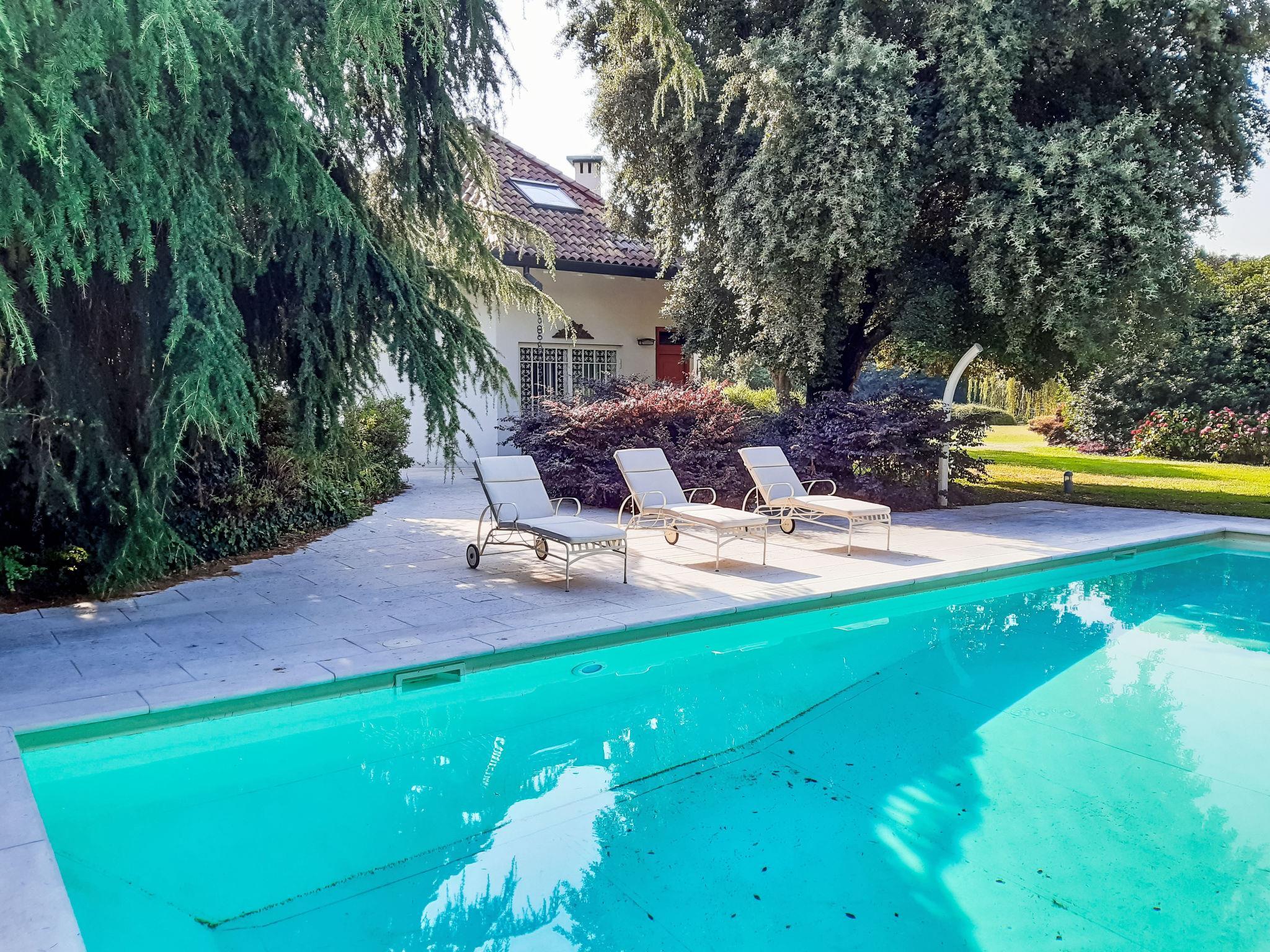 Franciacorta: Schöne, freistehende, komfortable Villa "San Giorgio", renoviert im Jahre 2015, umgeben von Bäumen und Wiesen. Im Weiler Sant' Anna, 2.5 km vom Zentrum von Rovato, 17 km vom Zentrum von Iseo, sonnige Lage, 17 km vom See, im Grünen, Richtung Süden. Zur Alleinbenutzung: Park 16'000 m2 (eingezäunt), grosser, gepflegter Garten mit Blumen und Bäumen, Liegewiese, Teich, Schwimmbad nicht einsehbar (12 x 6 m, 60 - 180 cm tief, saisonale Verfügbarkeit: 01.Apr. - 31.Okt.). Dusche/WC im Poolbereich, Poolhaus mit Kühlschrank, Gartenmöbel, Grill, Poolpflege durch den Besitzer/Gärtner. Im Hause: Einstellraum für Fahrräder, Zentralheizung. Parkplatz (überdacht) beim Haus. Lebensmittelgeschäft 2 km, Supermarkt 2 km, Restaurant 2 km, Bar 600 m, Café 2 km, Bushaltestelle 400 m, Bahnstation "Rovato" 2.8 km, Thermalbad "Boario Terme" 55 km. Golfplatz (18 Loch) 12 km. Nahe gelegene Sehenswürdigkeiten: Porsche Experience Center Franciacorta 3.3 km, Brescia 21 km, Bergamo 39 km, Milano 75 km, Verona 85 km. Bekannte Seen in der Umgebung sind gut erreichbar: Lago di Iseo 17 km, Lago di Garda 47 km, Lago di Como 75 km. Wandergebiete: Riserva Naturale Torbiere del Sebino 15 km. Bitte beachten: Fahrzeug empfohlen. Die Residenz wird durch elektrische Tore geschlossen. Autobahn in der Nähe 2 km vom Haus.