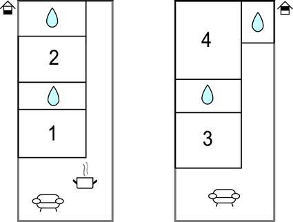 Badezimmer 8m2 (nr. 1) - WC. Warmes und kaltes Wasser. Dusche