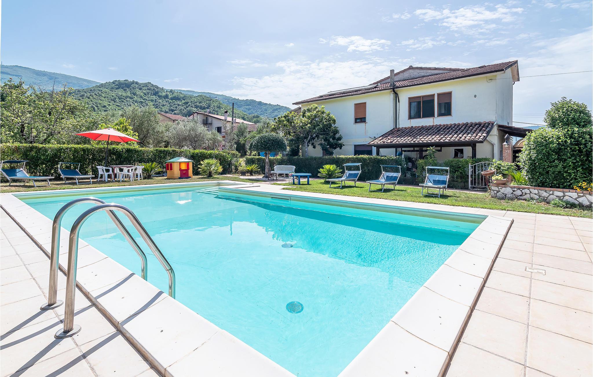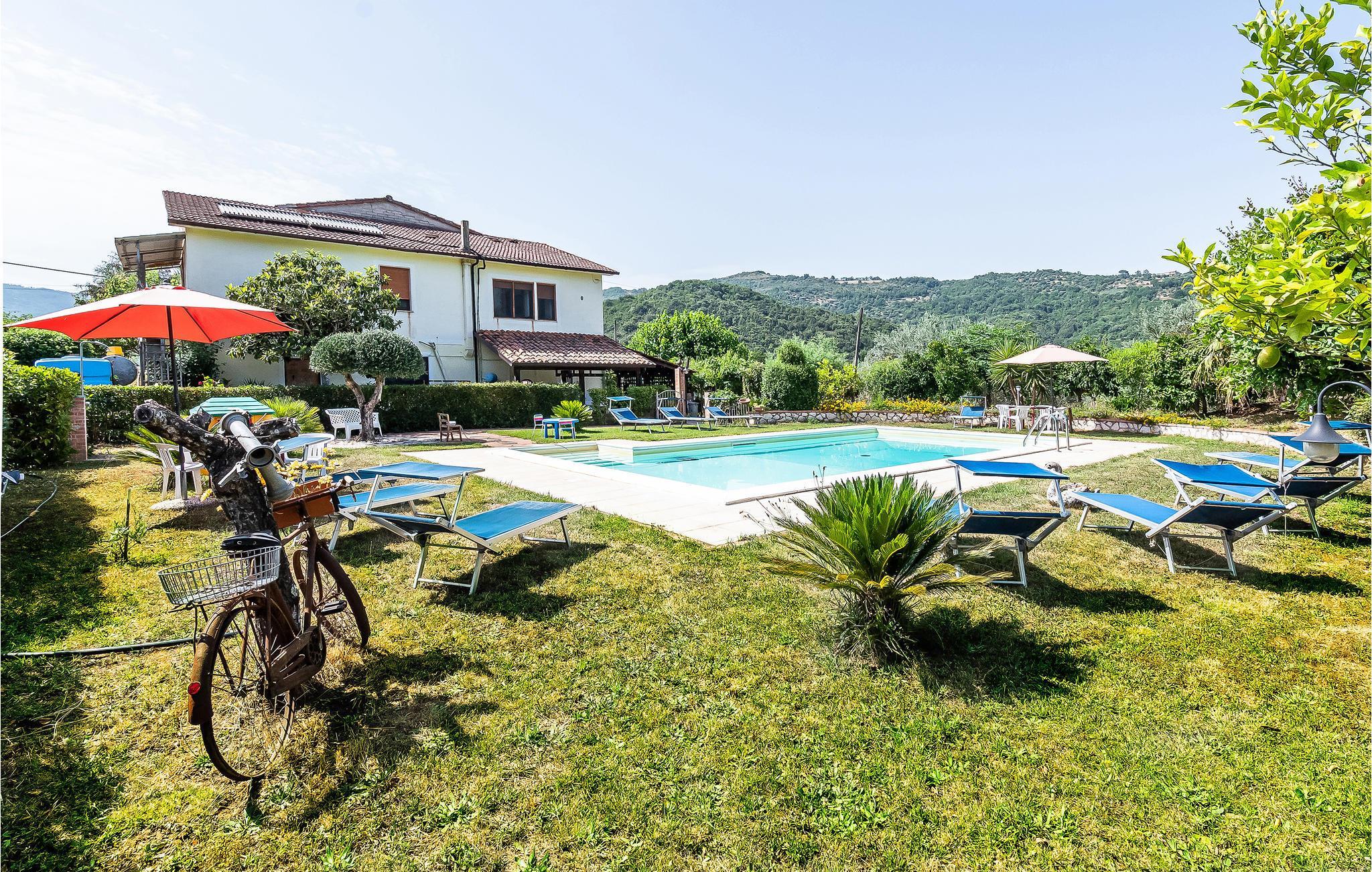 Dieses schöne Ferienhaus in einer ruhigen Gegend in der unmittelbaren Umgebung des kleinen Dorf S. Lucia di Sessa Cilento entstand einst als Agrotourismus und bietet großzügige Aufenthaltsbereiche, sowohl im Haus mit Speisebereich im Erdgeschoss und Wohn-/Esszimmer im ersten Stock, wie auch draußen, wo den Kunden ein großer Pavillon zur Verfügung steht, wo sie im Freien gemütlich speisen können. Das Anwesen umfasst zudem einen schönen Pool, wo man sich nach einem Tagesausflug ans Meer oder in die nähere Umgebung entspannen kann. Die nächsten Sandstrände sind ca. 13 km entfernt. Das Feriendomizil befindet sich im reizvollen Gebiet des Cilento, in der Region Kampanien, im Süden Italiens, zwischen Paestum im Norden, Sapri im Süden und dem Diano-Tal im Osten mit rund 100 km Küste, Bergen und 200 kleinen, meist mittelalterlichen Dörfern. 1991 wurden bedeutende Teile des Gebietes zum Nationalpark (Nationalpark Cilento und Vallo di Diano) und 1998 zum UNESCO-Welterbe der Menschheit erklärt.