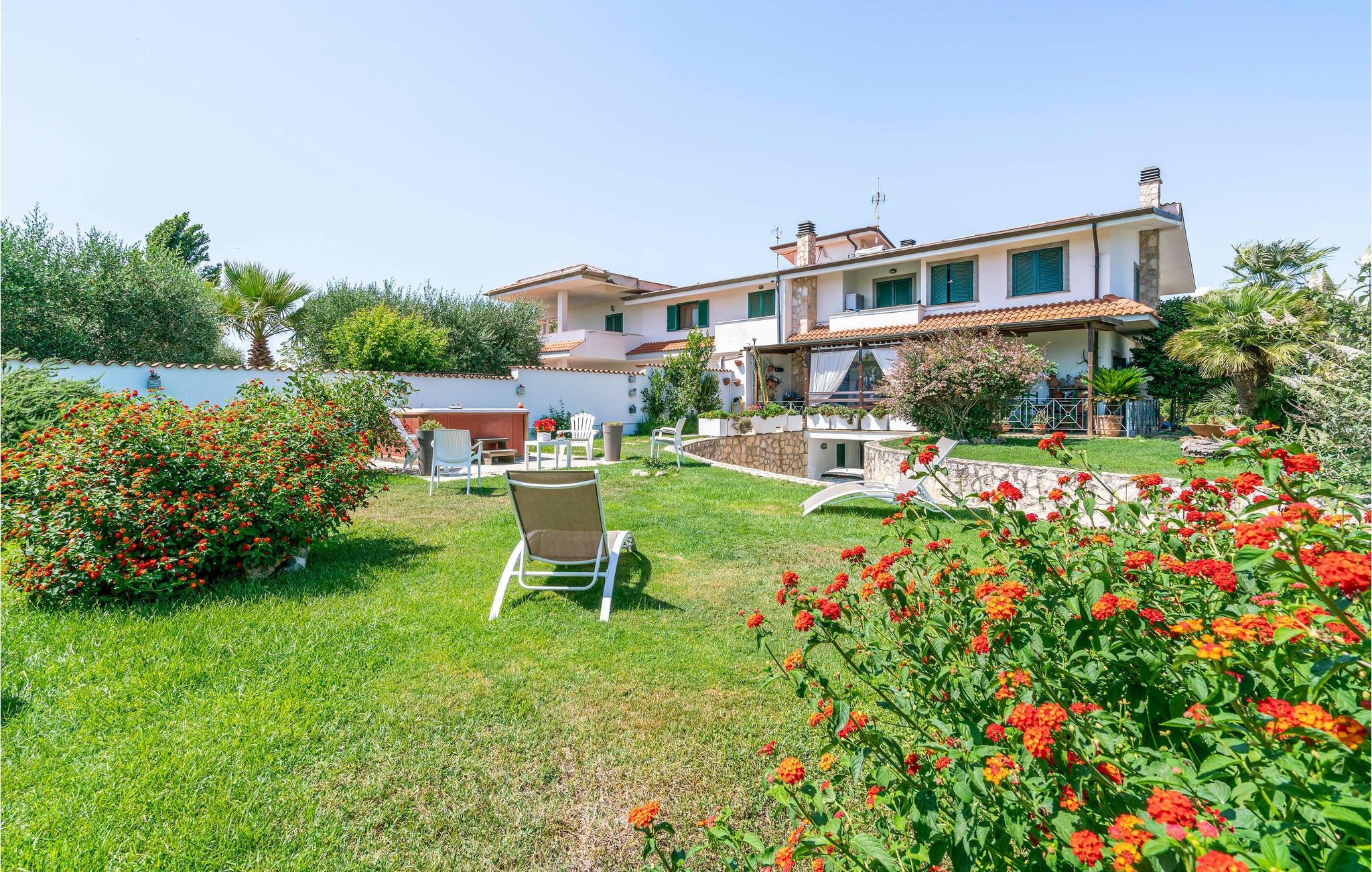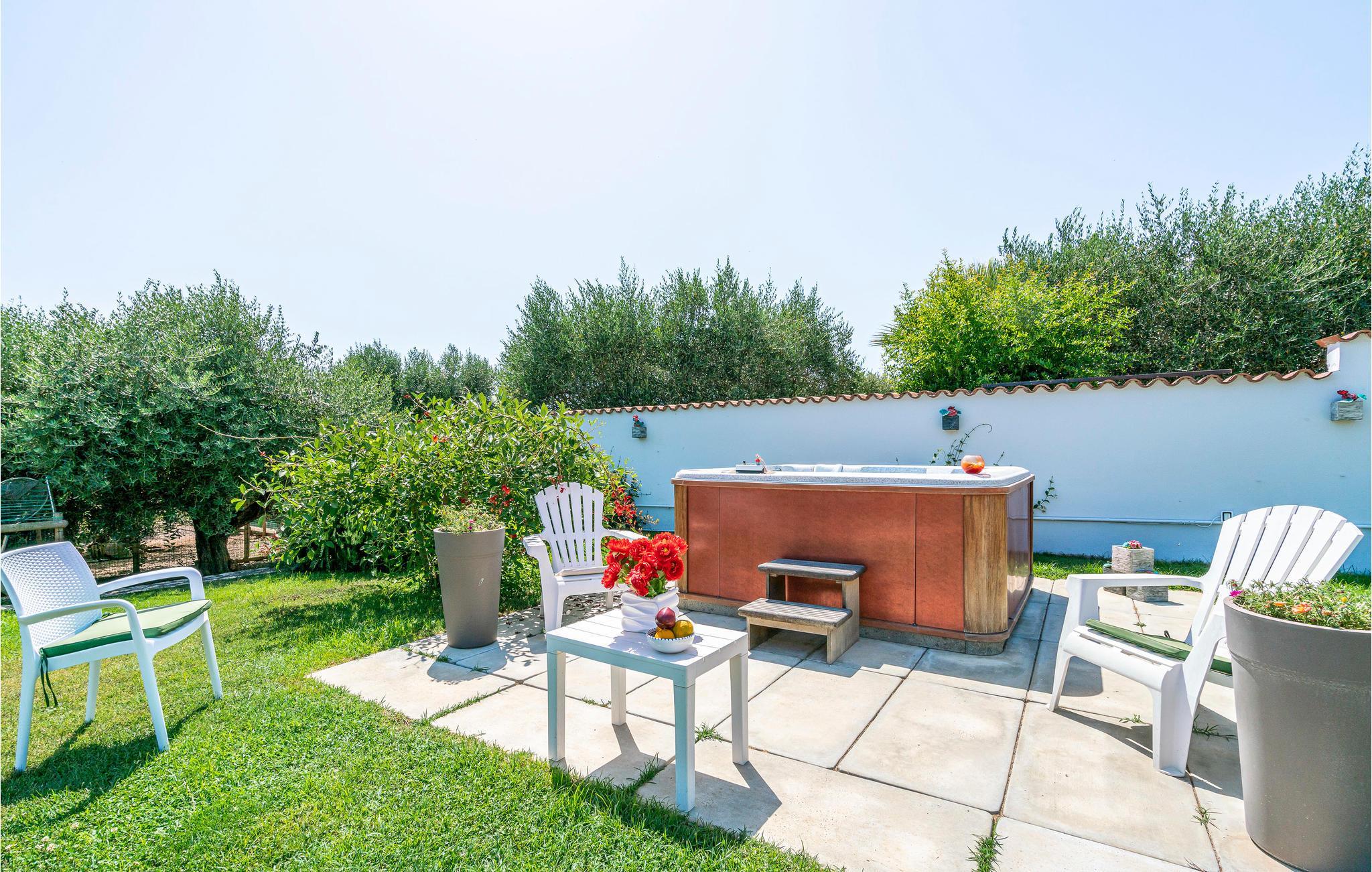 Diese schöne Ferienvilla heißt Sie mit ihren zwei Schlafzimmern, drei Bädern und mehreren Wohnräumen mit Küche herzlich willkomen. In dieser Doppelhaushälfte werden Sie viel Platz zum Entspannen finden. Auf den Terrassen und dem Balkon können Sie auf gemütlichen Gartenmöbeln das wundervolle Wetter Italiens genießen. Hier können Sie morgens frühstücken oder den Tag bei einem Glas Wein ausklingen lassen. Im Garten finden Sie viel Platz zum Spielen und den schönen großen gemeinsamen Pool.