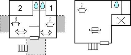 Badezimmer (nr. 2) - WC. Warmes und kaltes Wasser. Dusche