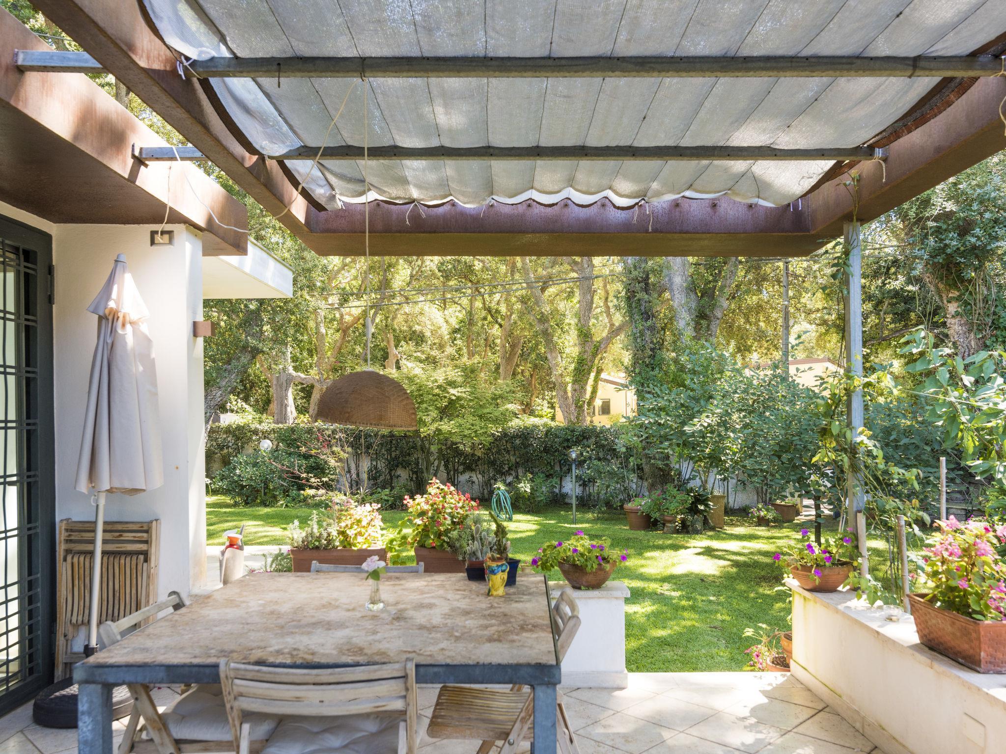 Nebenhaus, umgeben von Bäumen. 2 Häuser in der Residenz. Im Ort, 8 km vom Zentrum von Sabaudia, 10 m vom Waldrand, 2.6 km vom Meer, 200 m vom See, 2.6 km vom Strand, im Grünen, im Wald. Zur Mitbenutzung: grosser Garten (eingezäunt). Terrasse. Zur Alleinbenutzung: Grundstück 400 m2, Teich. Aussendusche, Terrasse, Gartenmöbel, Grill, begrünter Innenhof Parkplatz beim Haus, öffentliche Parkplätze extra. Lebensmittelgeschäft 1 km, Restaurant 1 km, Bushaltestelle "Baia d’argento" 200 m, Bahnstation "Fossanova" 26 km, Strandbad 2.6 km. Nahe gelegene Sehenswürdigkeiten: Parco Nazionale del Circeo 10 m, Lago di Paola 200 km, Monte Circeo 3 km. Bekannte Seen in der Umgebung sind gut erreichbar: Lago di Paola 300 m. Bitte beachten: Fahrzeug empfohlen. Be- und Entladen am Ferienhaus möglich. Autobahn 60 km vom Haus. Flugplatz 84 km vom Haus.
