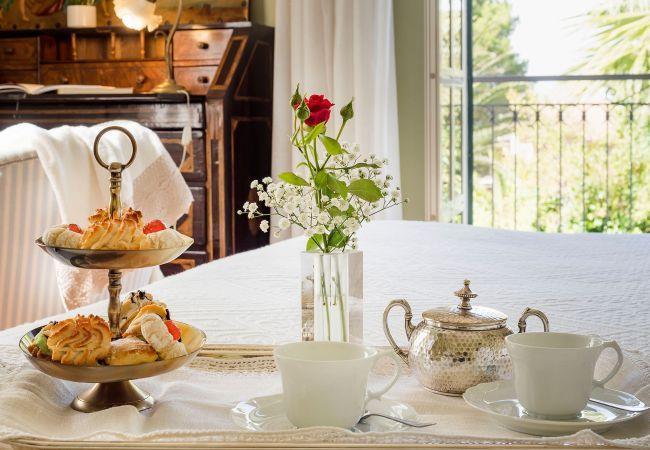 Im Erdgeschoss des Hauptgebäudes befindet sich der Wohnbereich, der aus einem großen Wohnzimmer mit Kamin, dem Esszimmer, einer gut ausgestatteten gemauerten Küche, einem kleinen Salon und einem Bad besteht. Im ersten Stock befinden sich drei romantische Schlafzimmer und zwei Bäder. Im Nebengebäude befinden sich das vierte und das fünfte Schlafzimmer und ein Bad.