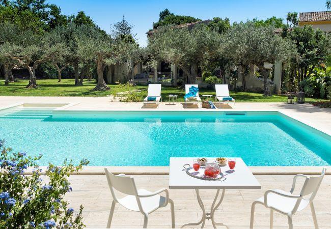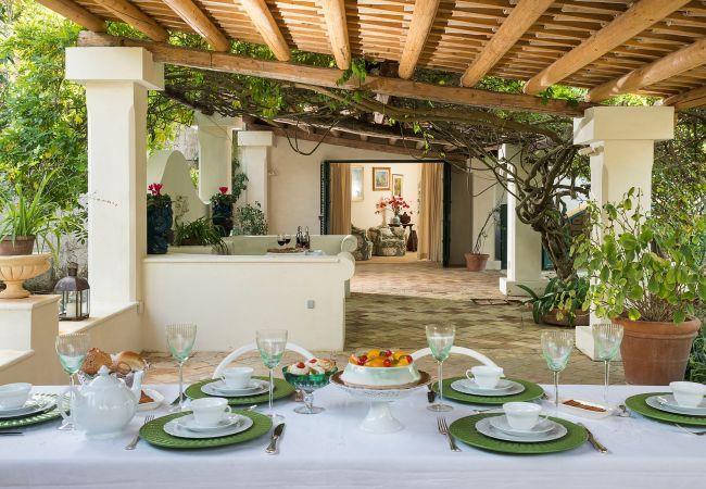 Die Villa ist von einem gepflegten und üppigen mediterranen Garten mit herrlichem Swimmingpool und Sonnenterrasse umgeben und verfügt über große Terrassen für Abendessen und Frühstücke im Freien oder für angenehme Momente der Entspannung auf den typischen Sitzgelegenheiten aus Stein.