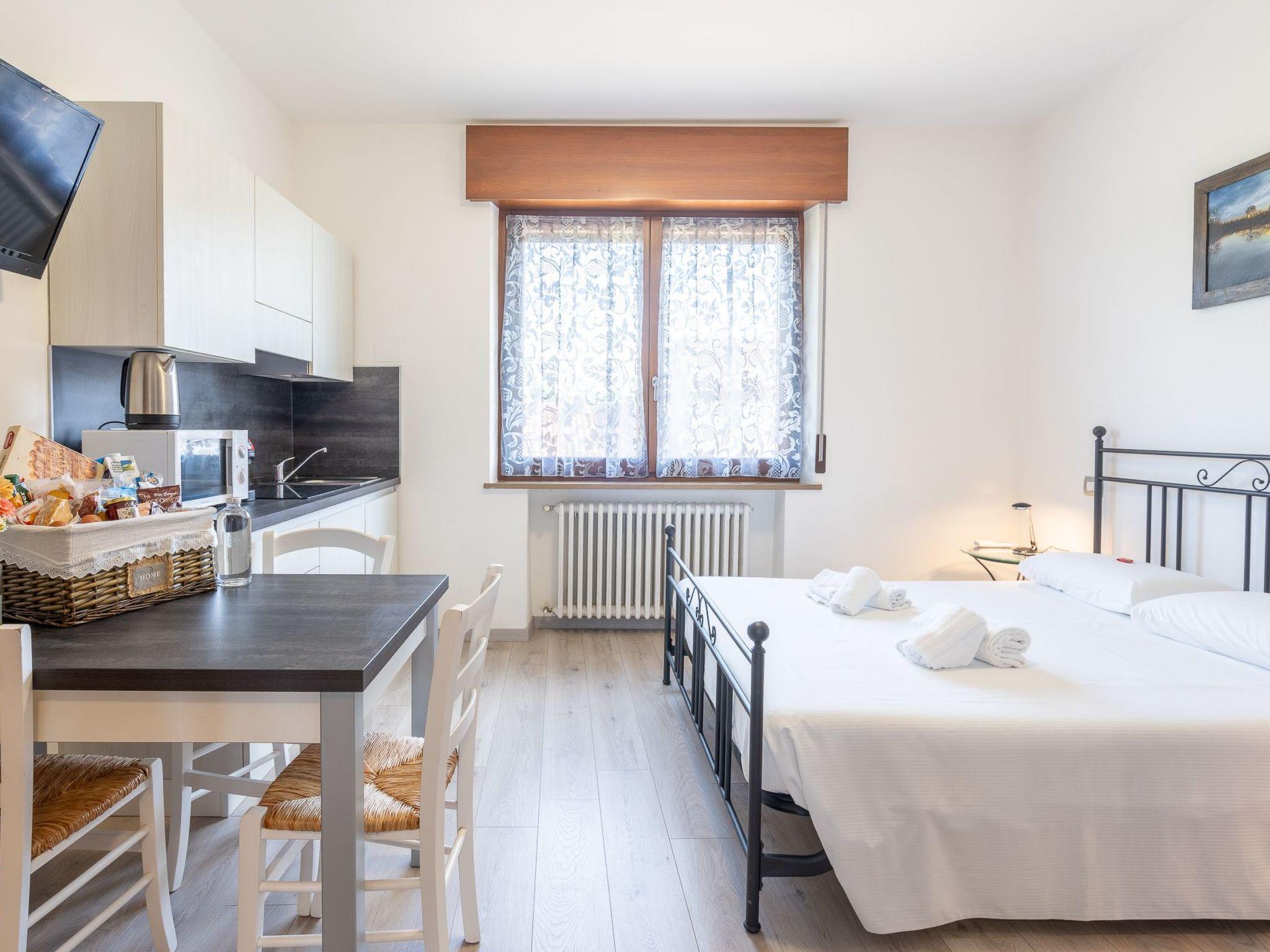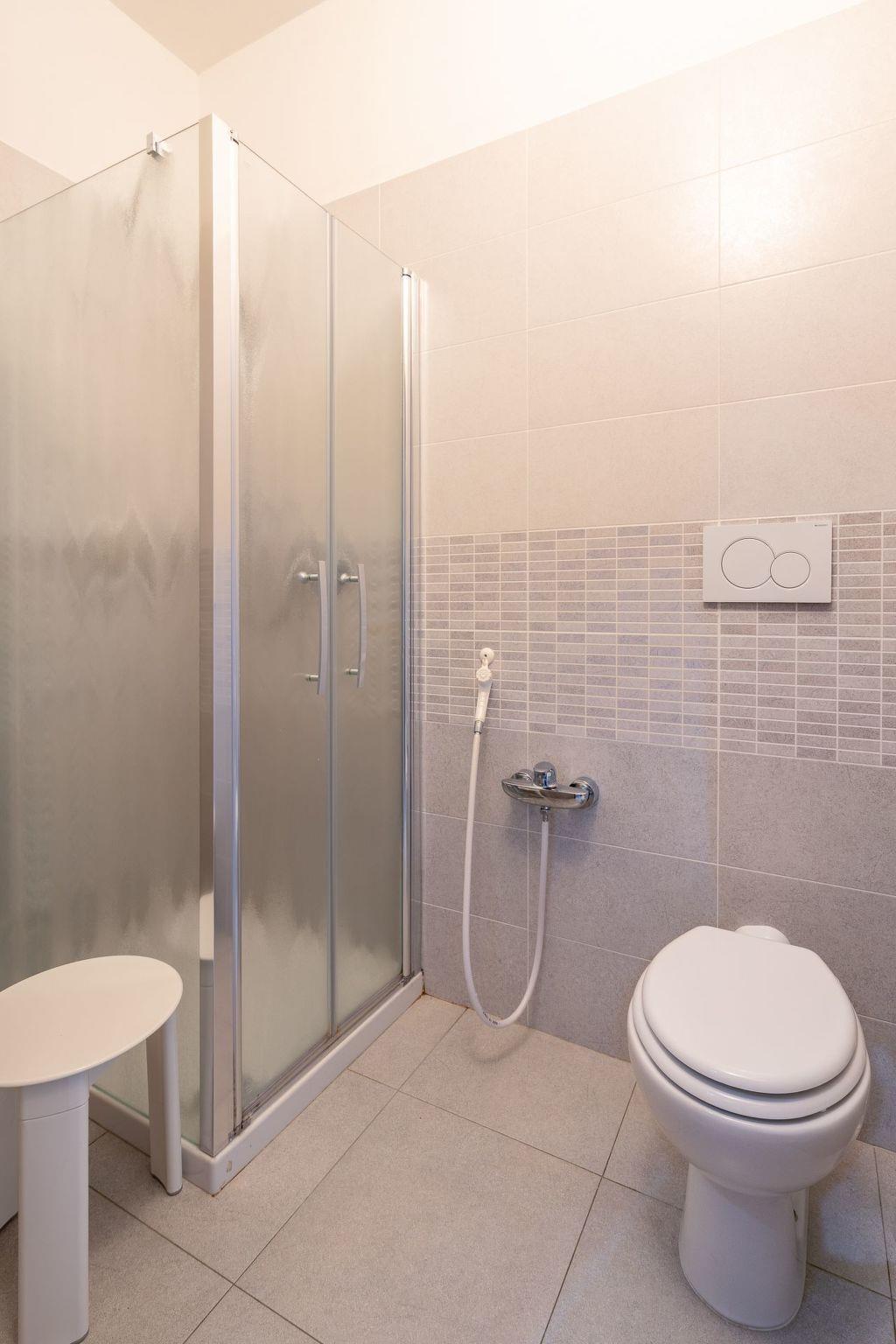 Im Inneren verfügt die Wohnung über eine Fläche von 32 Quadratmetern, die sich optimal auf ein Schlafzimmer mit Doppelbett und Kochnische, ein Schlafzimmer mit zwei Einzelbetten und ein Bad mit Dusche verteilen. Die Kochnische ist mit einem Induktionsherd und einer Kapselkaffeemaschine ausgestattet, ideal für die Zubereitung eines leckeren Frühstücks oder einer schnellen Mahlzeit. Der Komfort wird durch eine Klimaanlage in allen Zimmern gewährleistet und für diejenigen, die länger bleiben oder einfach nur im Urlaub sauber bleiben wollen, steht eine Waschmaschine zur gemeinsamen Nutzung im Gebäude zur Verfügung.