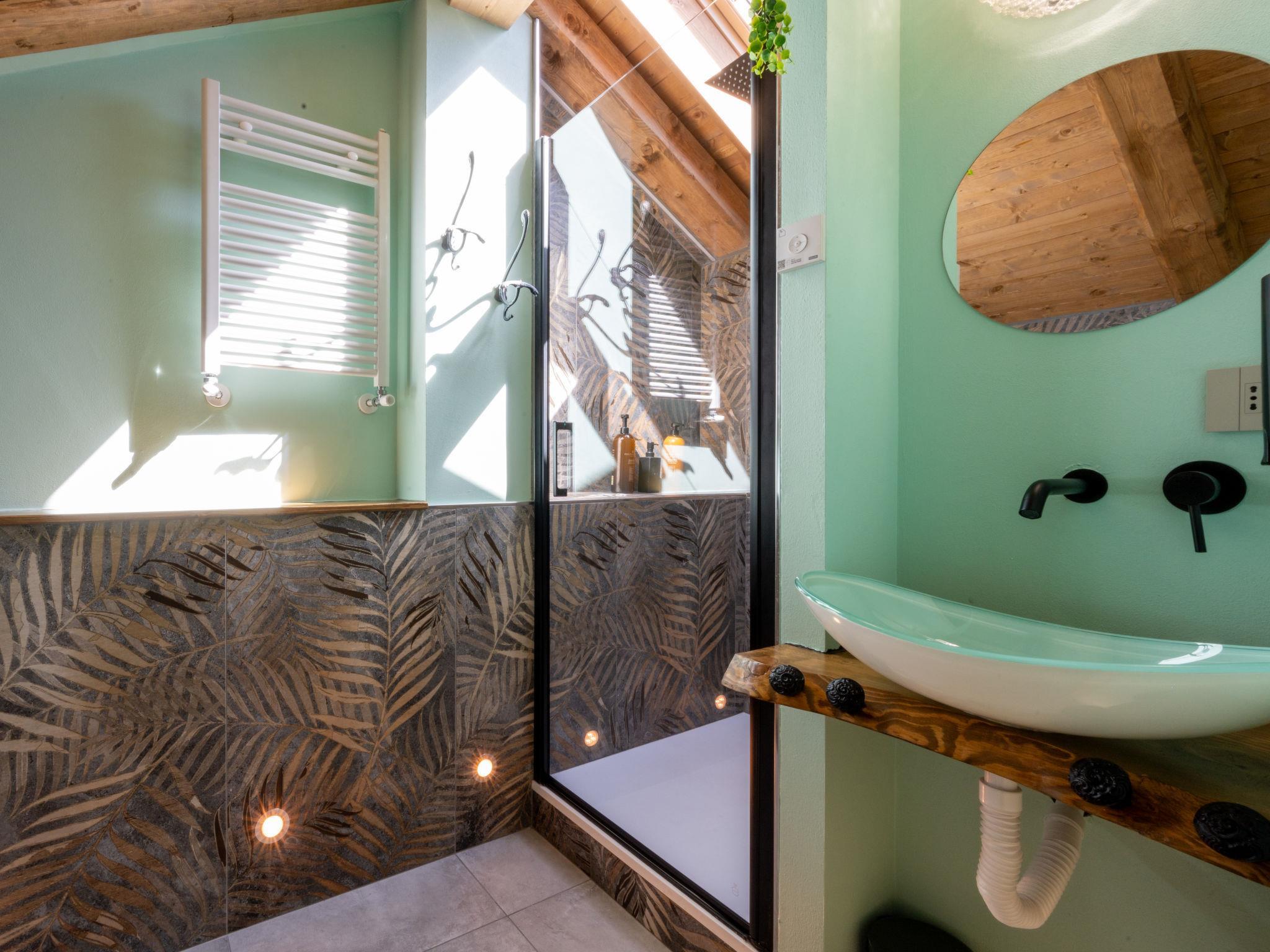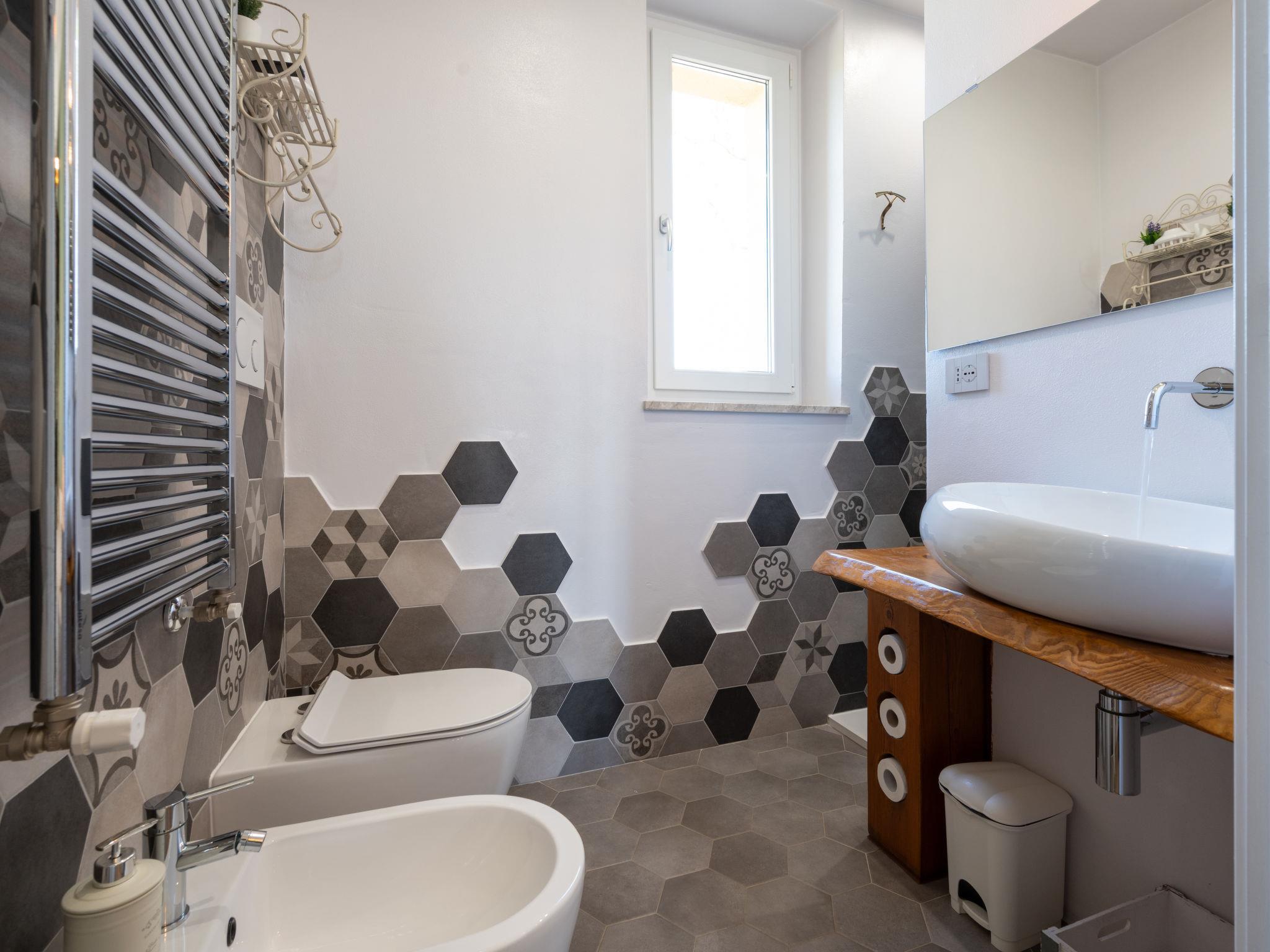 6-Zimmer-Doppelhaushälfte 160 m2 auf 3 Stockwerken, im Erdgeschoss. Renoviert im Jahre 2023, komfortabel und rustikal eingerichtet: Wohn-/Schlafzimmer mit 1 Diwanbett. Ausgang zum Garten. Esszimmer mit Schwedenofen. Grosse Küche (Backofen, Geschirrspüler, Gasherd, 4 Flammen, Wasserkocher, Mikrowelle, Tiefkühler, elektrische Kaffeemaschine). Ausgang zum Garten. Sep. WC. Obergeschoss: 2 Doppelzimmer, jedes Zimmer mit Dusche/WC und Klimaanlage. Ausgang zum Balkon. 1 Zimmer mit 1 Bett (125 cm, Länge 190 cm), Dusche/WC und Klimaanlage. Ausgang zum Balkon. Dachgeschoss: 1 Zimmer mit 2 Betten, 1 Doppelbett und Klimaanlage. Dusche/WC. Bodenheizung. Heizung nur verfügbar von 01.10. bis 15.04. Parkettboden, Natursteinboden. Grosser Gartensitzplatz. Terrassenmöbel, Gartengrill. Zur Verfügung: Kinderhochstuhl, Babybett bis 2 Jahre. Internet (Wireless LAN, gratis). IT005097B4M4KBLDP5