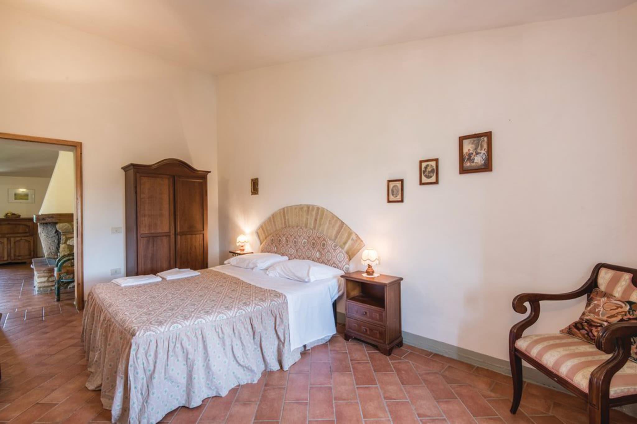 Dieses haustierfreundliche Bauernhaus für 6 Gäste liegt eingebettet in die malerische Landschaft von Località Sant'Andrea, nur 4 km von der historischen Stadt San Gimignano entfernt. Das Apartment im ersten Stock verfügt über ein gemütliches Wohnzimmer mit Doppelschlafcouch, eine große Küche mit Kamin, Sat-TV, Esstisch und allen wichtigen Annehmlichkeiten für einen komfortablen Aufenthalt. Zwei charmante Doppelzimmer und zwei Badezimmer mit Duschen, Bidets und Waschbecken machen es ideal für Familien oder Freunde. Kostenloses WLAN sorgt dafür, dass Sie während Ihres toskanischen Urlaubs in Verbindung bleiben. Gäste können einen wunderschön angelegten, 3.000 m² großen Gemeinschaftsgarten mit Gartenmöbeln zum Entspannen im Freien nutzen. Ein großzügiger 17 × 6 m großer Gemeinschaftspool (geöffnet von Mai bis Oktober) lädt zu einem erfrischenden Bad unter der toskanischen Sonne ein. Das Anwesen bietet außerdem Zugang zu einer gemeinschaftlich genutzten Waschmaschine – ein zusätzlicher Komfort für längere Aufenthalte. Rustikaler Charme, Komfort und eine malerische Umgebung vereinen sich für ein friedliches und authentisches Erlebnis. Nur wenige Minuten entfernt erwartet Sie die mittelalterliche Skyline mit ihren Türmen von San Gimignano. Schlendern Sie durch die gepflasterten Straßen, besuchen Sie die Stiftskirche aus dem 13. Jahrhundert oder probieren Sie erstklassiges Eis auf der Piazza della Cisterna. Weinliebhaber können die Vernaccia-Weinberge erkunden, während Tagesausflüge nach Siena, Volterra und Florenz tiefere kulturelle Erlebnisse bieten. Genießen Sie ein unvergessliches toskanisches Essen im nahegelegenen La Mandragola, Le Vecchie Mura oder Cum Quibus.