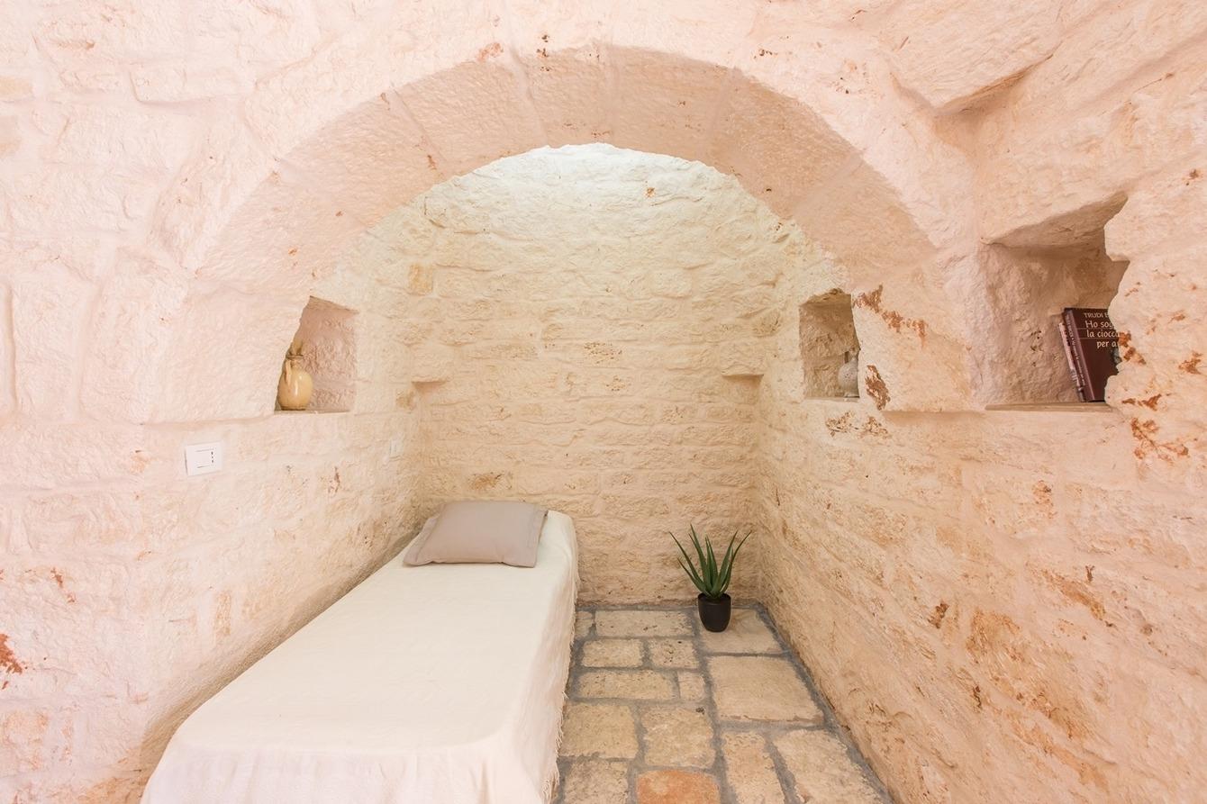 Sie befinden sich in einem Trullo aus dem 17. Jahrhundert und schlafen in lokalen Steinnischen;