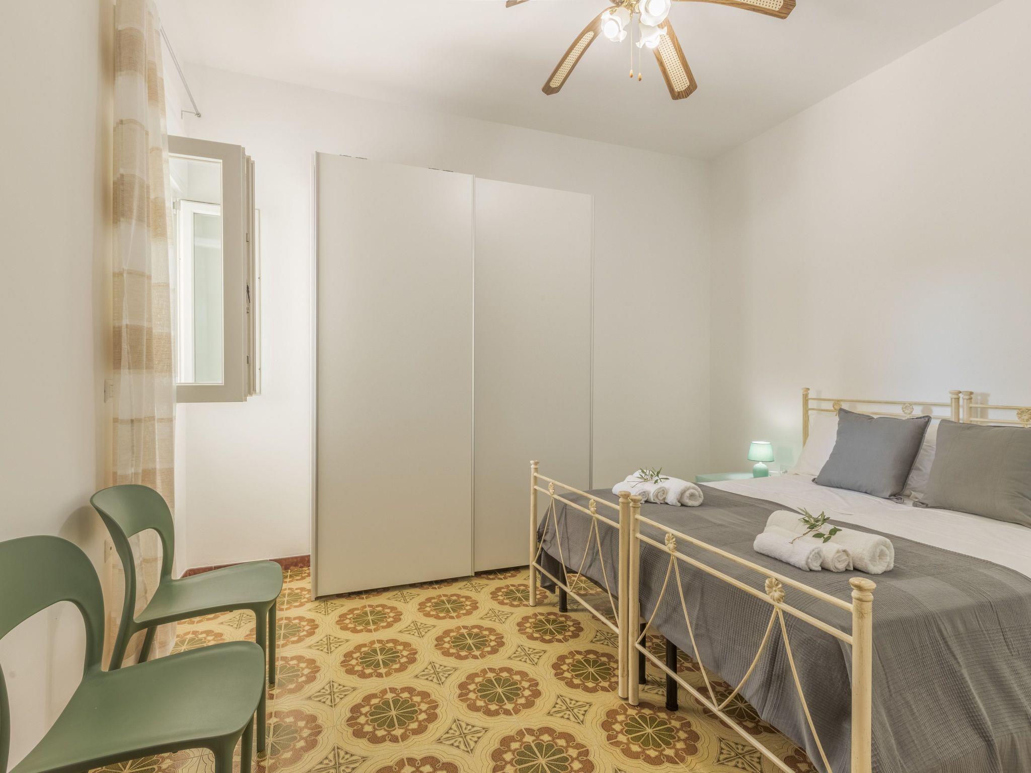 2 Schlafzimmer: 1 Doppelzimmer, 1 Zimmer mit zwei Einzelbetten, die verbunden werden können, 1 Badezimmer mit Dusche, 1 Wohn-/Esszimmer mit Schlafsofa 140x2,00 m, wo zwei Kinder schlafen können.