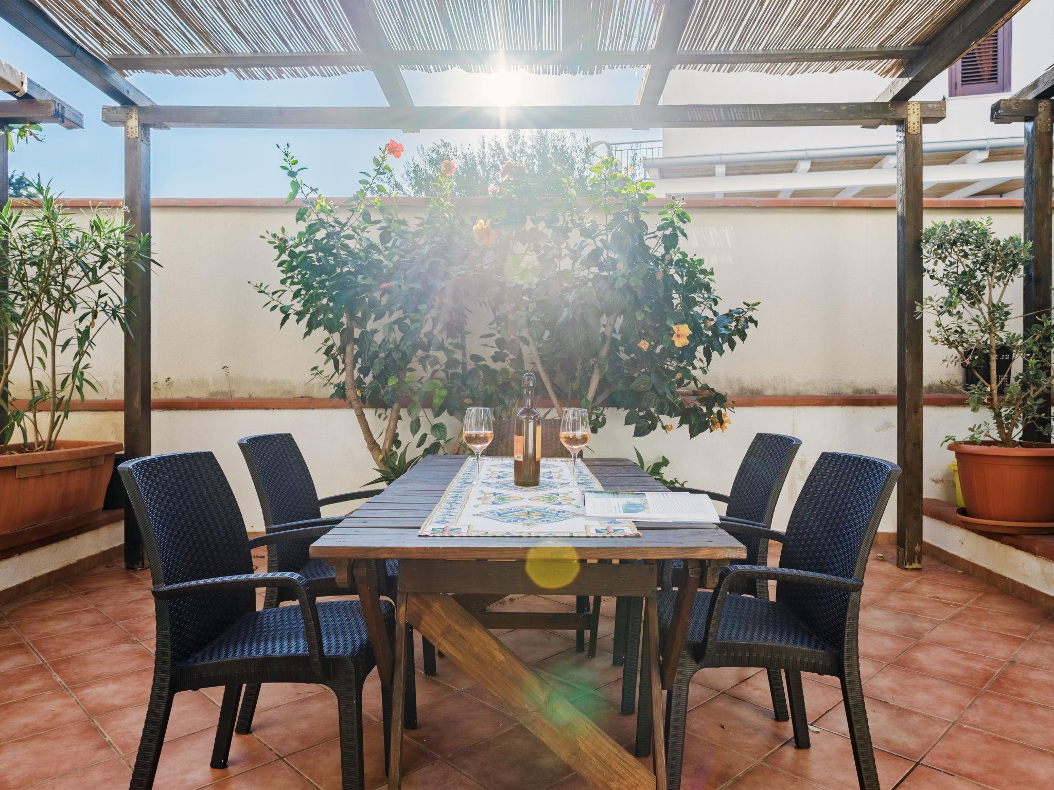 3-Zimmer-Reihenhaus 60 m2 auf 2 Stockwerken. Zweckmässig und komfortabel eingerichtet: Wohn-/Esszimmer mit 1 Diwanbett (140 cm), TV (Flachbildschirm). Ausgang zur Terrasse. Kleine Küche (4 Kochplatten, Toaster, Wasserkocher, Mikrowelle). Dusche/Bidet/WC. Obergeschoss: Eingang. 1 Doppelzimmer mit Klimaanlage. Ausgang zum Balkon. 1 Zimmer mit 2 Betten und Klimaanlage. Ausgang zum Balkon. Bad/Dusche/Bidet/WC. Heizung, Warmluftheizung, Boiler (50 Liter). Heizung nur verfügbar von 01.12. bis 31.03, Heizung nicht in allen Räumen. 2 Balkone 3 m2, Terrasse 20 m2 teilweise überdacht Terrasse 5 m2. Terrassenmöbel. Zur Verfügung: Waschmaschine, Bügeleisen, Kinderhochstuhl, Babybett bis 2 Jahre, Haartrockner. Internet (Wireless LAN, gratis). Parkplatz (1 Auto). Bitte beachten: Rauchmelder, Feuerlöscher. IT081020C27XFZE4GA