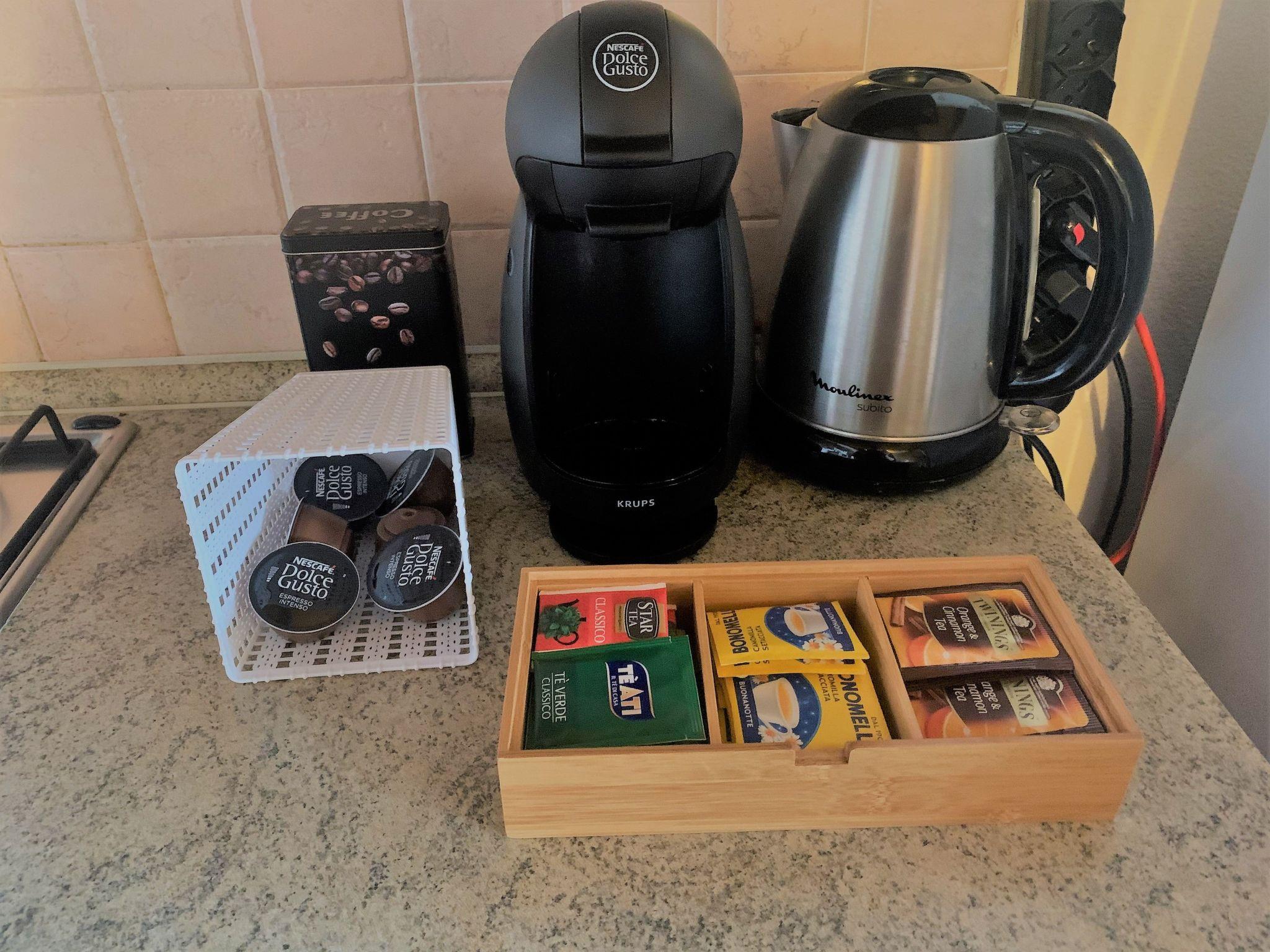 Im Inneren finden Sie eine voll ausgestattete Küche mit Gasherd, Mikrowelle, elektrischer Kaffeemaschine, Wasserkocher und einer Auswahl an Teesorten, ideal für die Zubereitung köstlicher Mahlzeiten wie zu Hause. Das Wohnzimmer ist mit einem Smart-TV und einem Schlafsofa ausgestattet, auf dem Sie sich nach einem Tag voller Entdeckungen entspannen können. Das Schlafzimmer mit Doppelbett verspricht eine ruhige und erholsame Nachtruhe, während die Klimaanlage in allen Zimmern Ihren Komfort unabhängig von der Jahreszeit gewährleistet. Ein eigenes Bad mit Dusche und ein Wäschetrockner, der im Gebäude gemeinschaftlich genutzt wird, vervollständigen die Einrichtung.