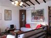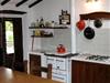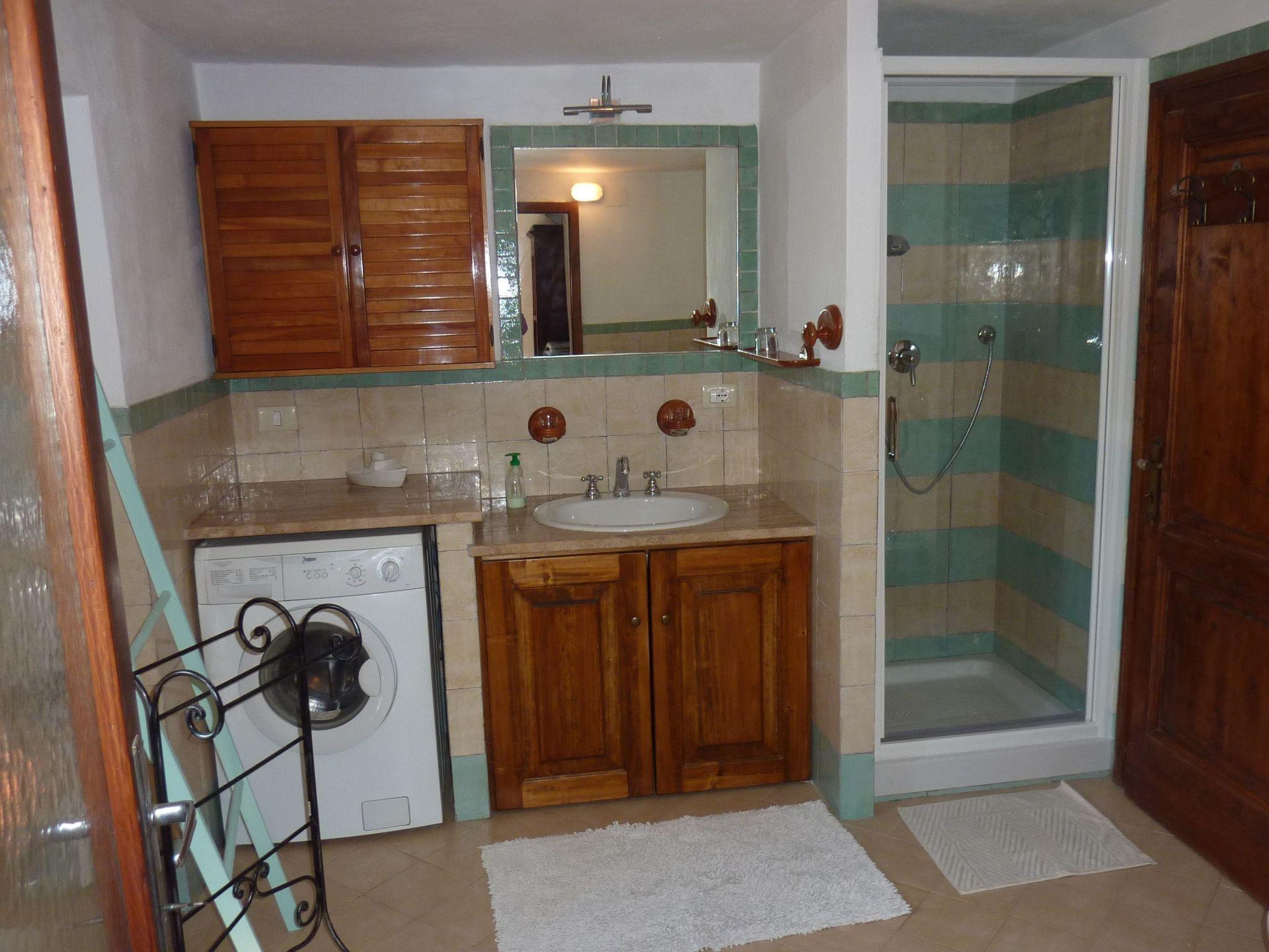 Im Erdgeschoss befindet sich der Eingang und das große Bad. Im oberen Stock die gut ausgestattete Wohnküche mit Holzofen und Kamin, Wohnzimmer mit Sat-TV, die drei Schlafzimmer - zwei mit Doppelbett, eines mit zwei Einzelbetten und die kleine Toilette. Das Wohnzimmer und ein Schlafzimmer haben eine Klimaanlage.