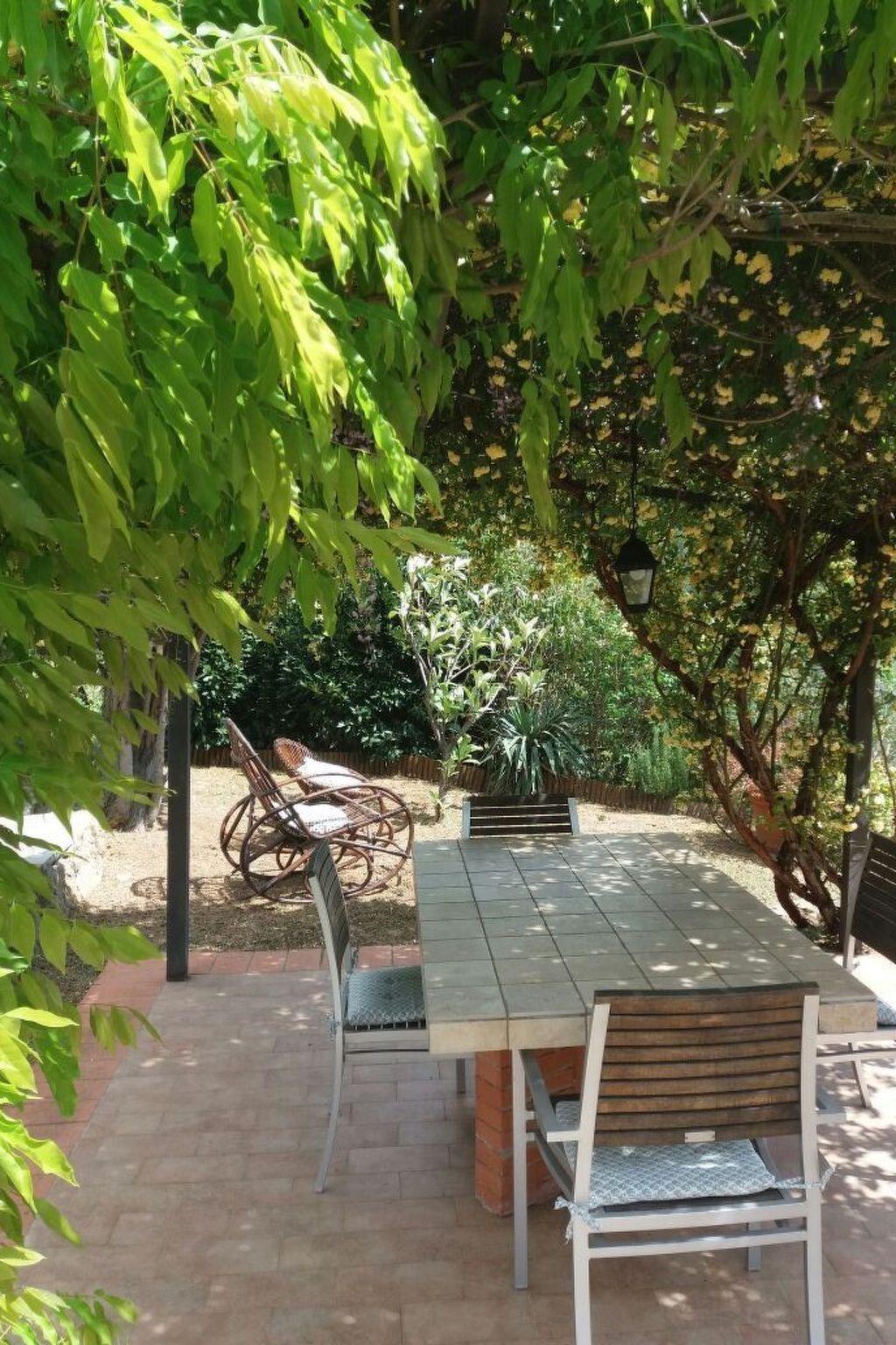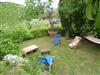 Der Garten ist voll eingezäunt, hat einen gemauerten Steingrill, eine Pergola mit Traumblick und Liegewiese.