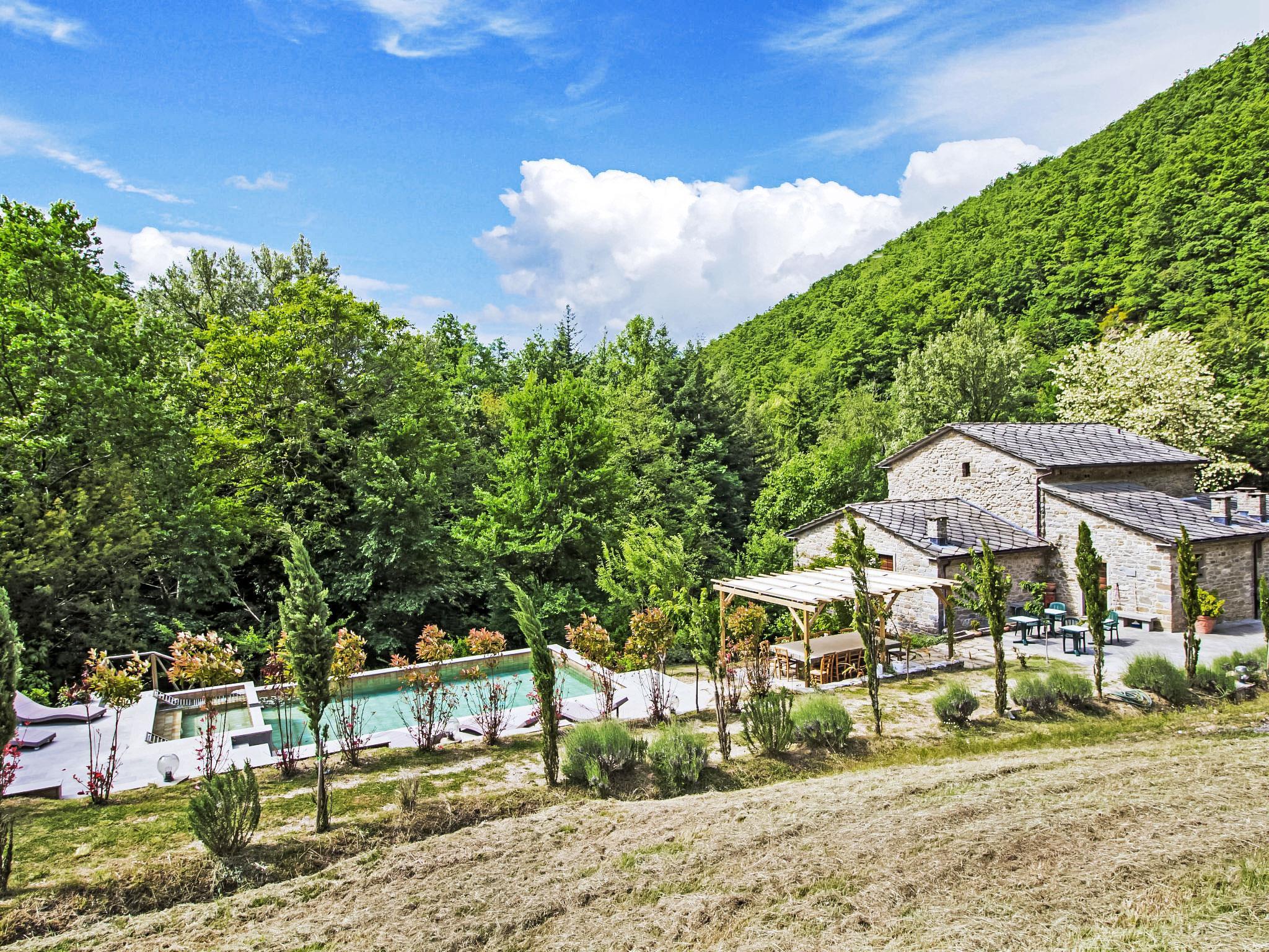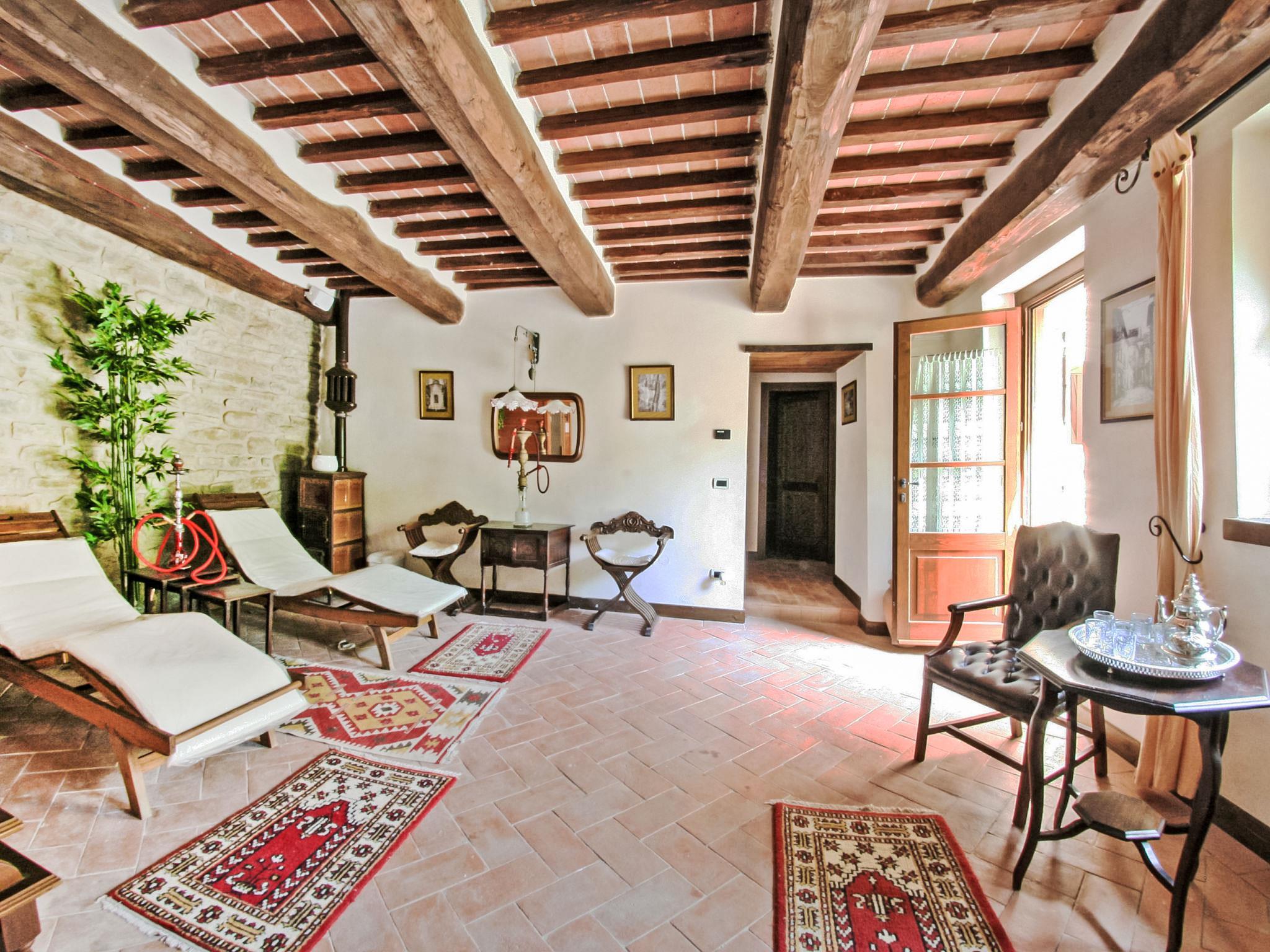 Landsitz "La Valchiera", renoviert, umgeben von Bäumen. 5 km vom Zentrum von Sansepolcro, ruhige, sonnige, erhöhte Lage, 10 m vom Fluss. Zur Alleinbenutzung: Grundstück 20 ha, terrassierter Garten, Naturteich, Schwimmbad (10 x 5 m, 100 - 130 cm tief, saisonale Verfügbarkeit: 13.Mai. - 06.Okt.). Sprudelbad, Sitzplatz, Gartenmöbel, Grill, Poolpflege durch den Besitzer/Gärtner. Im Hause: Internetzugang, Infrarotwärmekabine, Ruheraum, Wellnessbereich, Waschmaschine, Wäschetrockner. Koch möglich. Parkplatz auf dem Grundstück. Lebensmittelgeschäft 4 km, Supermarkt 4 km, Restaurant 2 km, Bar 2 km, Bushaltestelle 50 m. Reitstall 2 km. Nahe gelegene Sehenswürdigkeiten: Anghiari 15 km, Arezzo 40 km.