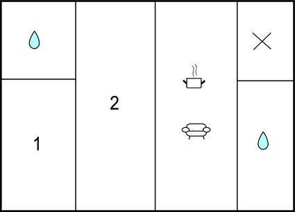 Badezimmer 5m2 (nr. 1) - WC. Warmes und kaltes Wasser. Dusche