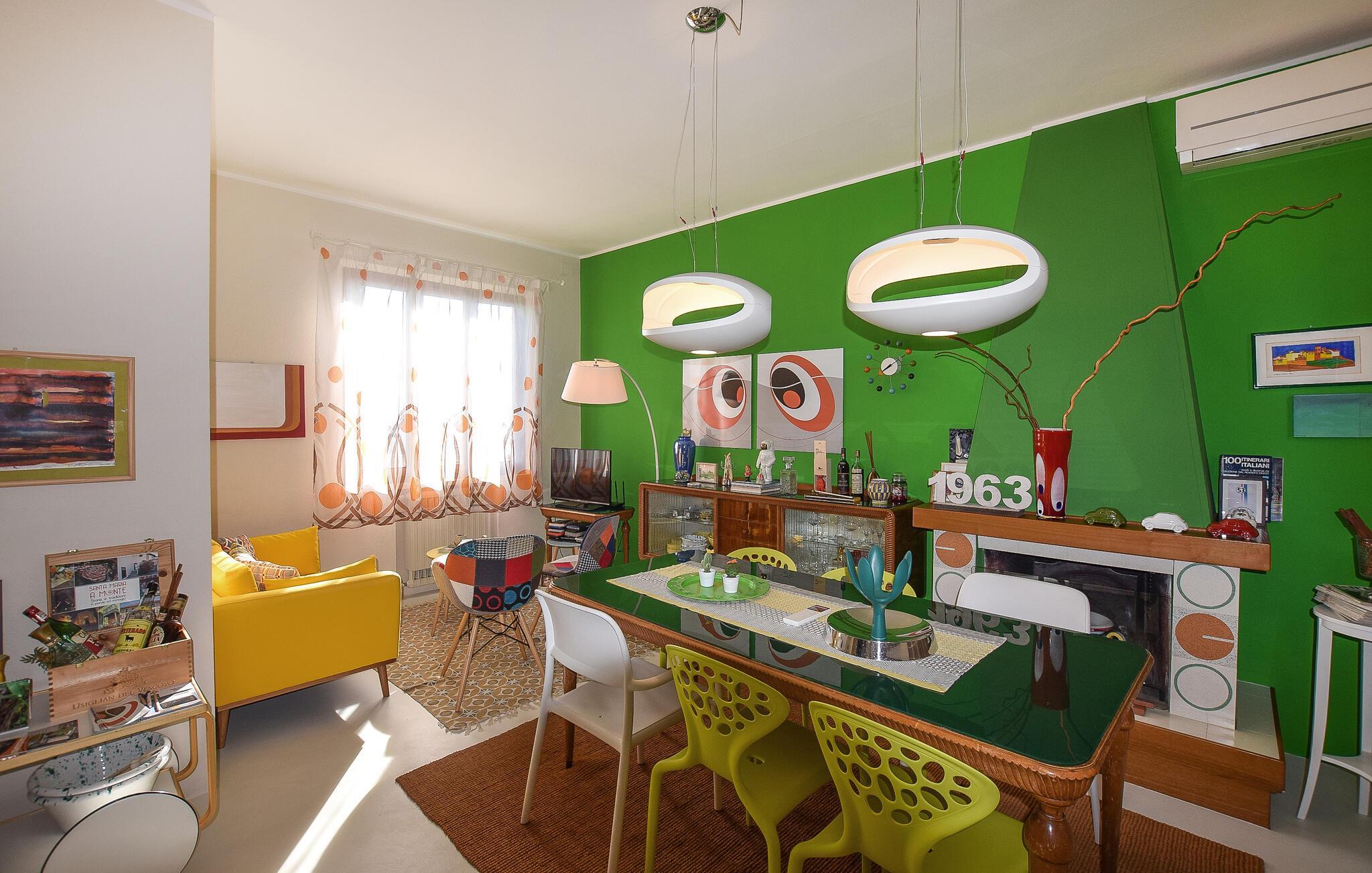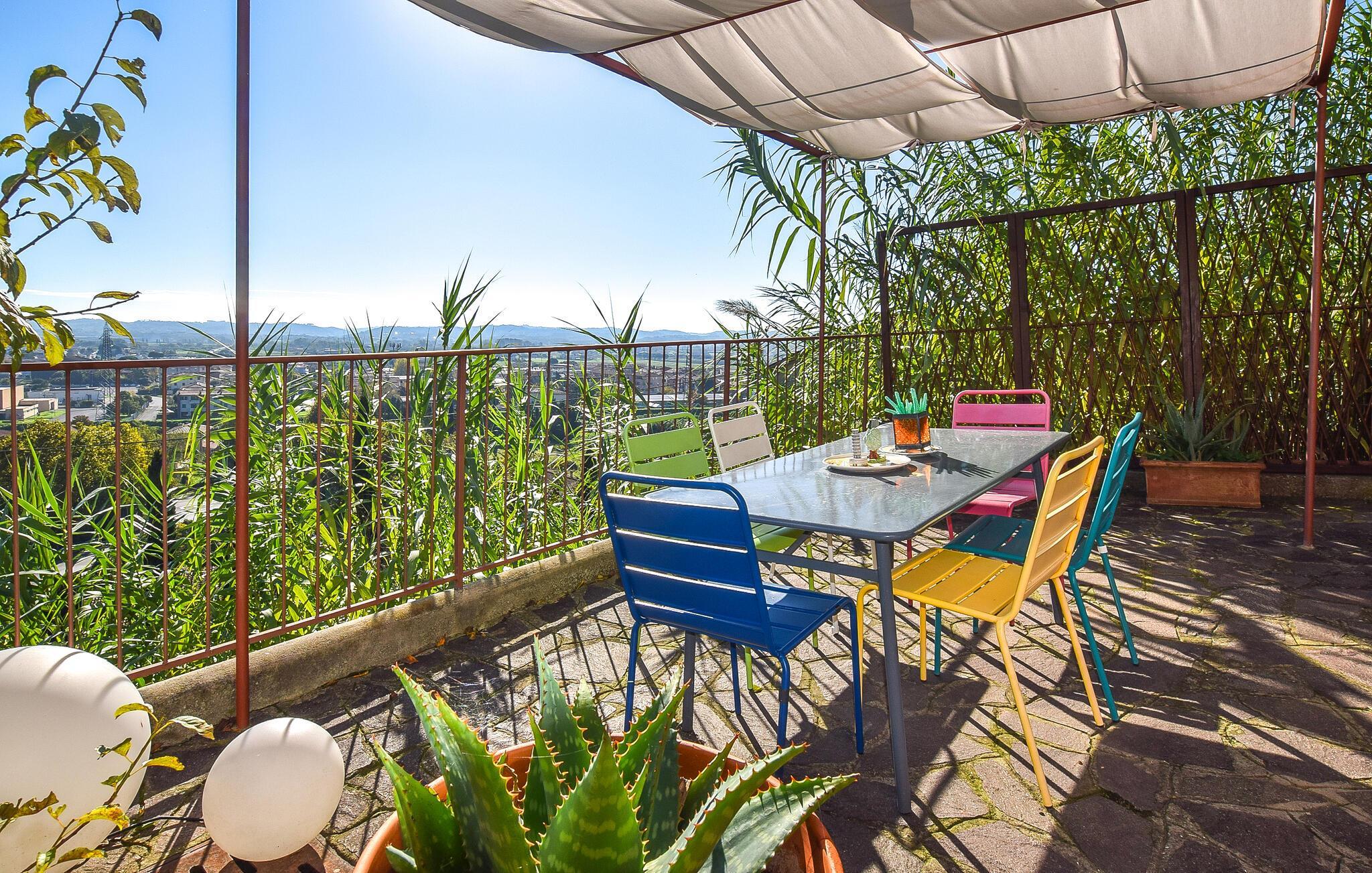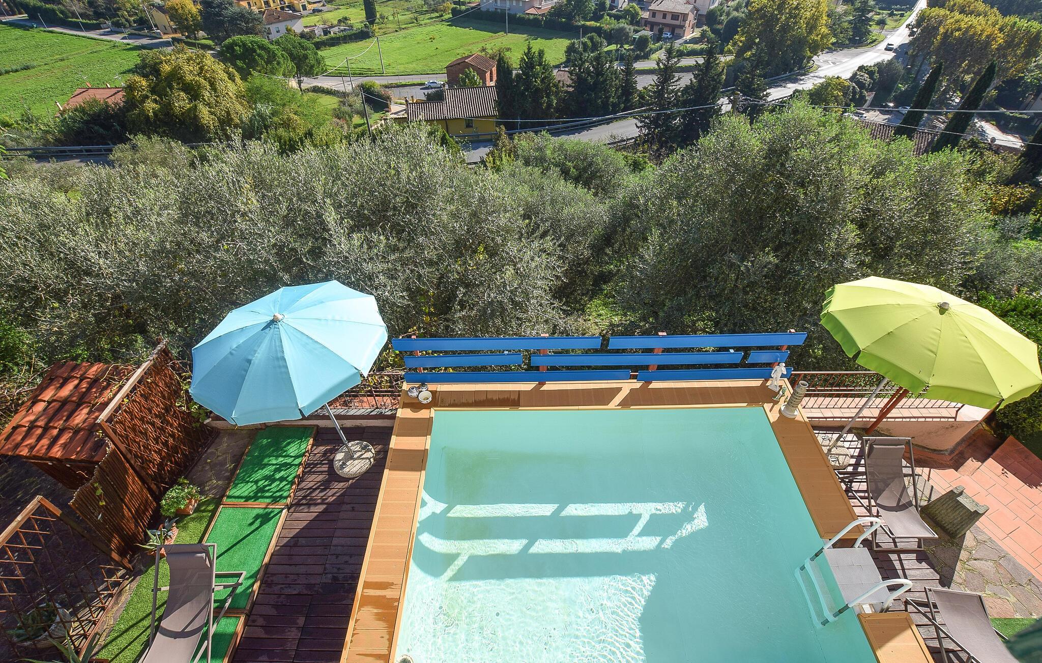 Ihr Ferienhaus in Santa Maria a Monte ist ein schöner Rückzugsort, der Ihre Erwartungen an Komfort und Stil übertreffen wird. Genießen Sie den herrlichen Pool, der von gemütlichen Liegen umgeben ist und sich für einen entspannten Nachmittag unter der Sonne eignet. Lassen Sie Ihren Blick über die grünen Hügel der Toskana schweifen, während Sie auf der großzügigen Terrasse entspannen. Beginnen Sie den Tag mit einem Frühstück auf der sonnigen Terrasse. Das lebendige Wohnzimmer, eingerichtet mit farbenfrohen Möbeln und modernen Akzenten, lädt zu geselligen Abenden mit der Familie ein. Hier können Sie die warme Atmosphäre genießen und gemeinsame Zeit verbringen.